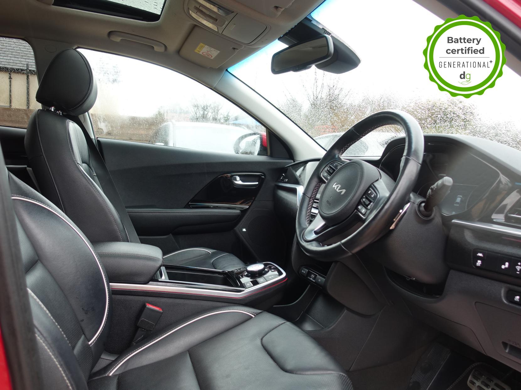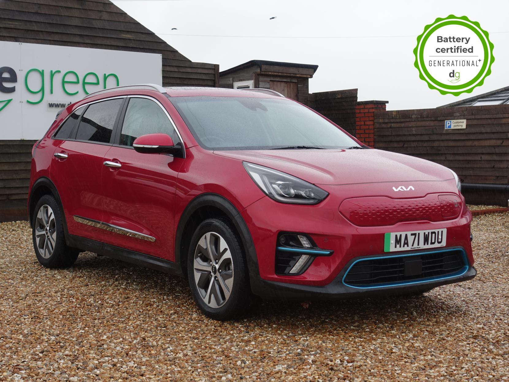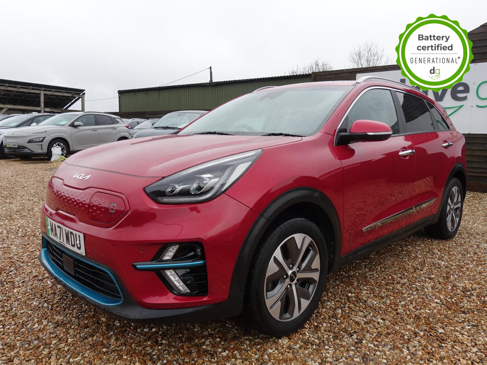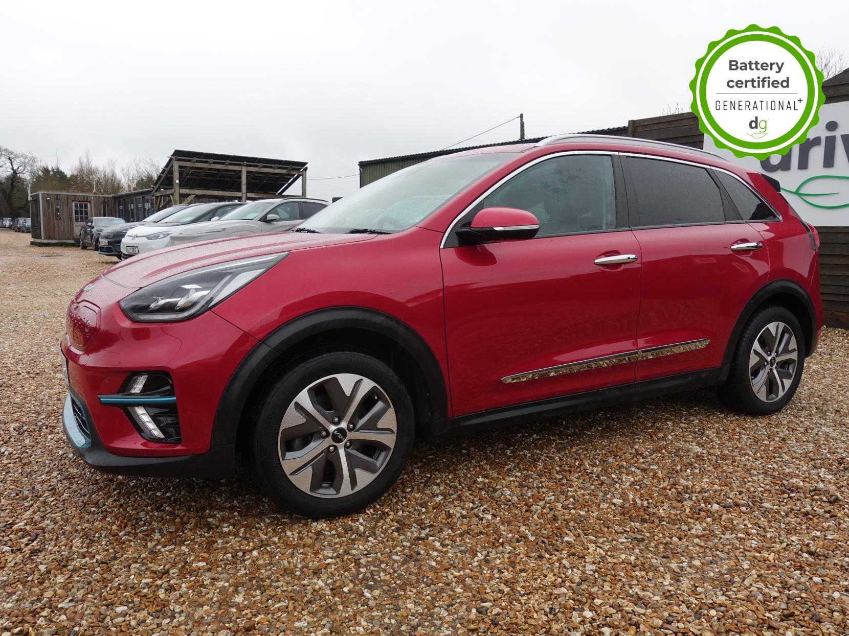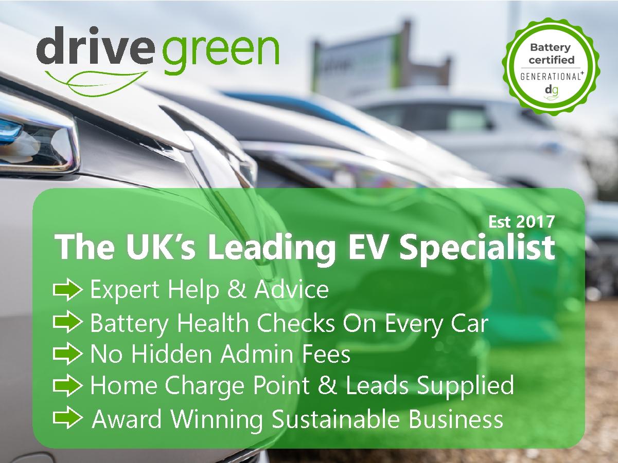 This E-Niro is in excellent condition and fully prepared to our high standard, has 2 keys, 4 prior services, and it will be February 2027 until its next service and it will be April 2027 when its MOT is due. It also has an excellent 97% battery health. The E-Niro is a great all-rounder – a generously sized and practical family EV, with a real-world range of around 250-300 miles, depending on your driving style and time of year. The top spec 4+ E-Niro features some impressive spec. Opening pan roof, 17′ alloys, roof rails, power adjustable memory driver’s seat, heated leather front and rear seats, heated steering wheel, and an 8 speakers JBL premium sound system. The 4+ also comes with a HEAT PUMP, which is a high efficiency heating system to give you even greater range in the winter months. The E-Niro also features some great safety spec including adaptive cruise control with lane and follow assist, emergency stop signalling and a forward collision avoidance system. If you are looking for a long range practically sized family EV, this could be the perfect car for you. Unlike Car Supermarkets we have no hidden admin fees, there is no pressure selling, and we offer low finance rates. We also perform battery health checks on all our vehicles, so you can have the comfort of knowing the battery state of health of the EV you choose. Hopefully you will choose to buy your EV from Drive Green, as we are a multi award winning EV specialist and sustainable business, here to help you get the most from your switch to electric driving. Contact us to book an appointment to view and test drive this car, or to find out more about switching to electric driving, and to discuss purchase options, including buying on finance, and our remote buying and delivery service. We are also able to supply your home charge point also, making the switch to electric driving super easy for you. Drive Green is a true EV specialist and the UK’s biggest electric car only dealership, since 2017. FORECOURT VISITS AND TEST DRIVES BY APPOINTMENT ONLY.