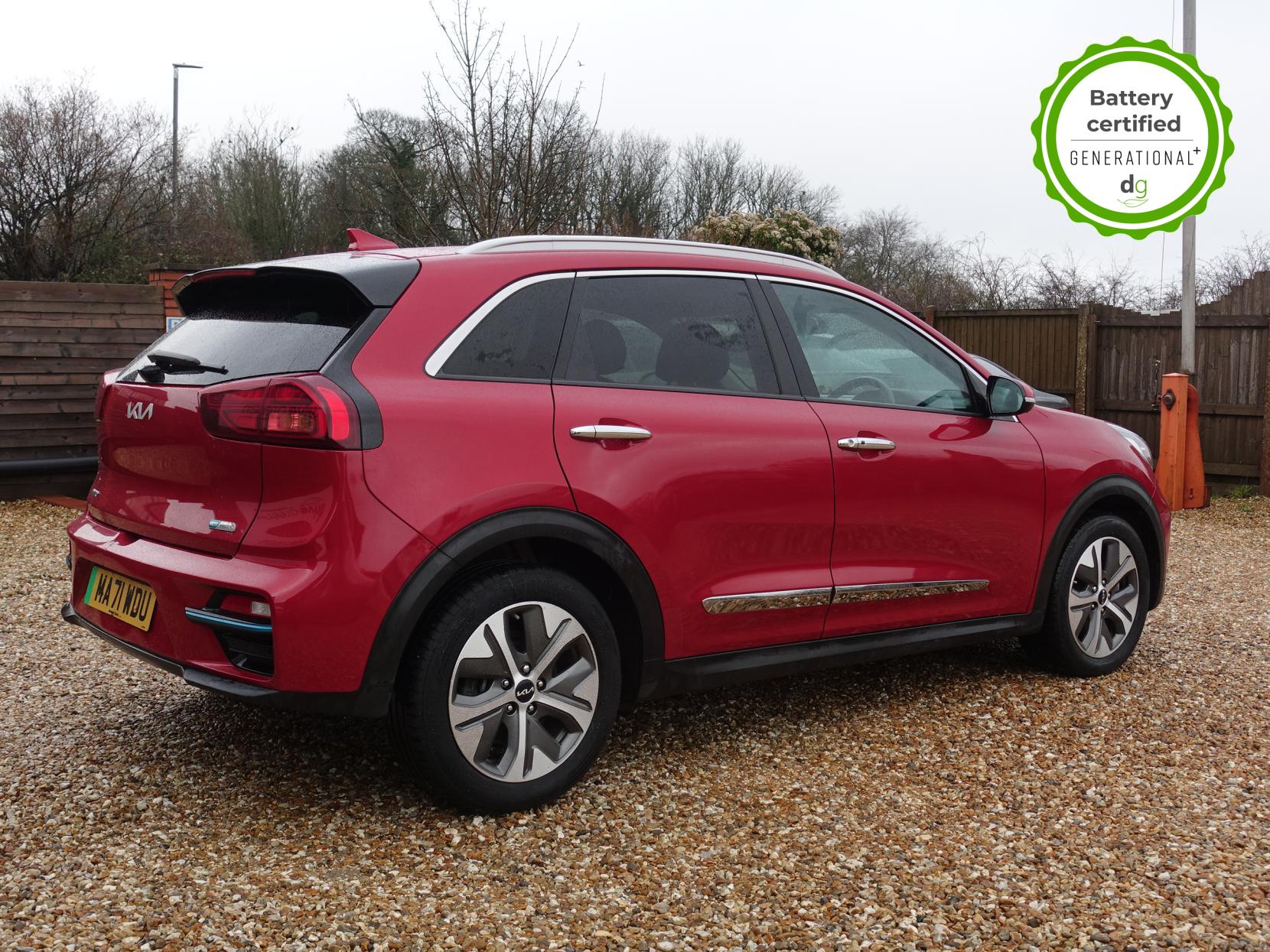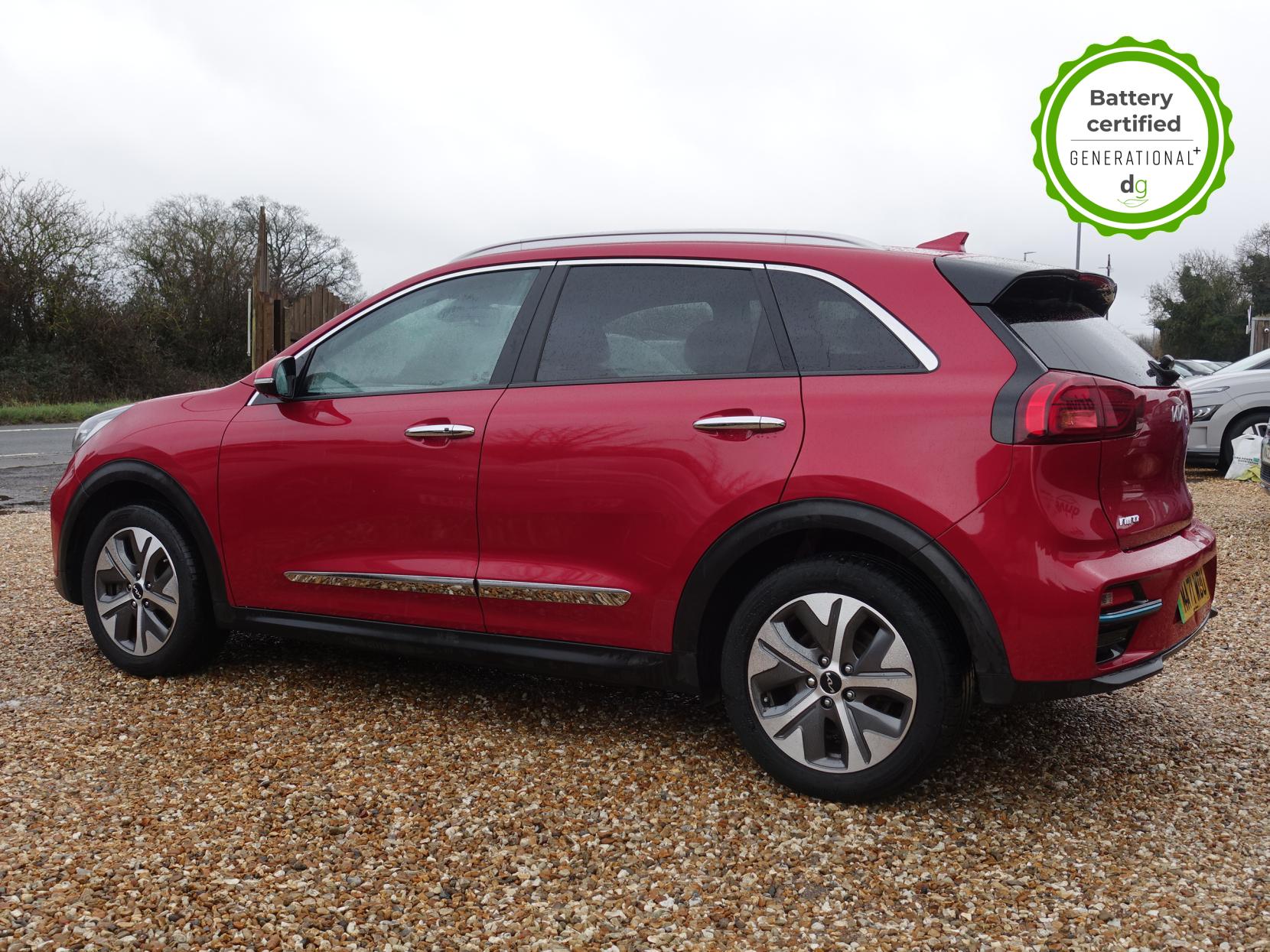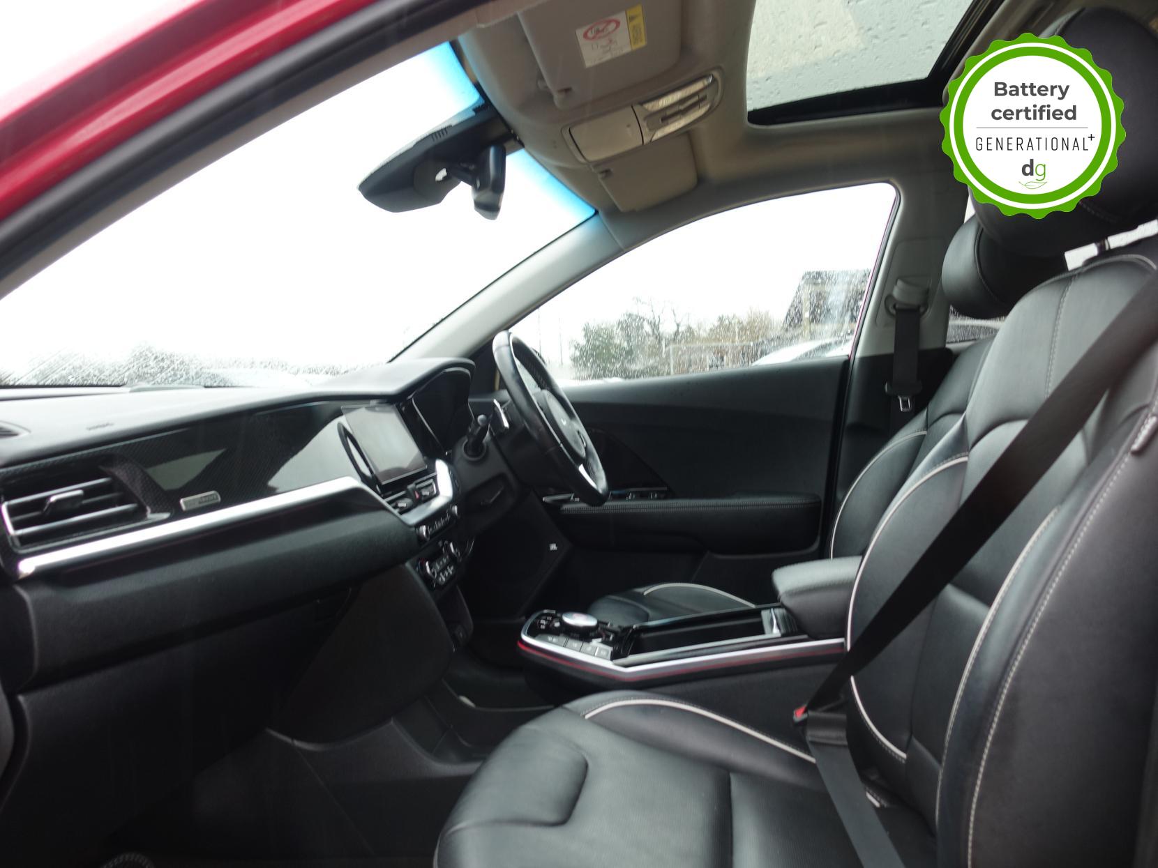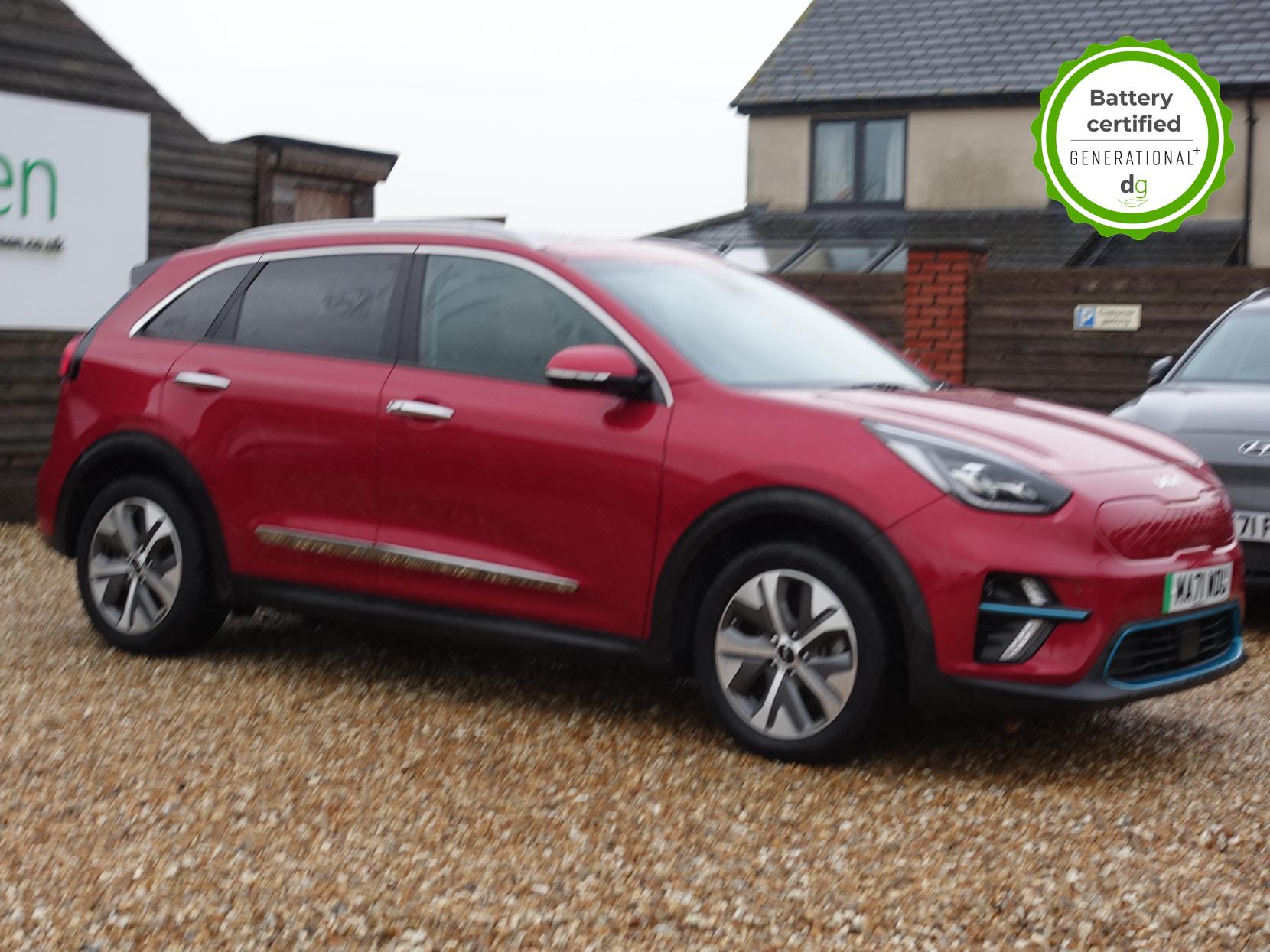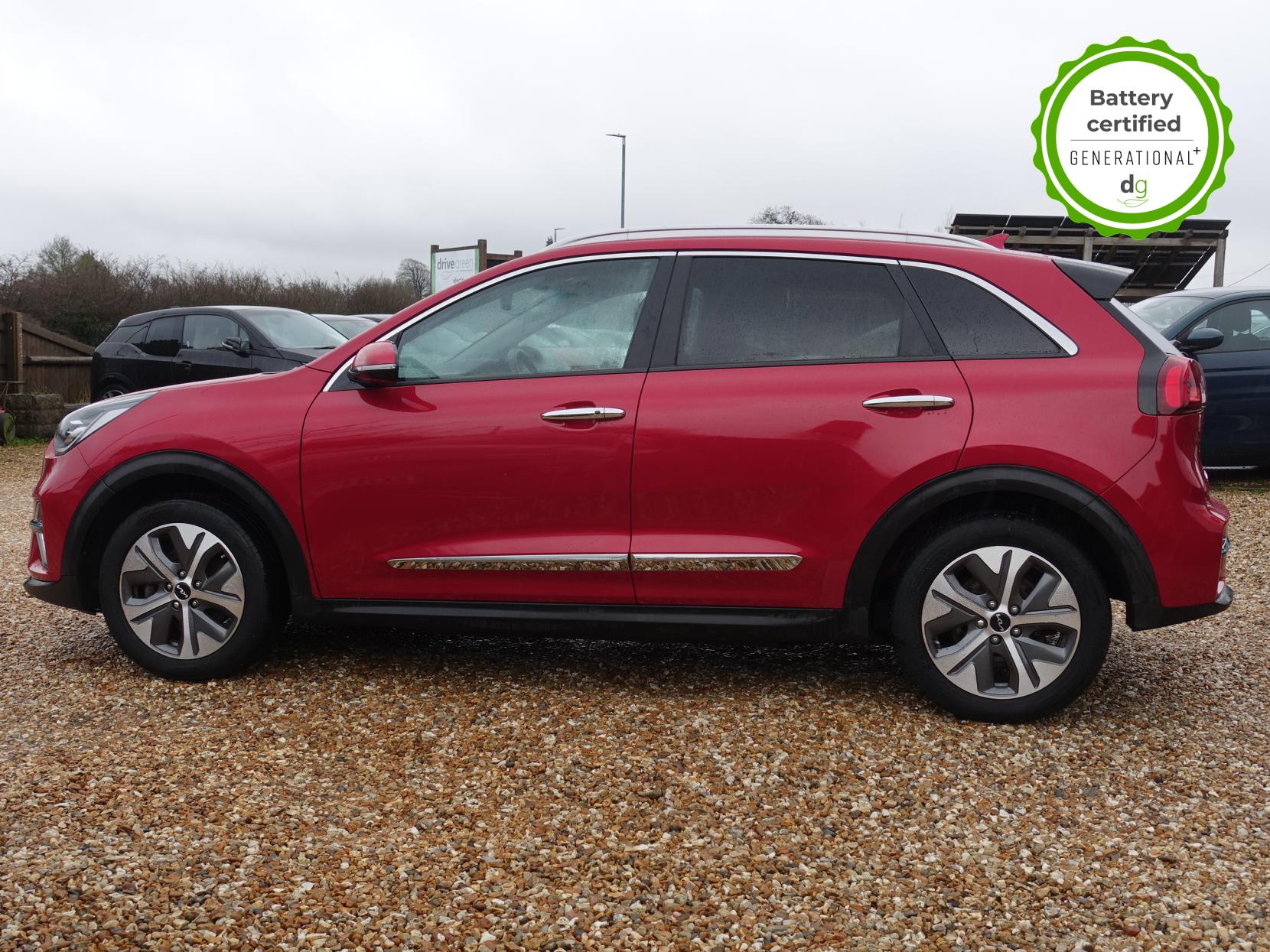 This E-Niro is in excellent condition and fully prepared to our high standard, has 2 keys, 4 prior services, and it will be February 2027 until its next service and it will be April 2027 when its MOT is due. It also has an excellent 97% battery health. The E-Niro is a great all-rounder – a generously sized and practical family EV, with a real-world range of around 250-300 miles, depending on your driving style and time of year. The top spec 4+ E-Niro features some impressive spec. Opening pan roof, 17′ alloys, roof rails, power adjustable memory driver’s seat, heated leather front and rear seats, heated steering wheel, and an 8 speakers JBL premium sound system. The 4+ also comes with a HEAT PUMP, which is a high efficiency heating system to give you even greater range in the winter months. The E-Niro also features some great safety spec including adaptive cruise control with lane and follow assist, emergency stop signalling and a forward collision avoidance system. If you are looking for a long range practically sized family EV, this could be the perfect car for you. Unlike Car Supermarkets we have no hidden admin fees, there is no pressure selling, and we offer low finance rates. We also perform battery health checks on all our vehicles, so you can have the comfort of knowing the battery state of health of the EV you choose. Hopefully you will choose to buy your EV from Drive Green, as we are a multi award winning EV specialist and sustainable business, here to help you get the most from your switch to electric driving. Contact us to book an appointment to view and test drive this car, or to find out more about switching to electric driving, and to discuss purchase options, including buying on finance, and our remote buying and delivery service. We are also able to supply your home charge point also, making the switch to electric driving super easy for you. Drive Green is a true EV specialist and the UK’s biggest electric car only dealership, since 2017. FORECOURT VISITS AND TEST DRIVES BY APPOINTMENT ONLY.