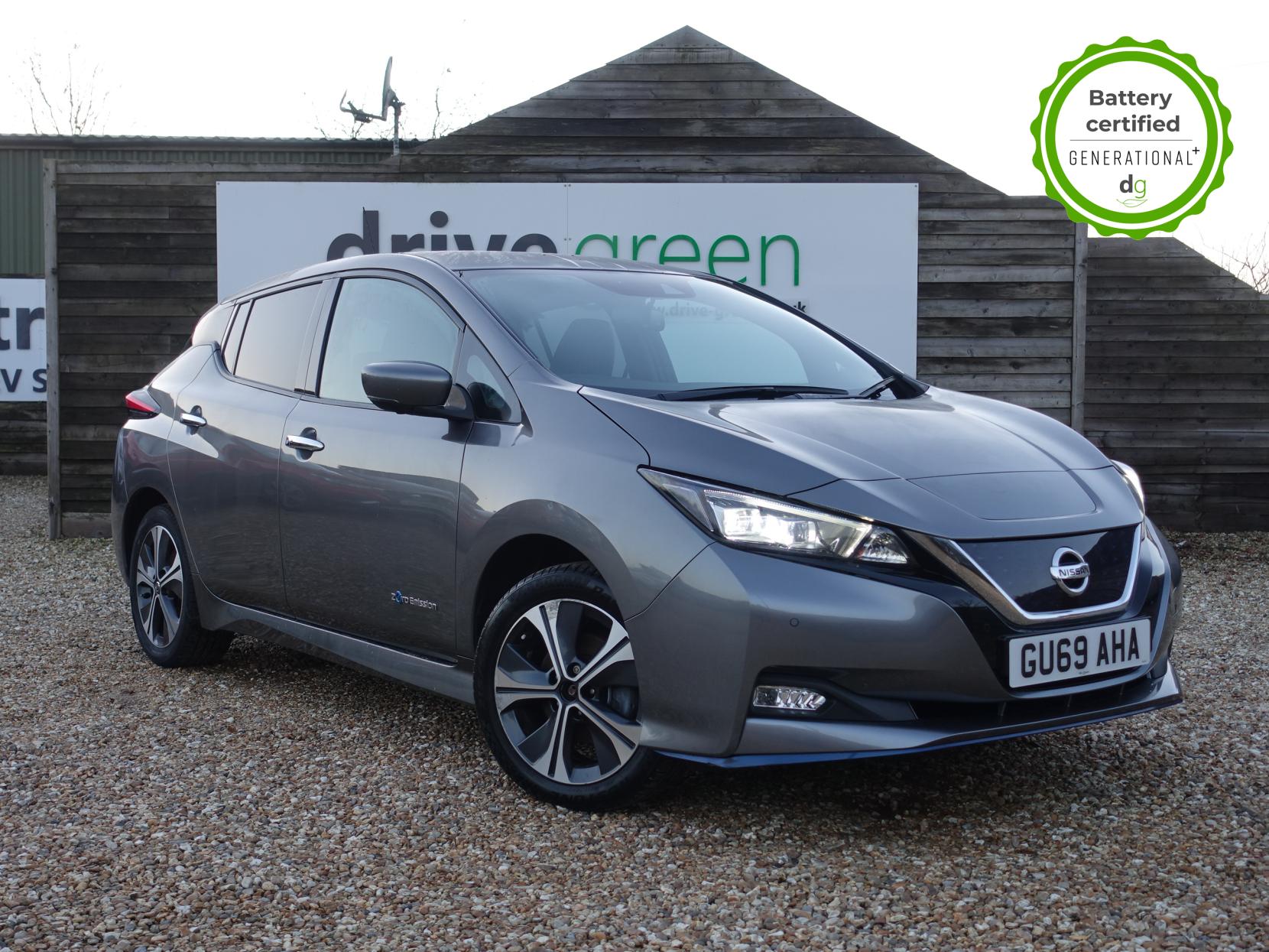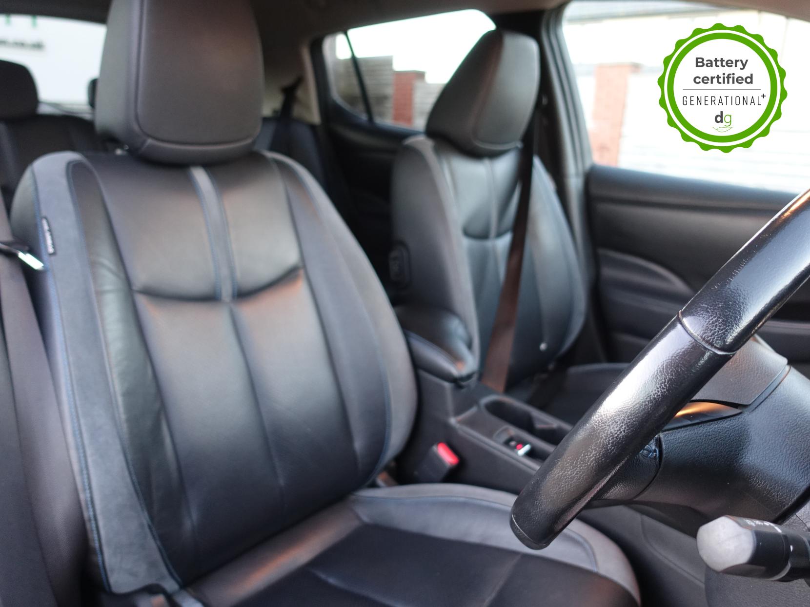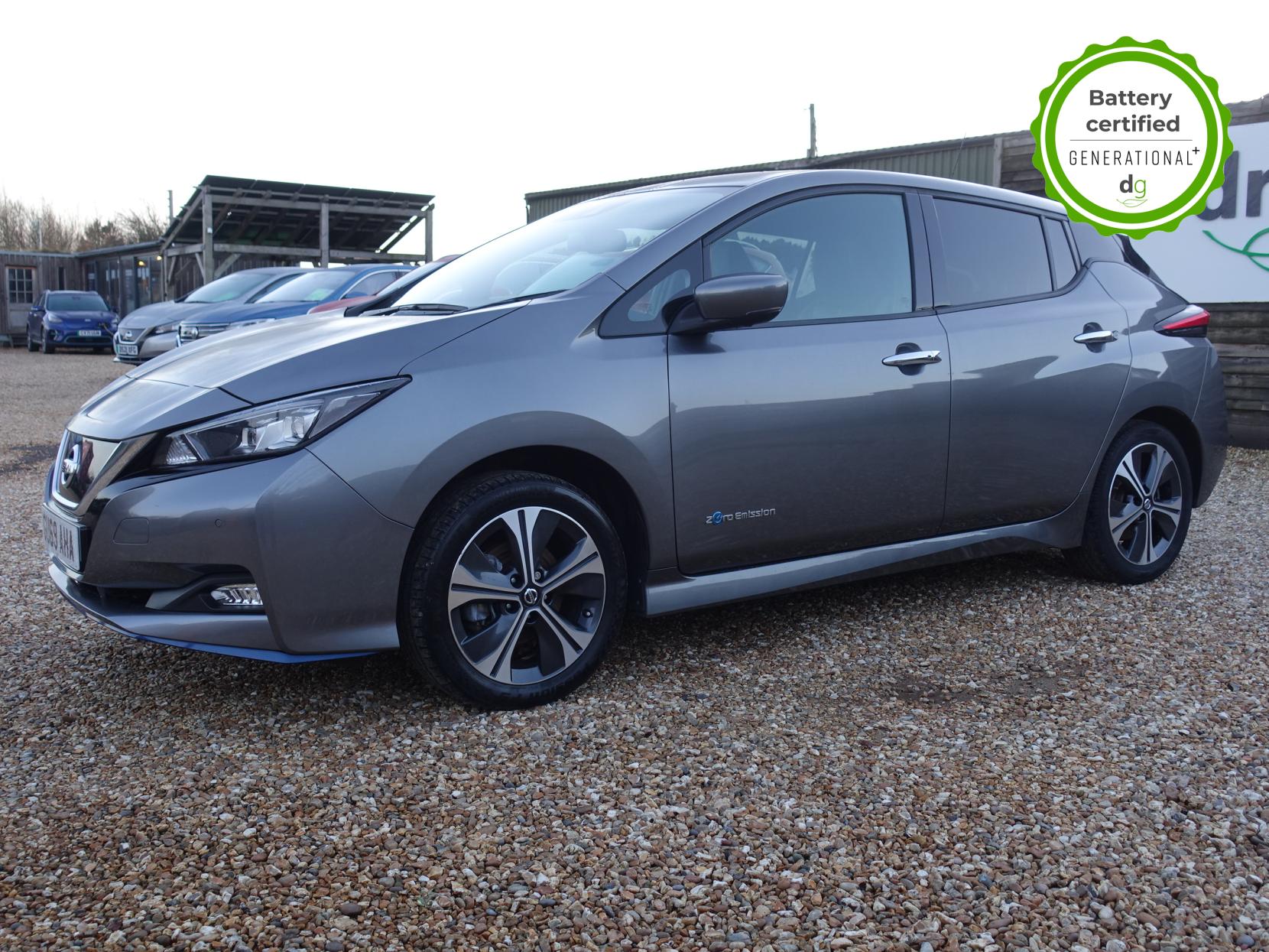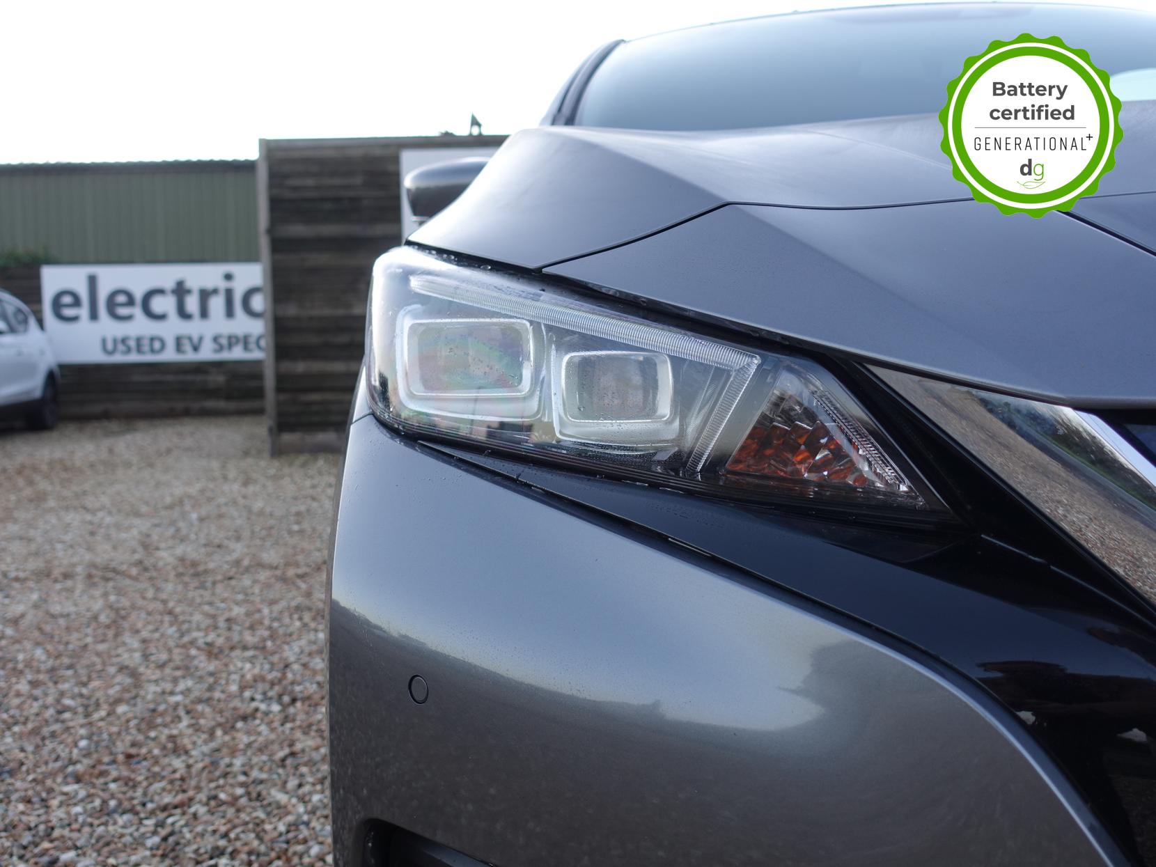 This car is in excellent condition and fully prepared to our high standard, has 2 keys, 1 previous owner, 7 previous services, and it is the end of October 2026 until its next service and the end of September 2026 when its MOT is due. This particular Nissan Leaf comes packed with lots of tech and features including Pro Pilot, an autonomous driving feature, which will keep you in lane and even drive for you in the right conditions. It also has an electronic handbrake, heated seats and steering wheel, and a 360o camera system with front and rear sensors. As this is the top spec model it comes with Leather seats, a BOSE sound system, and adaptive LED headlights. It is also Apple Car Play and Android Auto integrated. The 62kW Leaf Tekna has a 240 mile real world range approx. depending on driving style and time of year. DC rapid charging (up to 80% charge in approx. 50 mins). If you are looking for a reliable high quality affordable, and super comfy long rage EV, this could be the ideal car for you. Unlike Car Supermarkets we have no hidden admin fees, there is no pressure selling, and we offer low finance rates. We also perform battery health checks on all our vehicles, so you can have the comfort of knowing the battery state of health of the EV you choose. Hopefully you will choose to buy your EV from Drive Green, as we are a multi award winning EV specialist and sustainable business, here to help you get the most from your switch to electric driving. Contact us to book an appointment to view and test drive this car, or to find out more about switching to electric driving, and to discuss purchase options, including buying on finance, and our remote buying and delivery service. We are also able to supply your home charge point also, making the switch to electric driving super easy for you. Drive Green is a true EV specialist and the UK’s biggest electric car only dealership, since 2017. FORECOURT VISITS AND TEST DRIVES BY APPOINTMENT ONLY.