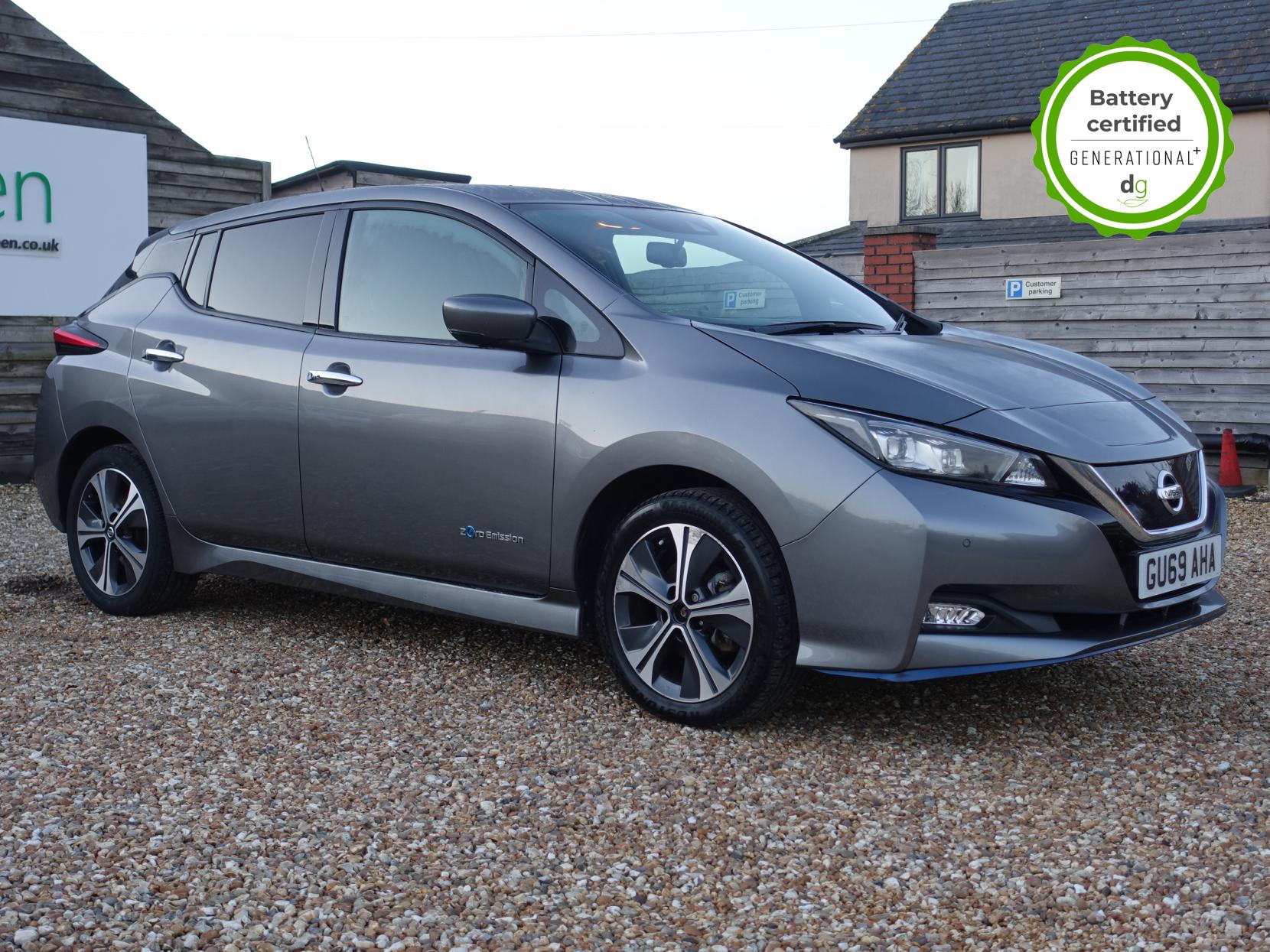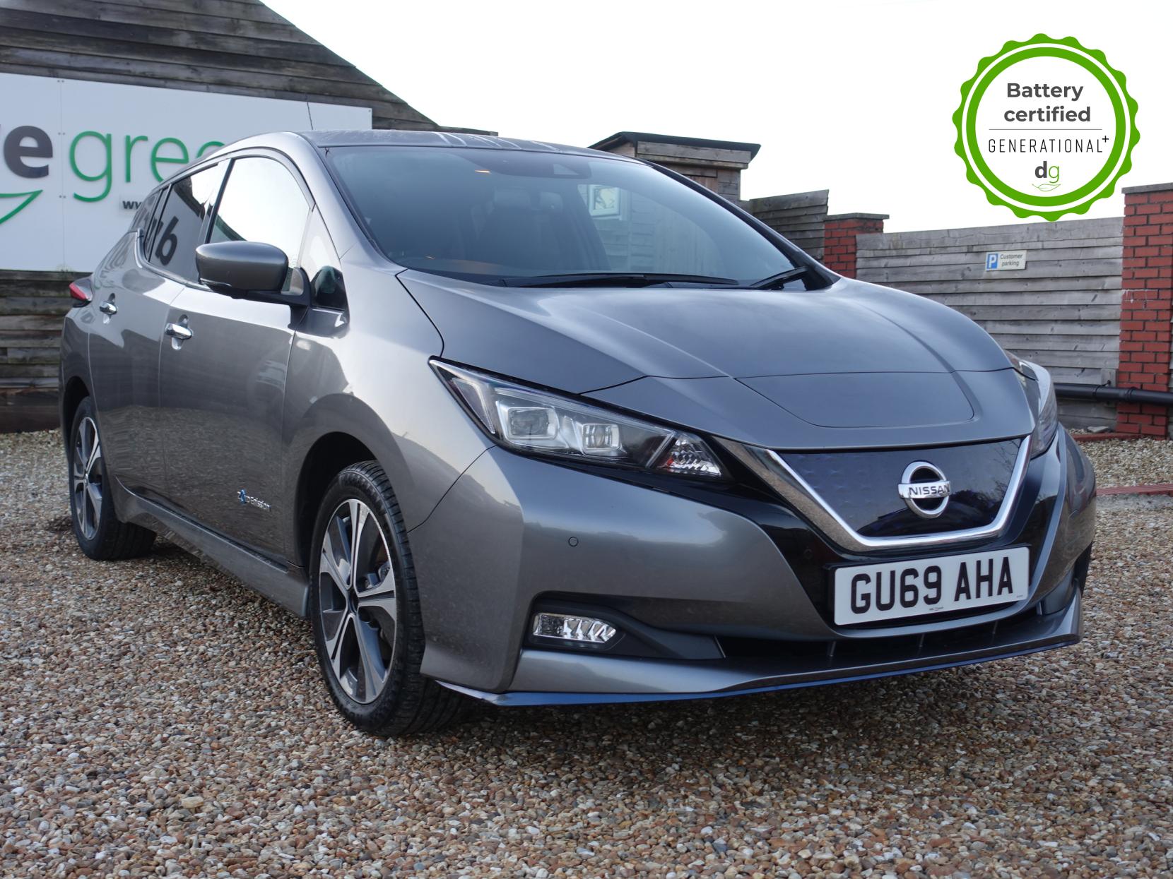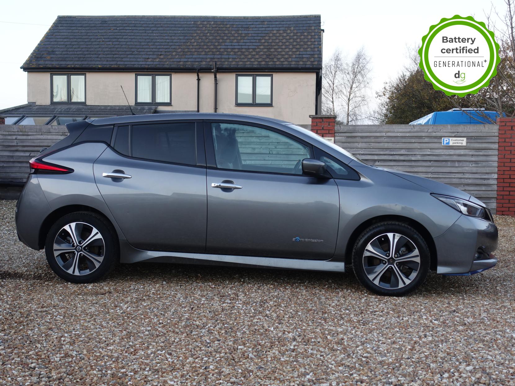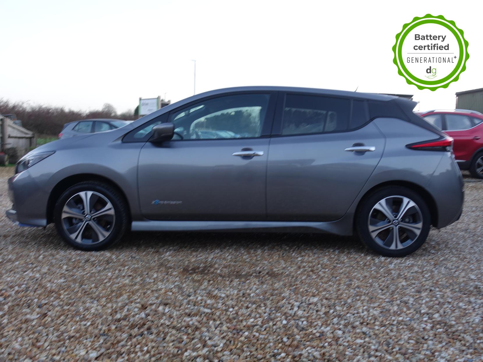 This car is in excellent condition and fully prepared to our high standard, has 2 keys, 1 previous owner, 7 previous services, and it is the end of October 2026 until its next service and the end of September 2026 when its MOT is due. This particular Nissan Leaf comes packed with lots of tech and features including Pro Pilot, an autonomous driving feature, which will keep you in lane and even drive for you in the right conditions. It also has an electronic handbrake, heated seats and steering wheel, and a 360o camera system with front and rear sensors. As this is the top spec model it comes with Leather seats, a BOSE sound system, and adaptive LED headlights. It is also Apple Car Play and Android Auto integrated. The 62kW Leaf Tekna has a 240 mile real world range approx. depending on driving style and time of year. DC rapid charging (up to 80% charge in approx. 50 mins). If you are looking for a reliable high quality affordable, and super comfy long rage EV, this could be the ideal car for you. Unlike Car Supermarkets we have no hidden admin fees, there is no pressure selling, and we offer low finance rates. We also perform battery health checks on all our vehicles, so you can have the comfort of knowing the battery state of health of the EV you choose. Hopefully you will choose to buy your EV from Drive Green, as we are a multi award winning EV specialist and sustainable business, here to help you get the most from your switch to electric driving. Contact us to book an appointment to view and test drive this car, or to find out more about switching to electric driving, and to discuss purchase options, including buying on finance, and our remote buying and delivery service. We are also able to supply your home charge point also, making the switch to electric driving super easy for you. Drive Green is a true EV specialist and the UK’s biggest electric car only dealership, since 2017. FORECOURT VISITS AND TEST DRIVES BY APPOINTMENT ONLY.