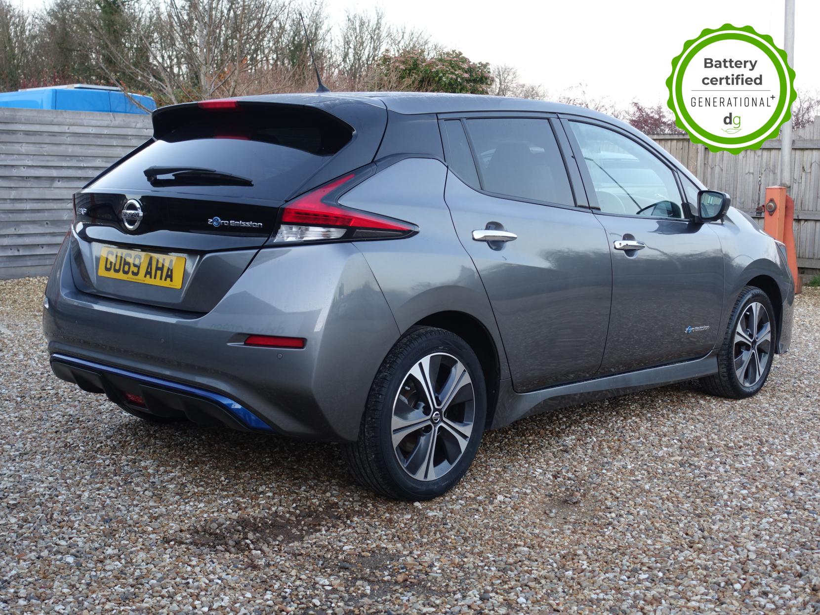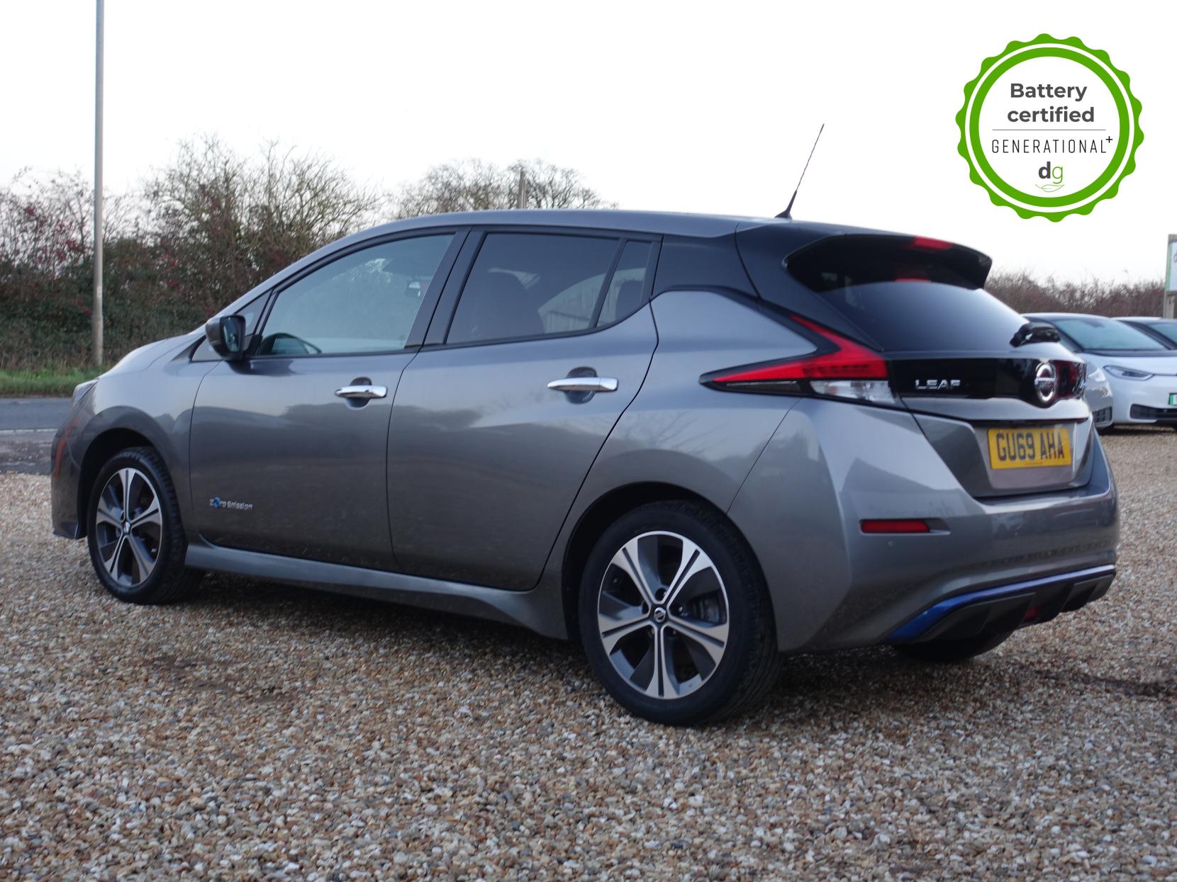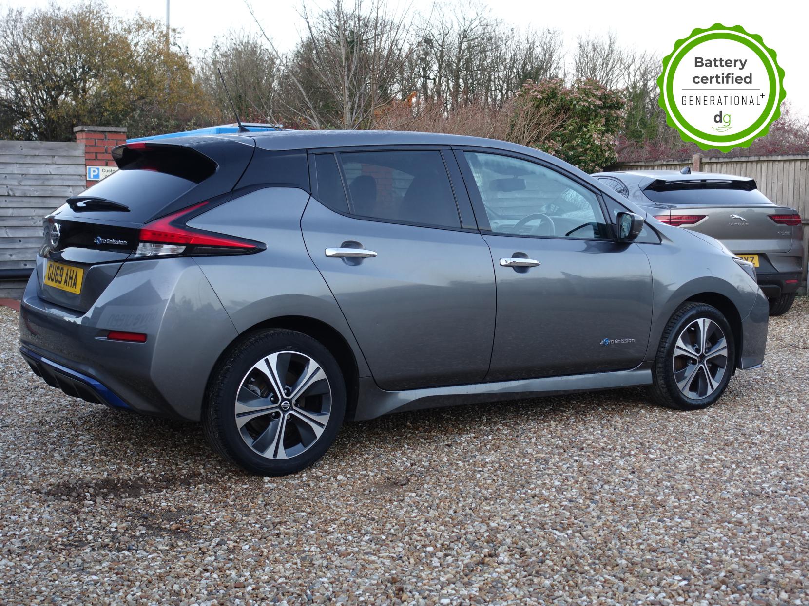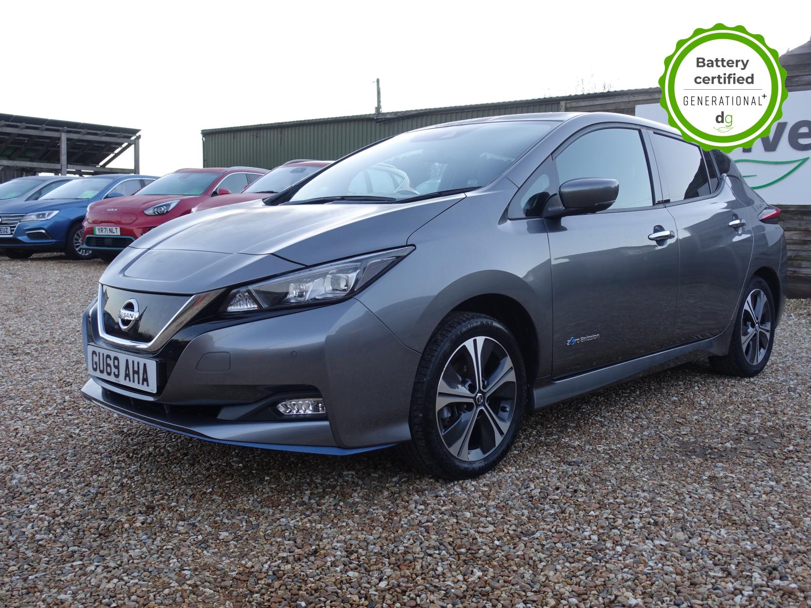 This car is in excellent condition and fully prepared to our high standard, has 2 keys, 1 previous owner, 7 previous services, and it is the end of October 2026 until its next service and the end of September 2026 when its MOT is due. This particular Nissan Leaf comes packed with lots of tech and features including Pro Pilot, an autonomous driving feature, which will keep you in lane and even drive for you in the right conditions. It also has an electronic handbrake, heated seats and steering wheel, and a 360o camera system with front and rear sensors. As this is the top spec model it comes with Leather seats, a BOSE sound system, and adaptive LED headlights. It is also Apple Car Play and Android Auto integrated. The 62kW Leaf Tekna has a 240 mile real world range approx. depending on driving style and time of year. DC rapid charging (up to 80% charge in approx. 50 mins). If you are looking for a reliable high quality affordable, and super comfy long rage EV, this could be the ideal car for you. Unlike Car Supermarkets we have no hidden admin fees, there is no pressure selling, and we offer low finance rates. We also perform battery health checks on all our vehicles, so you can have the comfort of knowing the battery state of health of the EV you choose. Hopefully you will choose to buy your EV from Drive Green, as we are a multi award winning EV specialist and sustainable business, here to help you get the most from your switch to electric driving. Contact us to book an appointment to view and test drive this car, or to find out more about switching to electric driving, and to discuss purchase options, including buying on finance, and our remote buying and delivery service. We are also able to supply your home charge point also, making the switch to electric driving super easy for you. Drive Green is a true EV specialist and the UK’s biggest electric car only dealership, since 2017. FORECOURT VISITS AND TEST DRIVES BY APPOINTMENT ONLY.