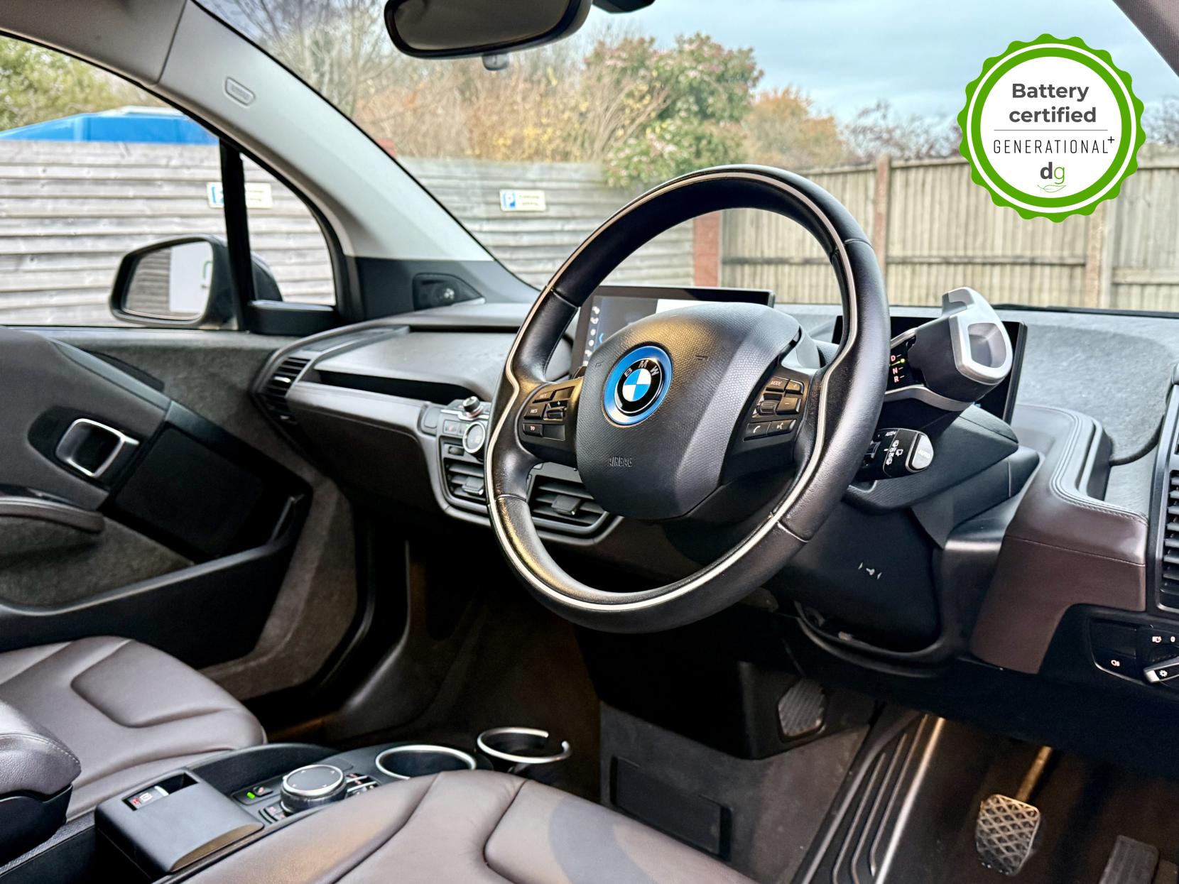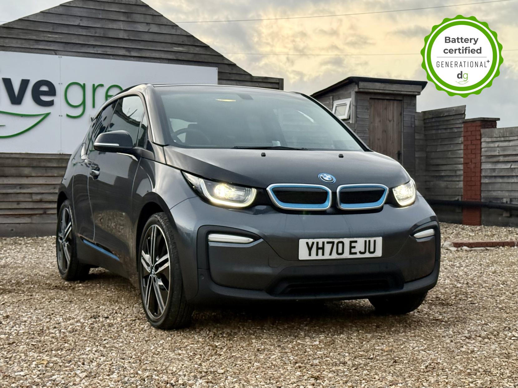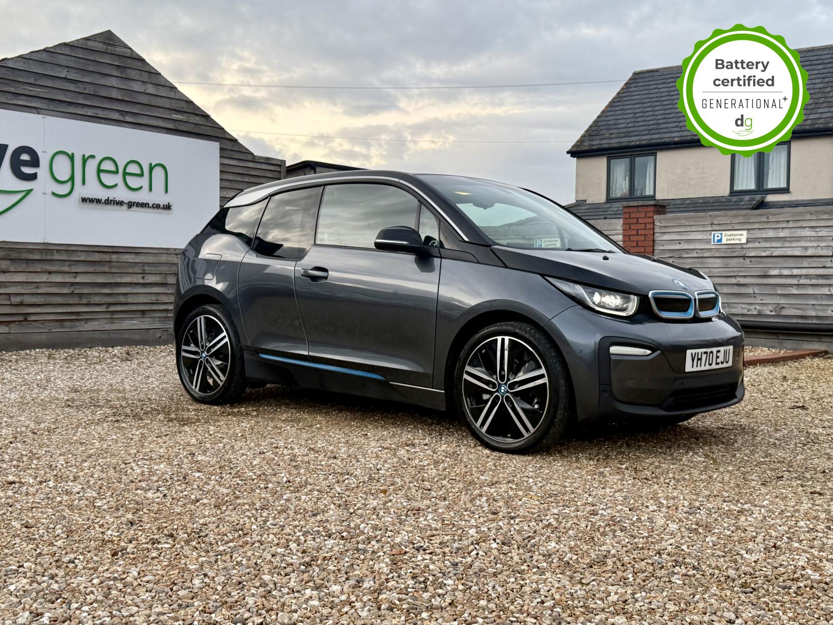 OVER £6K OF OPTIONAL EXTRAS! This particular car is in excellent condition and fully prepared to our high standard, has 2 keys, a full service history, and it is the end of august 2026 until its next service and September 2026 when its next MOT is due. It also has an excellent 97% battery state of heath! This car includes the following additional UPGRADES: Suite full leather interior, online entertainment, sun protection glass, Harmon Kardon premium sound system, 20′ alloys, exterior sound, front and rear sensors, reversing camera, and a self-parking function. The 120aH BMW i3 has a 185 mile real world range approx. depending on driving style & time of year an exciting drive and a great range. It has an In-built sat nav, media centre, and DAB, 4 seats, 4 doors (rear doors pillar-less coach doors), great load space with seats folded flat, quality engineering, and CCS DC Rapid charging (giving up to 100 miles range in 30 minutes rapid charge time). If you are looking for the amazing drive, quality and style of a BMW i3, and with a great driving range and good spec, this could be the ideal car for you. Unlike Car Supermarkets we have no hidden admin fees, there is no pressure selling, and we offer low finance rates. We also perform battery health checks on all our vehicles, so you can have the comfort of knowing the battery state of health of the EV you choose. Hopefully you will choose to buy your EV from Drive Green, as we are a multi award winning EV specialist and sustainable business, here to help you get the most from your switch to electric driving. Contact us to book an appointment to view and test drive this car, or to find out more about switching to electric driving, and to discuss purchase options, including buying on finance, and our remote buying and delivery service. We are also able to supply your home charge point also, making the switch to electric driving super easy for you. Drive Green is a true EV specialist and the UK’s biggest electric car only dealership, since 2017. FORECOURT VISITS AND TEST DRIVES BY APPOINTMENT ONLY.