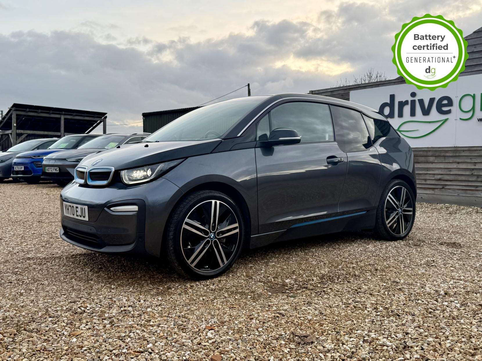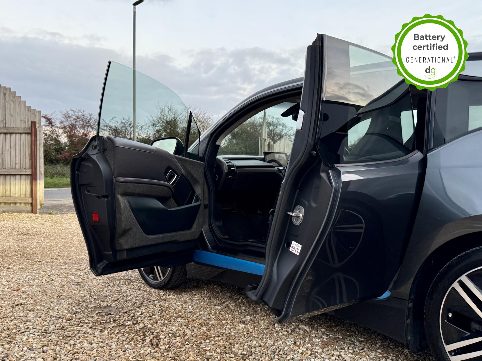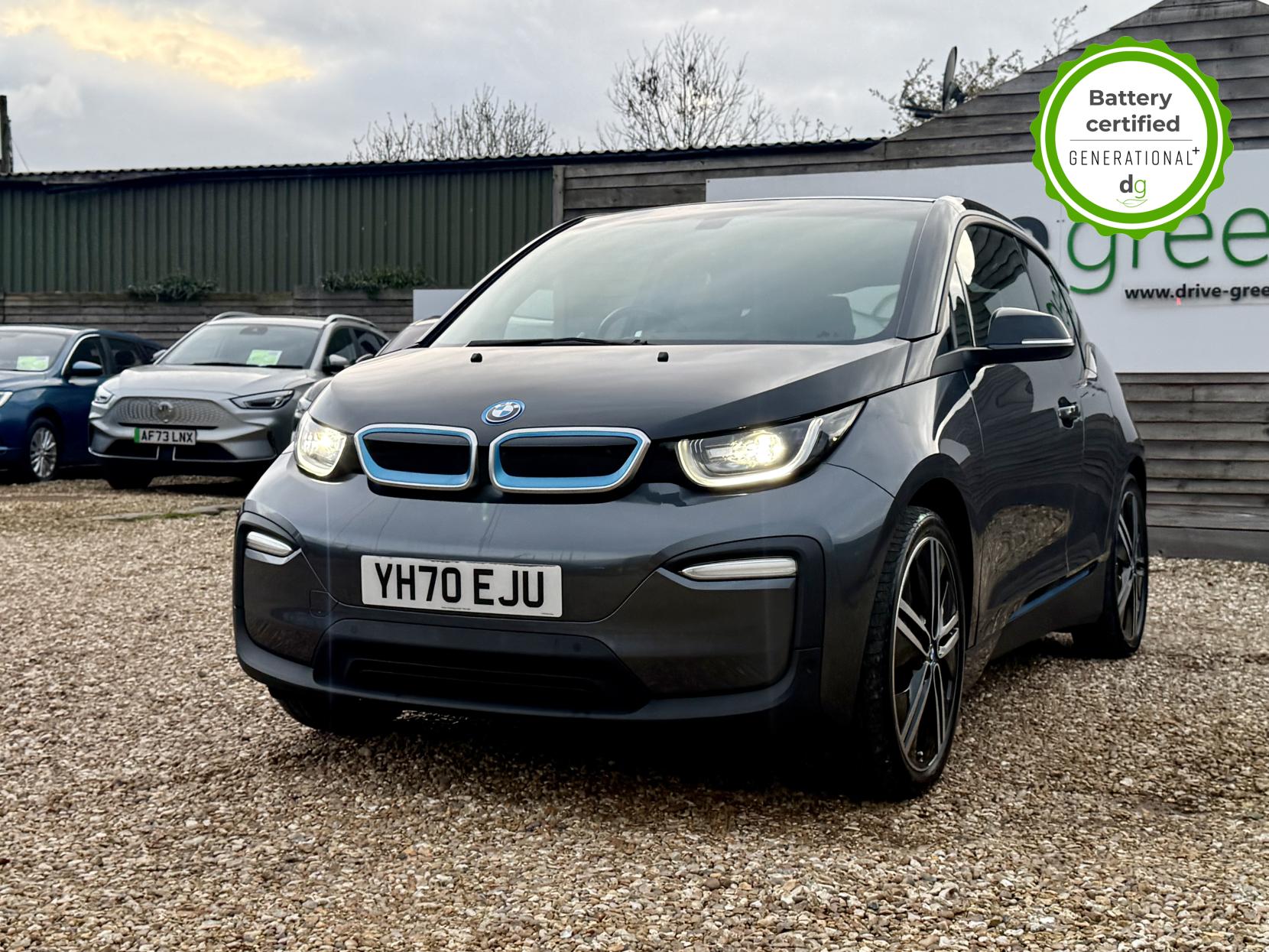 OVER £6K OF OPTIONAL EXTRAS! This particular car is in excellent condition and fully prepared to our high standard, has 2 keys, a full service history, and it is the end of august 2026 until its next service and September 2026 when its next MOT is due. It also has an excellent 97% battery state of heath! This car includes the following additional UPGRADES: Suite full leather interior, online entertainment, sun protection glass, Harmon Kardon premium sound system, 20′ alloys, exterior sound, front and rear sensors, reversing camera, and a self-parking function. The 120aH BMW i3 has a 185 mile real world range approx. depending on driving style & time of year an exciting drive and a great range. It has an In-built sat nav, media centre, and DAB, 4 seats, 4 doors (rear doors pillar-less coach doors), great load space with seats folded flat, quality engineering, and CCS DC Rapid charging (giving up to 100 miles range in 30 minutes rapid charge time). If you are looking for the amazing drive, quality and style of a BMW i3, and with a great driving range and good spec, this could be the ideal car for you. Unlike Car Supermarkets we have no hidden admin fees, there is no pressure selling, and we offer low finance rates. We also perform battery health checks on all our vehicles, so you can have the comfort of knowing the battery state of health of the EV you choose. Hopefully you will choose to buy your EV from Drive Green, as we are a multi award winning EV specialist and sustainable business, here to help you get the most from your switch to electric driving. Contact us to book an appointment to view and test drive this car, or to find out more about switching to electric driving, and to discuss purchase options, including buying on finance, and our remote buying and delivery service. We are also able to supply your home charge point also, making the switch to electric driving super easy for you. Drive Green is a true EV specialist and the UK’s biggest electric car only dealership, since 2017. FORECOURT VISITS AND TEST DRIVES BY APPOINTMENT ONLY.