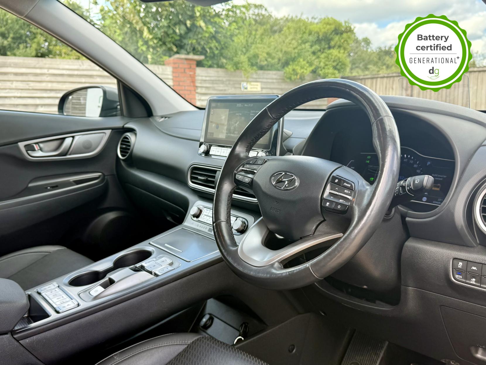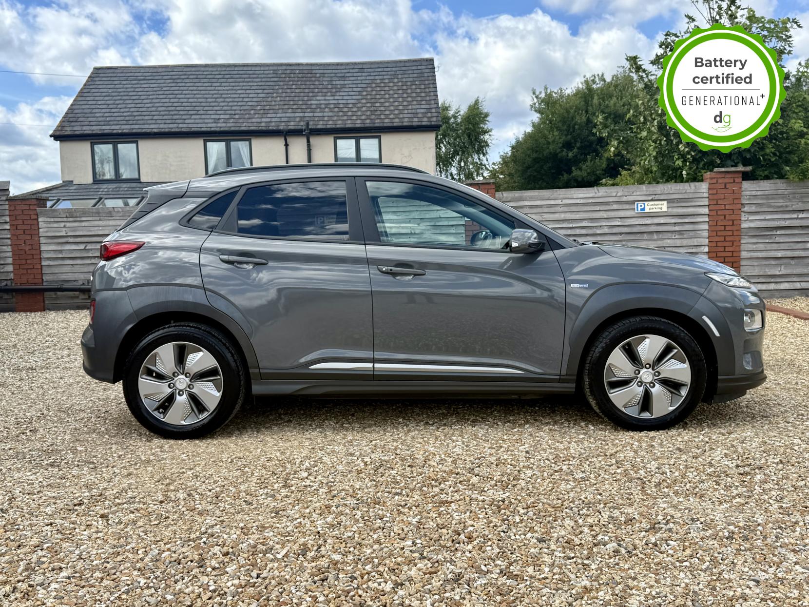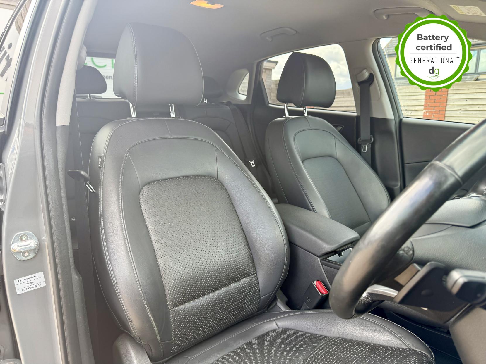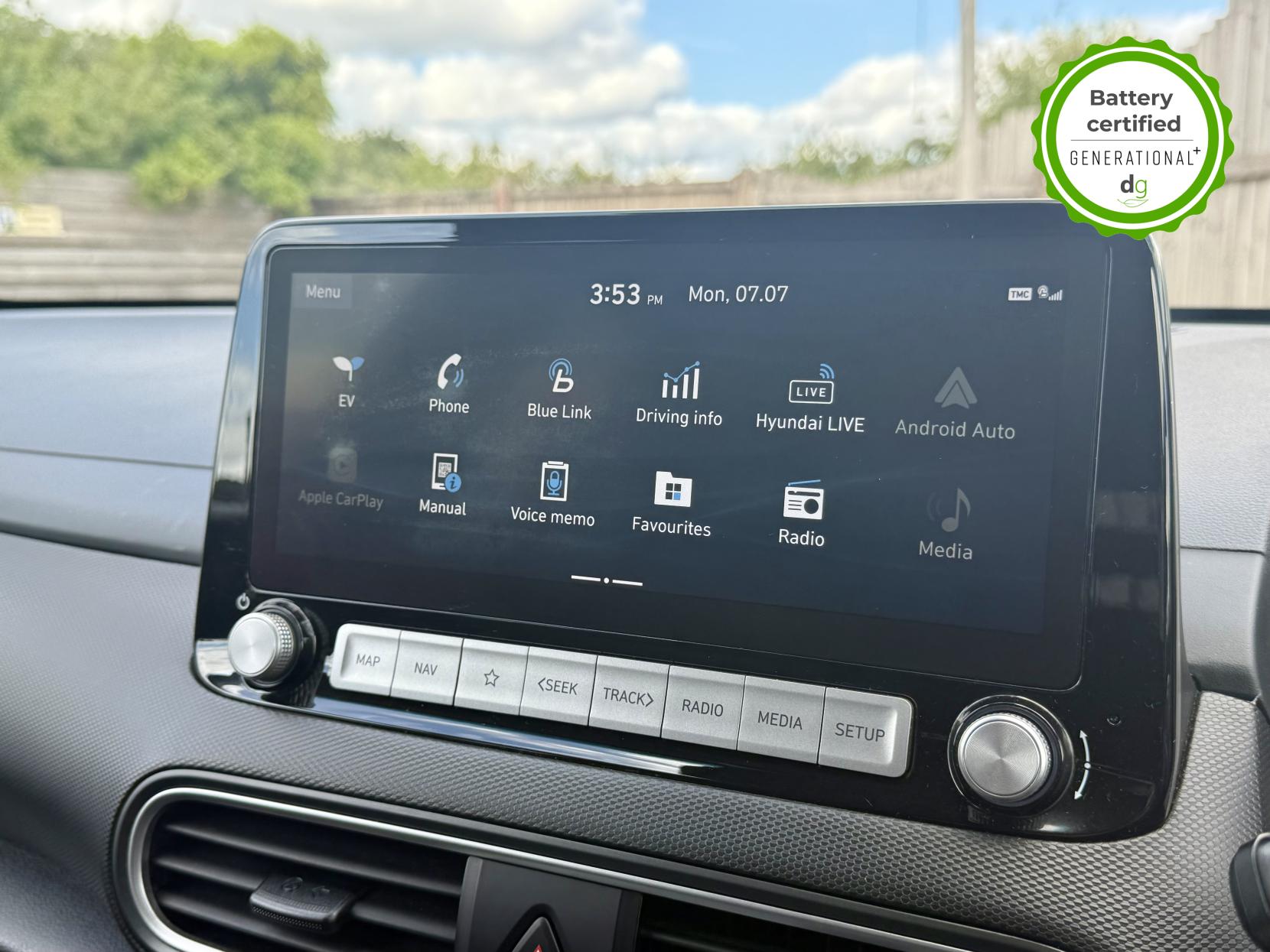 This particular Kona is in excellent condition and fully prepared to our high standard, has 2 keys and it will be July 2026 until its next service or MOT is due. The Hyundai Kona is a premium compact SUV, with an incredible 260-280 mile range, a practical boot, and roof rails. The top spec Premium SE model is packed with high tech features and is capable of 75kW rapid charging. It has Apple Car Play and Android Auto, reversing camera and sensors all round, In-built sat nav and media centre with DAB, heated and cooled leather seats and a heated steering wheel, adjustable regen braking and sport mode, Krell Premium sound system, wireless charging pad, pedestrian detection and auto braking, collision prevention system, adaptive cruise control with auto lane follow assist, blind spot detection system, adaptive LED lights with high beam assist, and a Head up Display. If you are looking for a medium sized stylish EV with loads of spec and in great condition, this could be the perfect car for you. Unlike Car Supermarkets we have no hidden admin fees, there is no pressure selling, and we offer low finance rates. We also perform battery health checks on all our vehicles, so you can have the comfort of knowing the battery state of health of the EV you choose. Hopefully you will choose to buy your EV from Drive Green, as we are a multi award winning EV specialist and sustainable business, here to help you get the most from your switch to electric driving. Contact us to book an appointment to view and test drive this car, or to find out more about switching to electric driving, and to discuss purchase options, including buying on finance, and our remote buying and delivery service. We are also able to supply your home charge point also, making the switch to electric driving super easy for you. Drive Green is a true EV specialist and the UK’s biggest electric car only dealership, since 2017. FORECOURT VISITS AND TEST DRIVES BY APPOINTMENT ONLY.