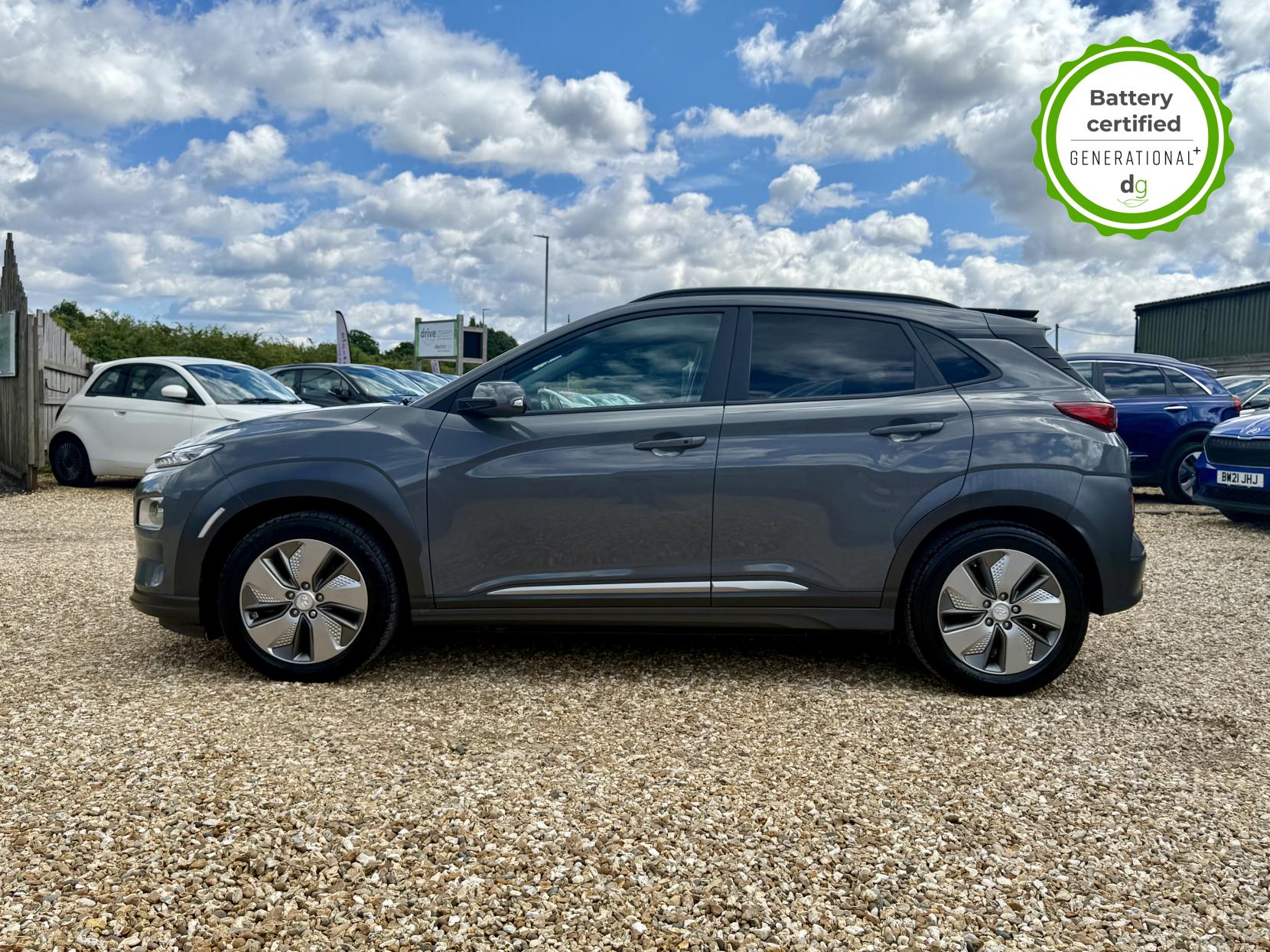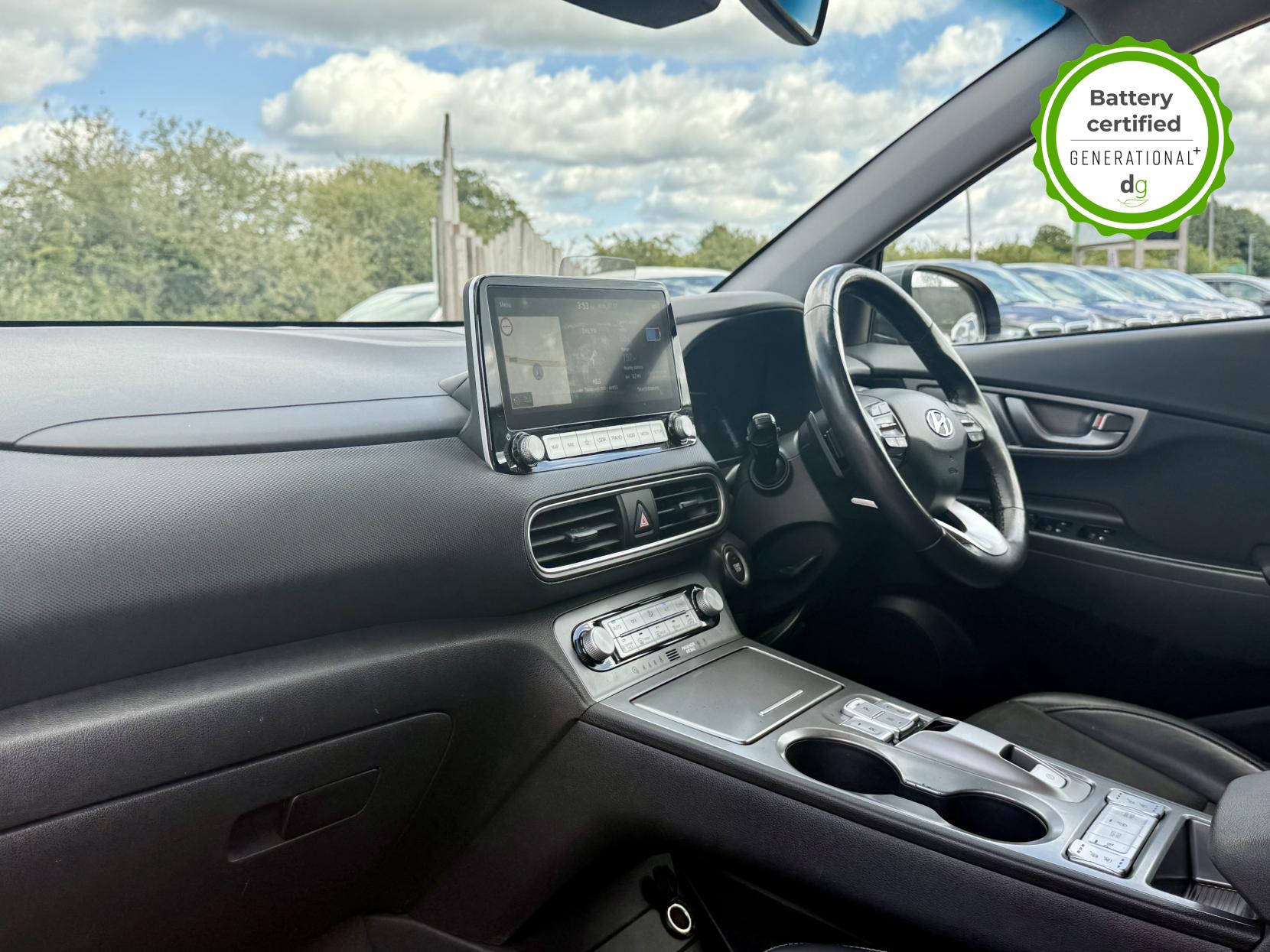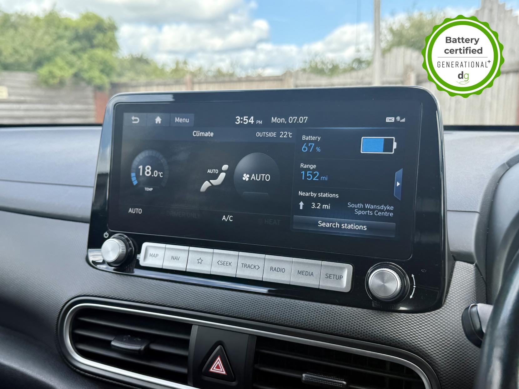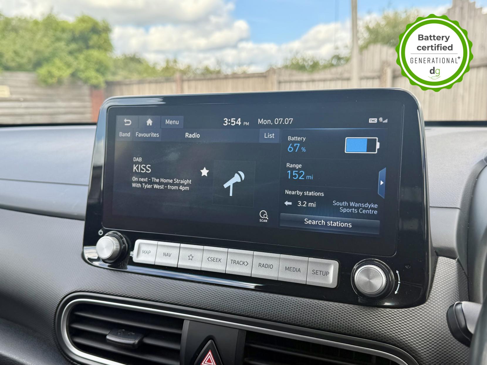 This particular Kona is in excellent condition and fully prepared to our high standard, has 2 keys and it will be July 2026 until its next service or MOT is due. The Hyundai Kona is a premium compact SUV, with an incredible 260-280 mile range, a practical boot, and roof rails. The top spec Premium SE model is packed with high tech features and is capable of 75kW rapid charging. It has Apple Car Play and Android Auto, reversing camera and sensors all round, In-built sat nav and media centre with DAB, heated and cooled leather seats and a heated steering wheel, adjustable regen braking and sport mode, Krell Premium sound system, wireless charging pad, pedestrian detection and auto braking, collision prevention system, adaptive cruise control with auto lane follow assist, blind spot detection system, adaptive LED lights with high beam assist, and a Head up Display. If you are looking for a medium sized stylish EV with loads of spec and in great condition, this could be the perfect car for you. Unlike Car Supermarkets we have no hidden admin fees, there is no pressure selling, and we offer low finance rates. We also perform battery health checks on all our vehicles, so you can have the comfort of knowing the battery state of health of the EV you choose. Hopefully you will choose to buy your EV from Drive Green, as we are a multi award winning EV specialist and sustainable business, here to help you get the most from your switch to electric driving. Contact us to book an appointment to view and test drive this car, or to find out more about switching to electric driving, and to discuss purchase options, including buying on finance, and our remote buying and delivery service. We are also able to supply your home charge point also, making the switch to electric driving super easy for you. Drive Green is a true EV specialist and the UK’s biggest electric car only dealership, since 2017. FORECOURT VISITS AND TEST DRIVES BY APPOINTMENT ONLY.