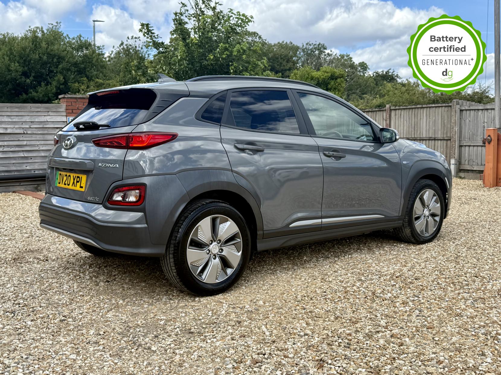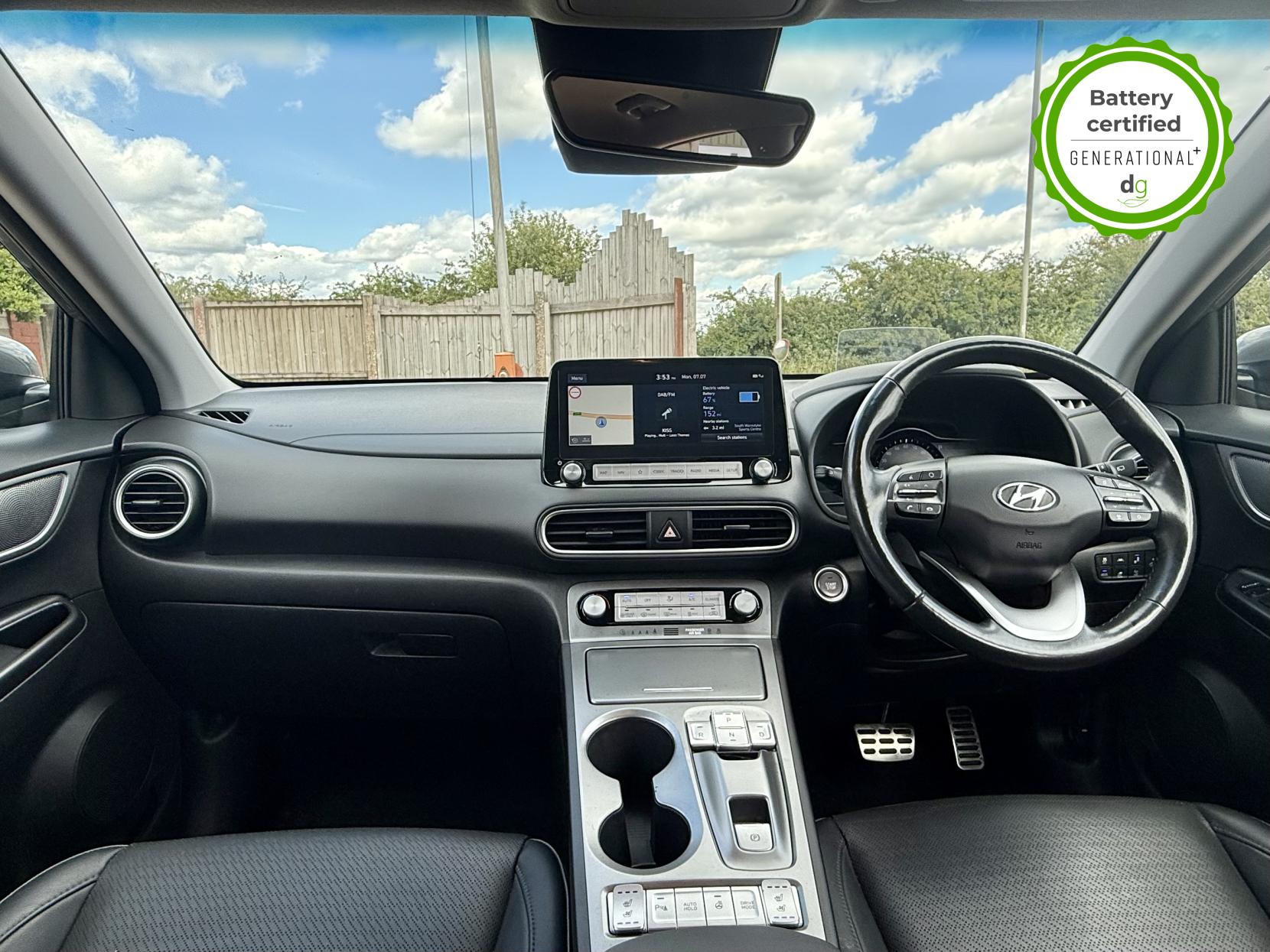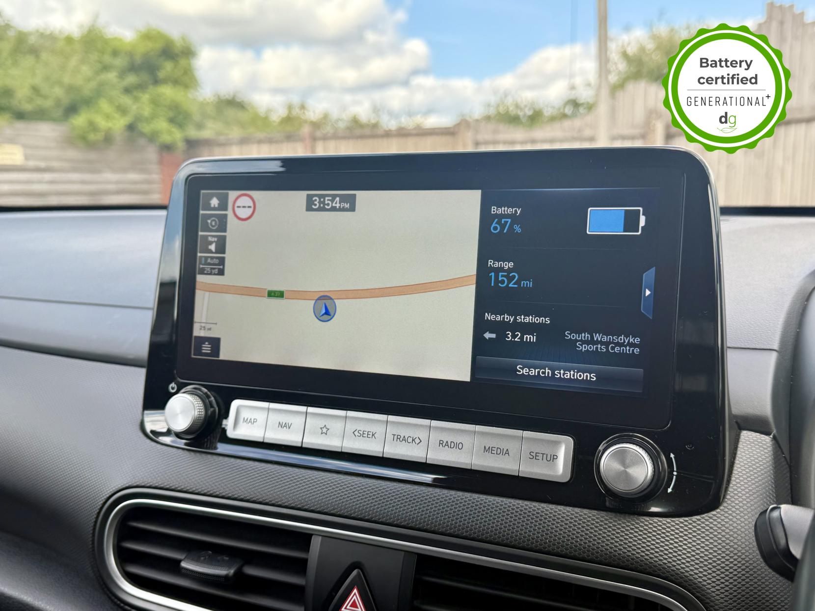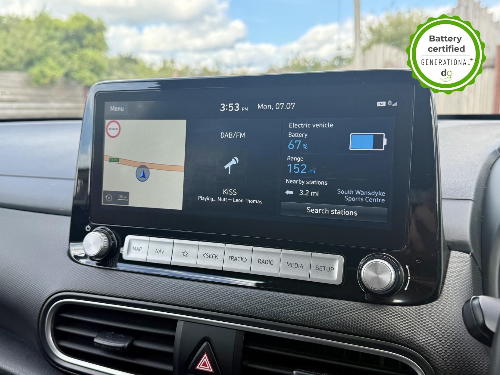 This particular Kona is in excellent condition and fully prepared to our high standard, has 2 keys and it will be July 2026 until its next service or MOT is due. The Hyundai Kona is a premium compact SUV, with an incredible 260-280 mile range, a practical boot, and roof rails. The top spec Premium SE model is packed with high tech features and is capable of 75kW rapid charging. It has Apple Car Play and Android Auto, reversing camera and sensors all round, In-built sat nav and media centre with DAB, heated and cooled leather seats and a heated steering wheel, adjustable regen braking and sport mode, Krell Premium sound system, wireless charging pad, pedestrian detection and auto braking, collision prevention system, adaptive cruise control with auto lane follow assist, blind spot detection system, adaptive LED lights with high beam assist, and a Head up Display. If you are looking for a medium sized stylish EV with loads of spec and in great condition, this could be the perfect car for you. Unlike Car Supermarkets we have no hidden admin fees, there is no pressure selling, and we offer low finance rates. We also perform battery health checks on all our vehicles, so you can have the comfort of knowing the battery state of health of the EV you choose. Hopefully you will choose to buy your EV from Drive Green, as we are a multi award winning EV specialist and sustainable business, here to help you get the most from your switch to electric driving. Contact us to book an appointment to view and test drive this car, or to find out more about switching to electric driving, and to discuss purchase options, including buying on finance, and our remote buying and delivery service. We are also able to supply your home charge point also, making the switch to electric driving super easy for you. Drive Green is a true EV specialist and the UK’s biggest electric car only dealership, since 2017. FORECOURT VISITS AND TEST DRIVES BY APPOINTMENT ONLY.