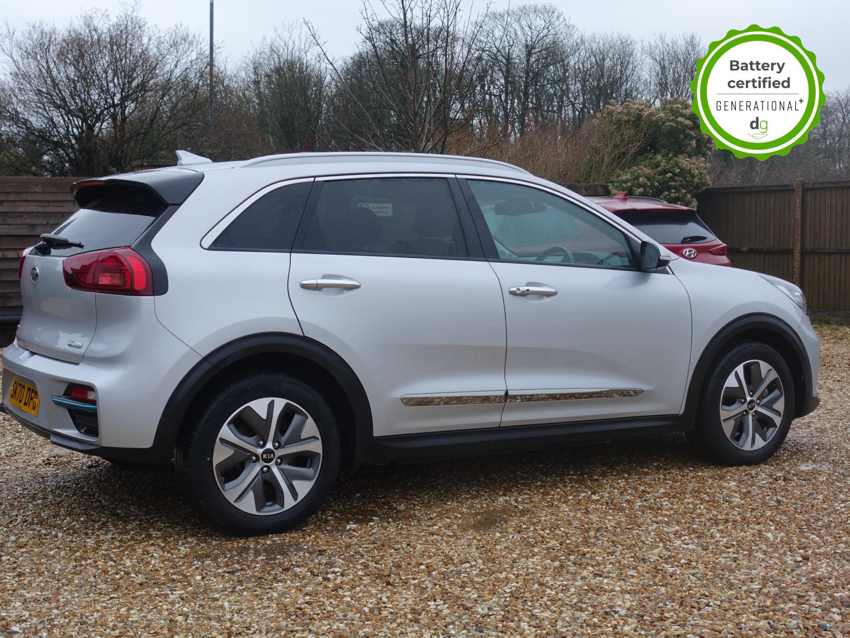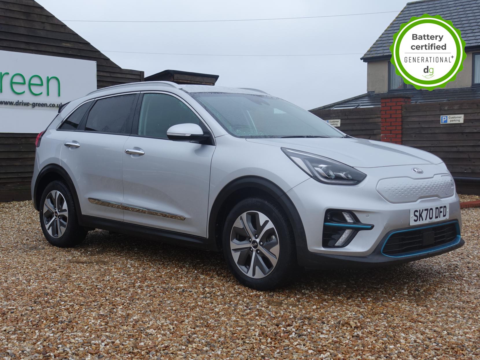 This E-Niro is in excellent condition and fully prepared to our high standard, has 2 keys, 1 previous owner, and it will be January 2027 until its next service and the end of September 2026 when its MOT is due. It is also showing an excellent 100% battery state of health. The E-Niro is a great all-rounder – a generously sized and practical family EV, with a real-world range of around 250-300 miles, depending on your driving style and time of year. The level 4 edition E-Niro features some impressive spec. 17′ alloys, roof rails, power adjustable driver’s seat, heated leather front and rear seats, heated steering wheel, and an 8 speakers JBL premium sound system. The E-Niro also features some great safety spec including adaptive cruise control with lane and follow assist, emergency stop signalling and a forward collision avoidance system. If you are looking for a long range and practically sized family EV, this could be the perfect car for you. Unlike Car Supermarkets we have no hidden admin fees, there is no pressure selling, and we offer low finance rates. We also perform battery health checks on all our vehicles, so you can have the comfort of knowing the battery state of health of the EV you choose. Hopefully you will choose to buy your EV from Drive Green, as we are a multi award winning EV specialist and sustainable business, here to help you get the most from your switch to electric driving. Contact us to book an appointment to view and test drive this car, or to find out more about switching to electric driving, and to discuss purchase options, including buying on finance, and our remote buying and delivery service. We are also able to supply your home charge point also, making the switch to electric driving super easy for you. Drive Green is a true EV specialist and the UK’s biggest electric car only dealership, since 2017. FORECOURT VISITS AND TEST DRIVES BY APPOINTMENT ONLY.