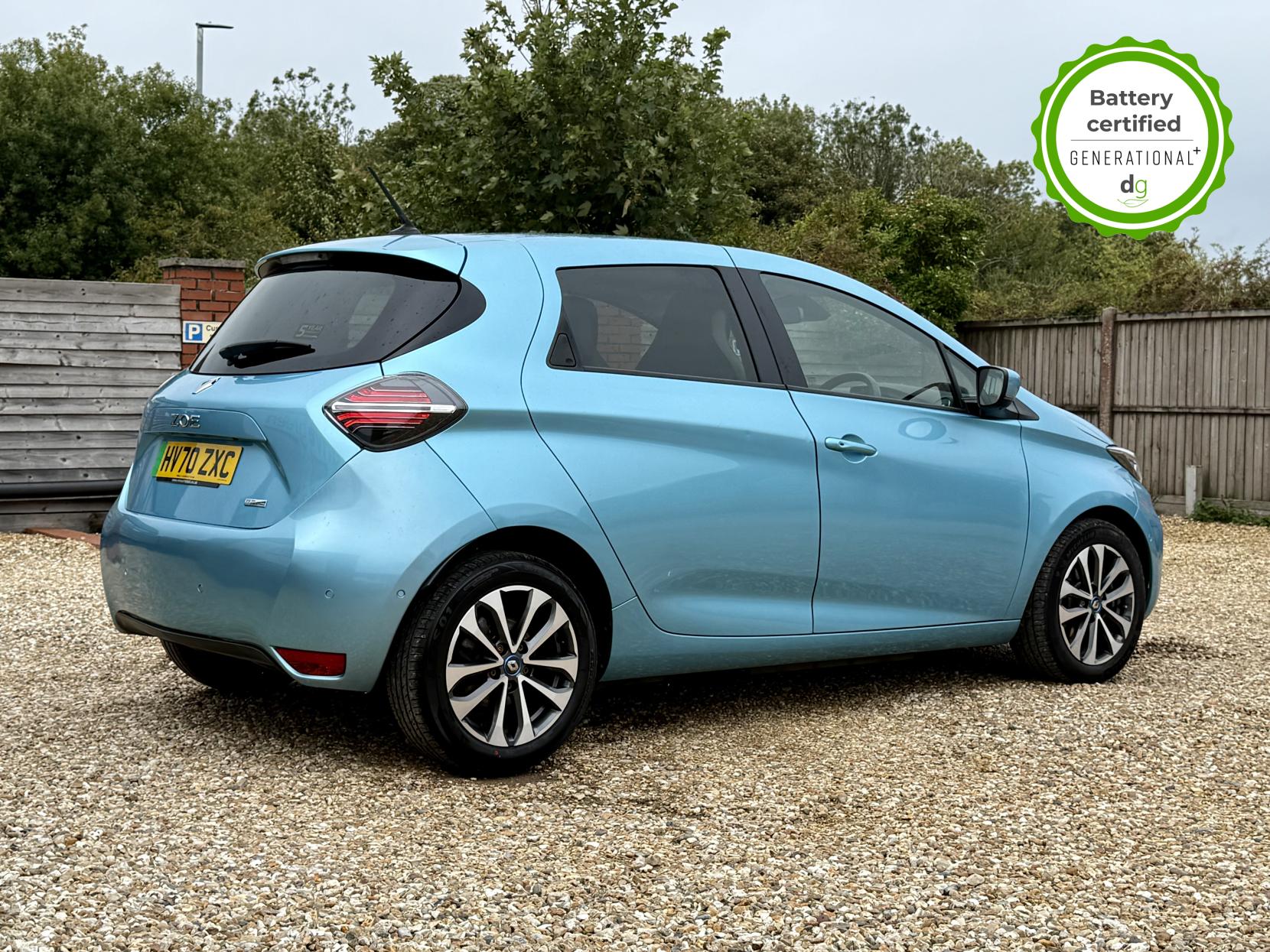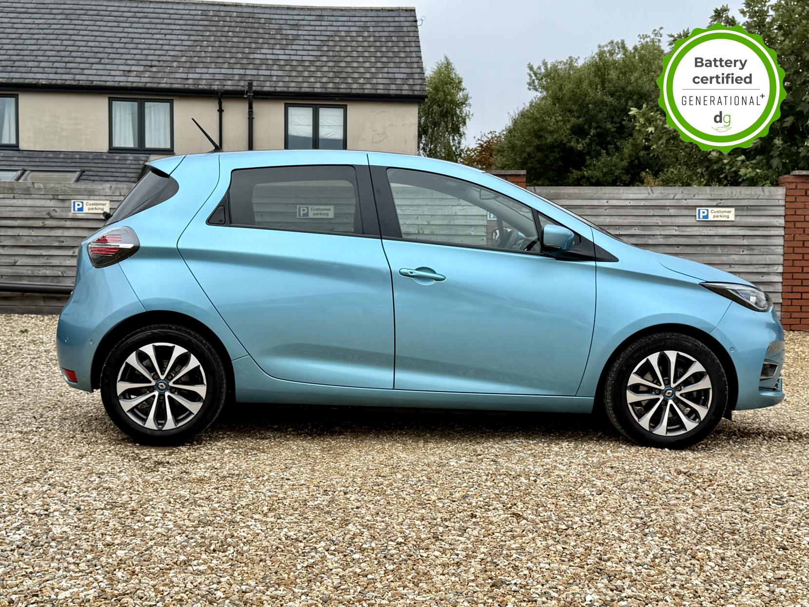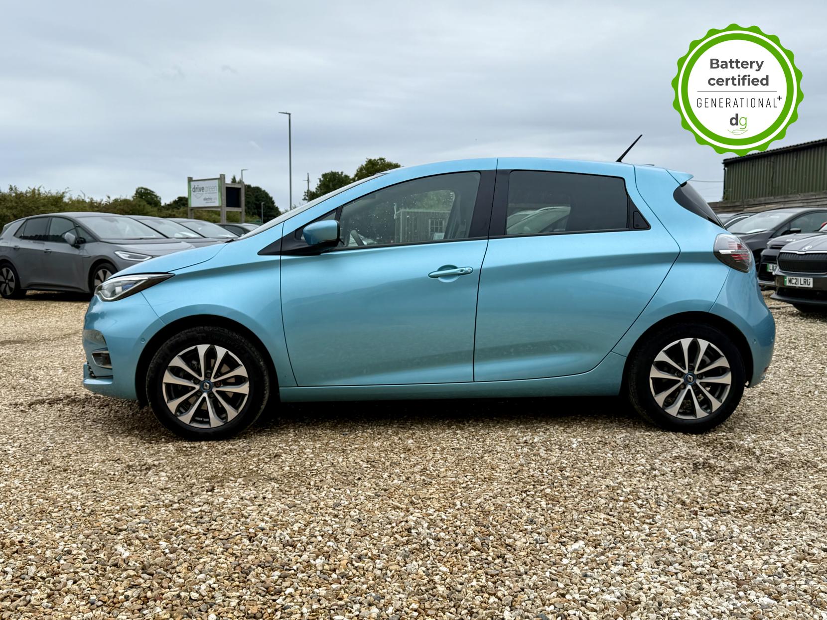OVER £700 OF OPTIONAL EXTRAS! This particular Zoe is in excellent condition and fully prepared to our high standard, has 2 keys, and 6 prioe services, and it will be September 2026 until its next service or MOT is due. The 50kWh Renault Zoe has approx. 200-220 miles of driving range, depending on your driving style and time of year, and comes standard with LED headlights, an electronic handbrake and rear sweeping indicators. The particular car comes with the optional rapid charge feature, which means you can charge about 100 miles of range back into the car in a 30 minute charging stop. The GT LINE trim level includes some great spec, including automatic lights and wipers, cruise control, front fog lights keyless entry, 9.3′ infotainment screen with SAT NAV, front and rear parking sensors and a reversing camera and stylish diamond cut alloys. If you are after a great value EV with 200+ miles of driving range and plenty of style and spec this could be the perfect EV for you. Unlike Car Supermarkets we have no hidden admin fees, there is no pressure selling, and we offer low finance rates. We also perform battery health checks on all our vehicles, so you can have the comfort of knowing the battery state of health of the EV you choose. Hopefully you will choose to buy your EV from Drive Green, as we are a multi award winning EV specialist and sustainable business, here to help you get the most from your switch to electric driving. Contact us to book an appointment to view and test drive this car, or to find out more about switching to electric driving, and to discuss purchase options, including buying on finance, and our remote buying and delivery service. We are also able to supply your home charge point also, making the switch to electric driving super easy for you. Drive Green is a true EV specialist and the UK’s biggest electric car only dealership, since 2017. FORECOURT VISITS AND TEST DRIVES BY APPOINTMENT ONLY.