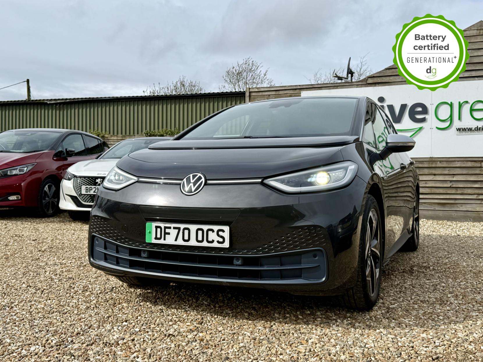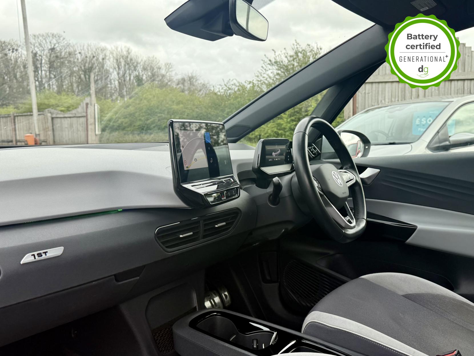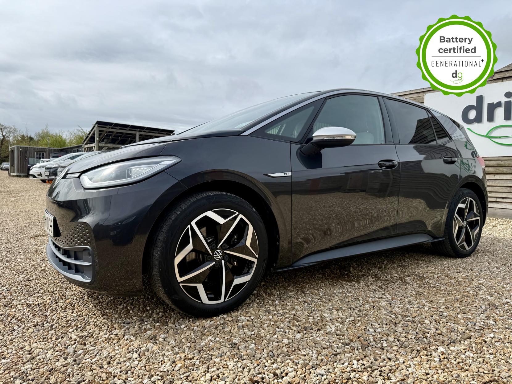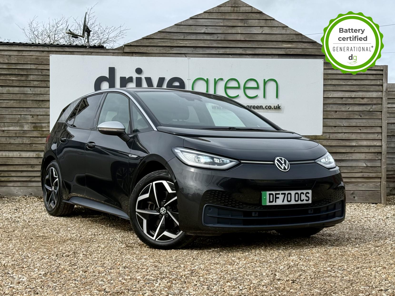 This particular iD3 is in excellent condition and fully prepared to our high standard, has 1 previous owner, a FSH of 2 servcies, and it is June 2027 until its next service and the end of December when its MOT is due. This high spec ID3 1st edition comes with diamond cut alloy wheels, 10” infotainment system with SAT Nav, the comfort pack and heated seats. Lots of safety equipment comes as standard including, adaptive cruise control incl. front assist, front and rear sensors, and forward collision warning. Led exterior lighting is included and so is wireless Apple CarPlay and Android Auto. Ambient lighting, silver styling pack, illuminated smartphone storage compartment, and microfleece upholstery are the limited-edition upgrades that come with this car. As with all ID 3s a clear and well-designed digital dash is standard, and it has an excellent easy to use infotainment system. The ID3 is has a real-world range of around 250 miles from its 58kWh battery. If you are looking for a stylish, practical and high-tech iD3 in great condition this could be the perfect iD3 for you. Unlike Car Supermarkets we have no hidden admin fees, there is no pressure selling, and we offer low finance rates. We also perform battery health checks on all our vehicles, so you can have the comfort of knowing the battery state of health of the EV you choose. Hopefully you will choose to buy your EV from Drive Green, as we are a multi award winning EV specialist and sustainable business, here to help you get the most from your switch to electric driving. Contact us to book an appointment to view and test drive this car, or to find out more about switching to electric driving, and to discuss purchase options, including buying on finance, and our remote buying and delivery service. We are also able to supply your home charge point also, making the switch to electric driving super easy for you. Car supplied with 1 key. Drive Green is a true EV specialist and the UK’s biggest electric car only dealership, since 2017. FORECOURT VISITS AND TEST DRIVES BY APPOINTMENT ONLY.