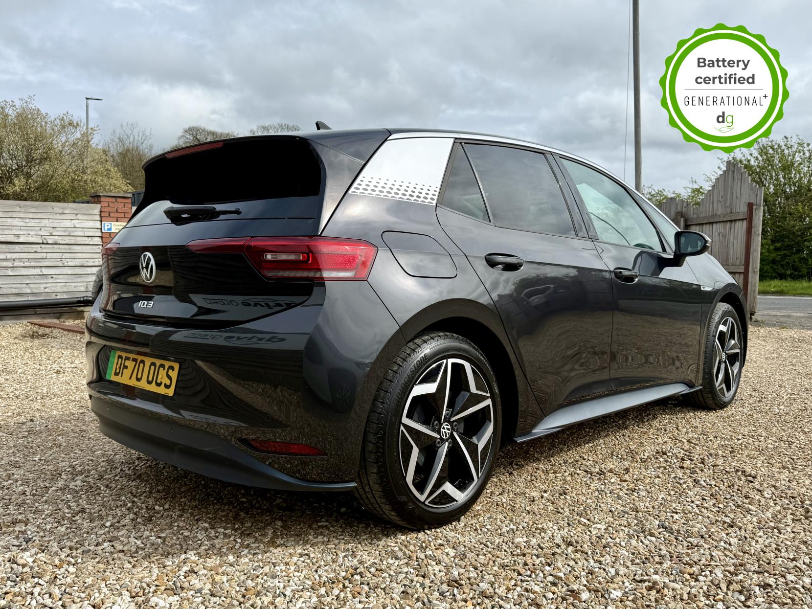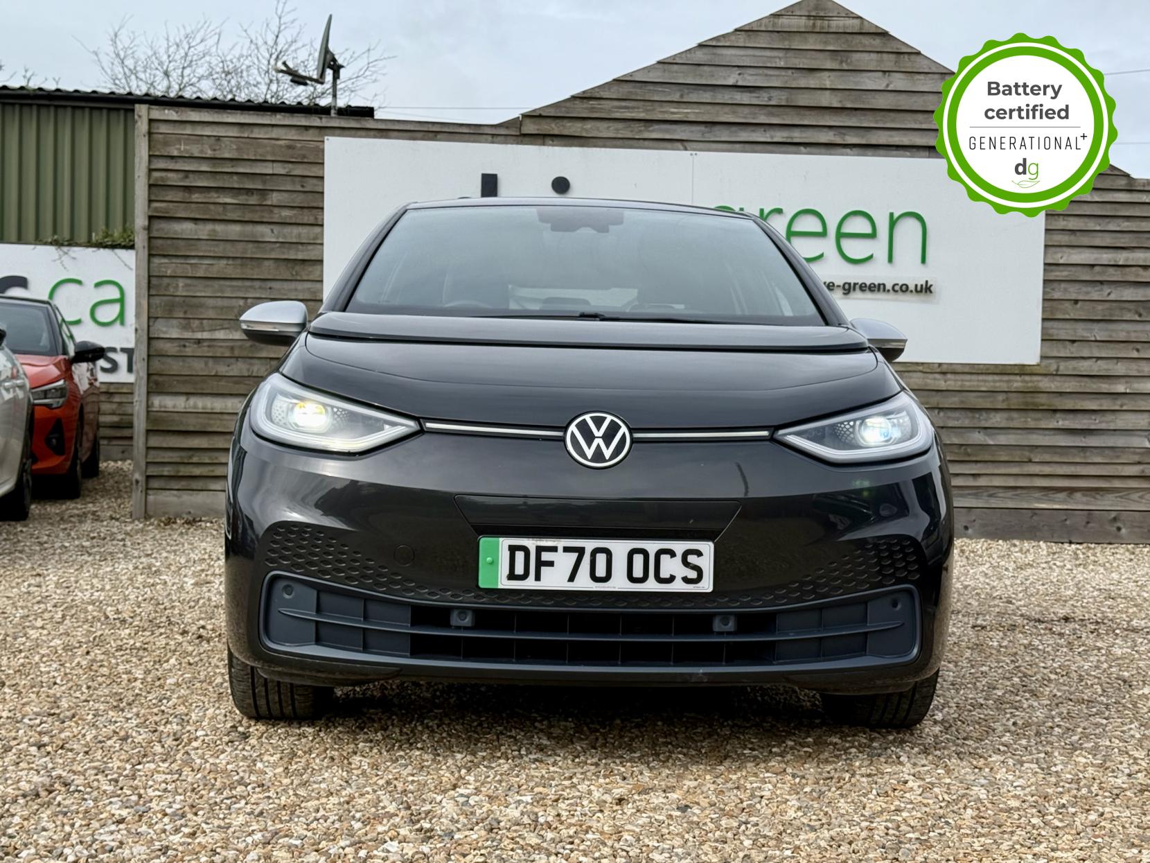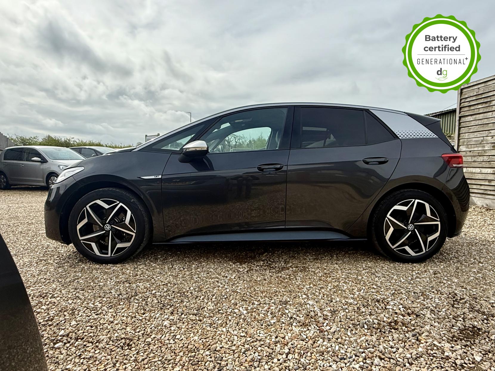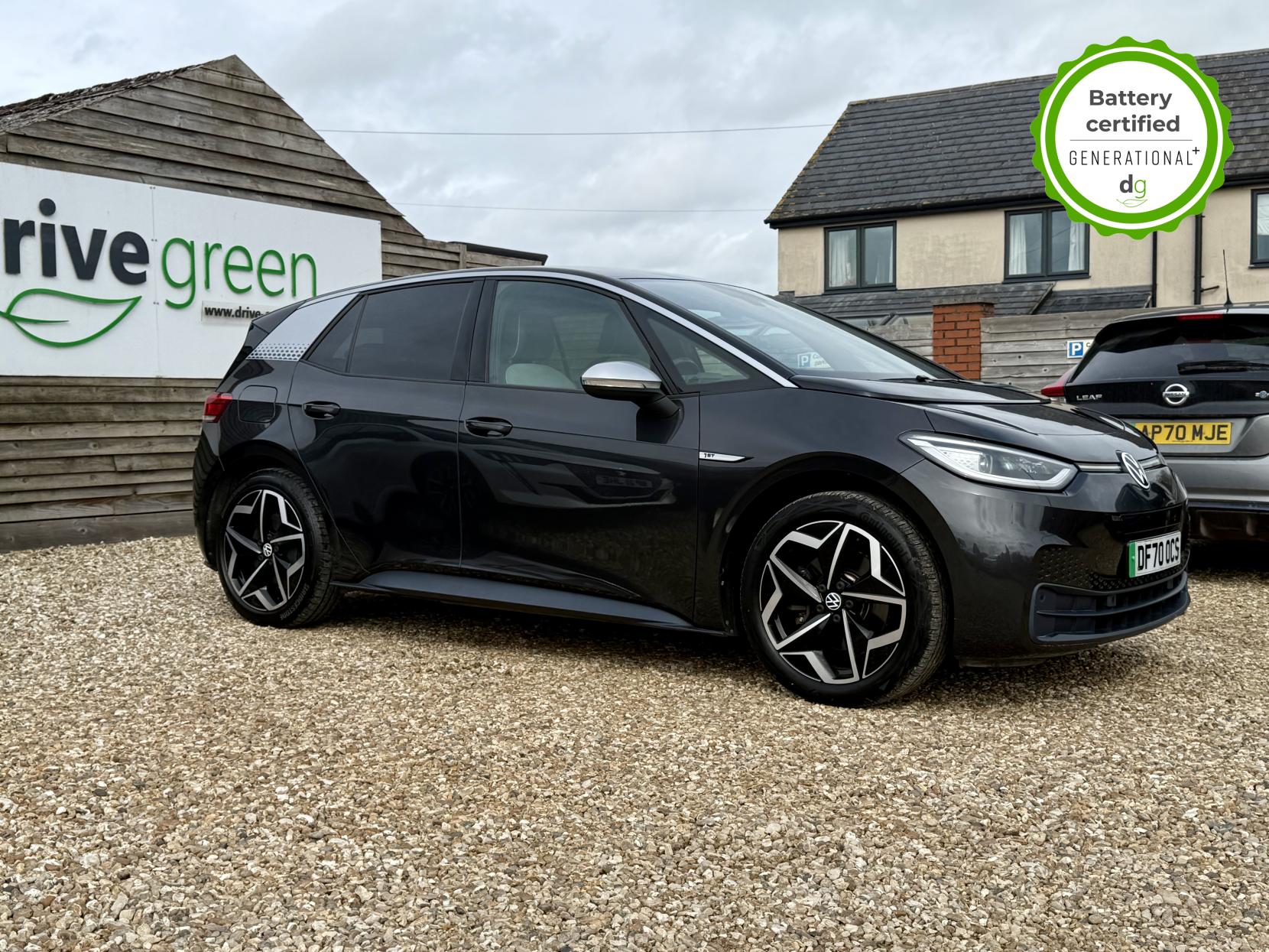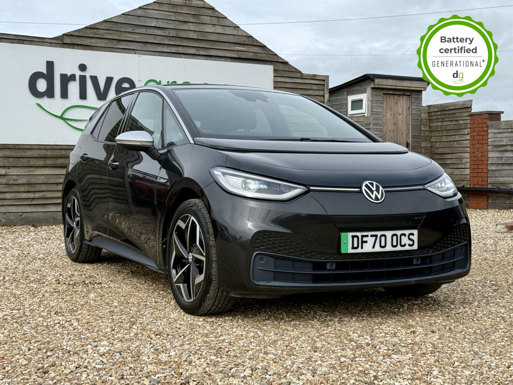 This particular iD3 is in excellent condition and fully prepared to our high standard, has 1 previous owner, a FSH of 2 servcies, and it is June 2027 until its next service and the end of December when its MOT is due. This high spec ID3 1st edition comes with diamond cut alloy wheels, 10” infotainment system with SAT Nav, the comfort pack and heated seats. Lots of safety equipment comes as standard including, adaptive cruise control incl. front assist, front and rear sensors, and forward collision warning. Led exterior lighting is included and so is wireless Apple CarPlay and Android Auto. Ambient lighting, silver styling pack, illuminated smartphone storage compartment, and microfleece upholstery are the limited-edition upgrades that come with this car. As with all ID 3s a clear and well-designed digital dash is standard, and it has an excellent easy to use infotainment system. The ID3 is has a real-world range of around 250 miles from its 58kWh battery. If you are looking for a stylish, practical and high-tech iD3 in great condition this could be the perfect iD3 for you. Unlike Car Supermarkets we have no hidden admin fees, there is no pressure selling, and we offer low finance rates. We also perform battery health checks on all our vehicles, so you can have the comfort of knowing the battery state of health of the EV you choose. Hopefully you will choose to buy your EV from Drive Green, as we are a multi award winning EV specialist and sustainable business, here to help you get the most from your switch to electric driving. Contact us to book an appointment to view and test drive this car, or to find out more about switching to electric driving, and to discuss purchase options, including buying on finance, and our remote buying and delivery service. We are also able to supply your home charge point also, making the switch to electric driving super easy for you. Car supplied with 1 key. Drive Green is a true EV specialist and the UK’s biggest electric car only dealership, since 2017. FORECOURT VISITS AND TEST DRIVES BY APPOINTMENT ONLY.