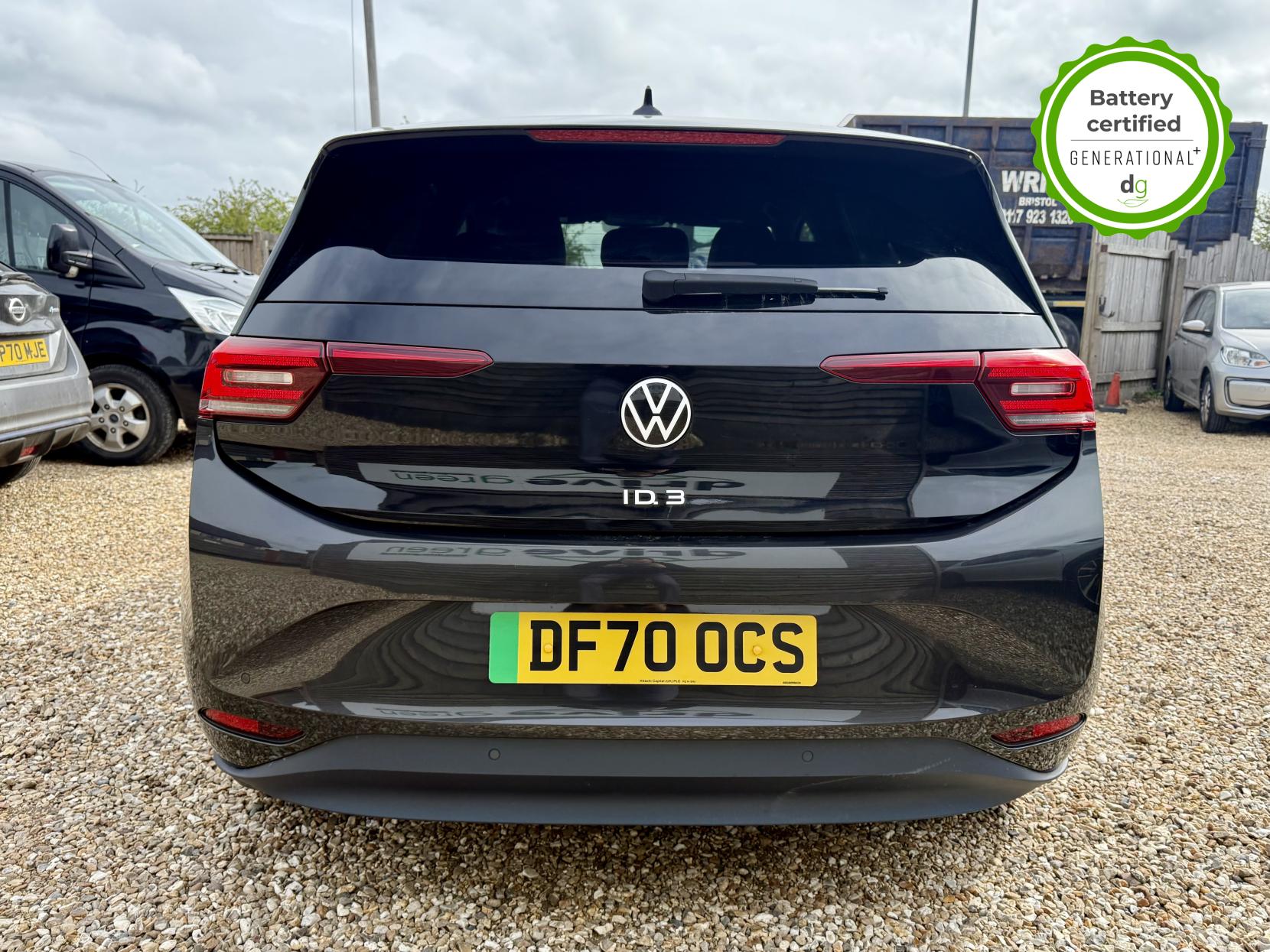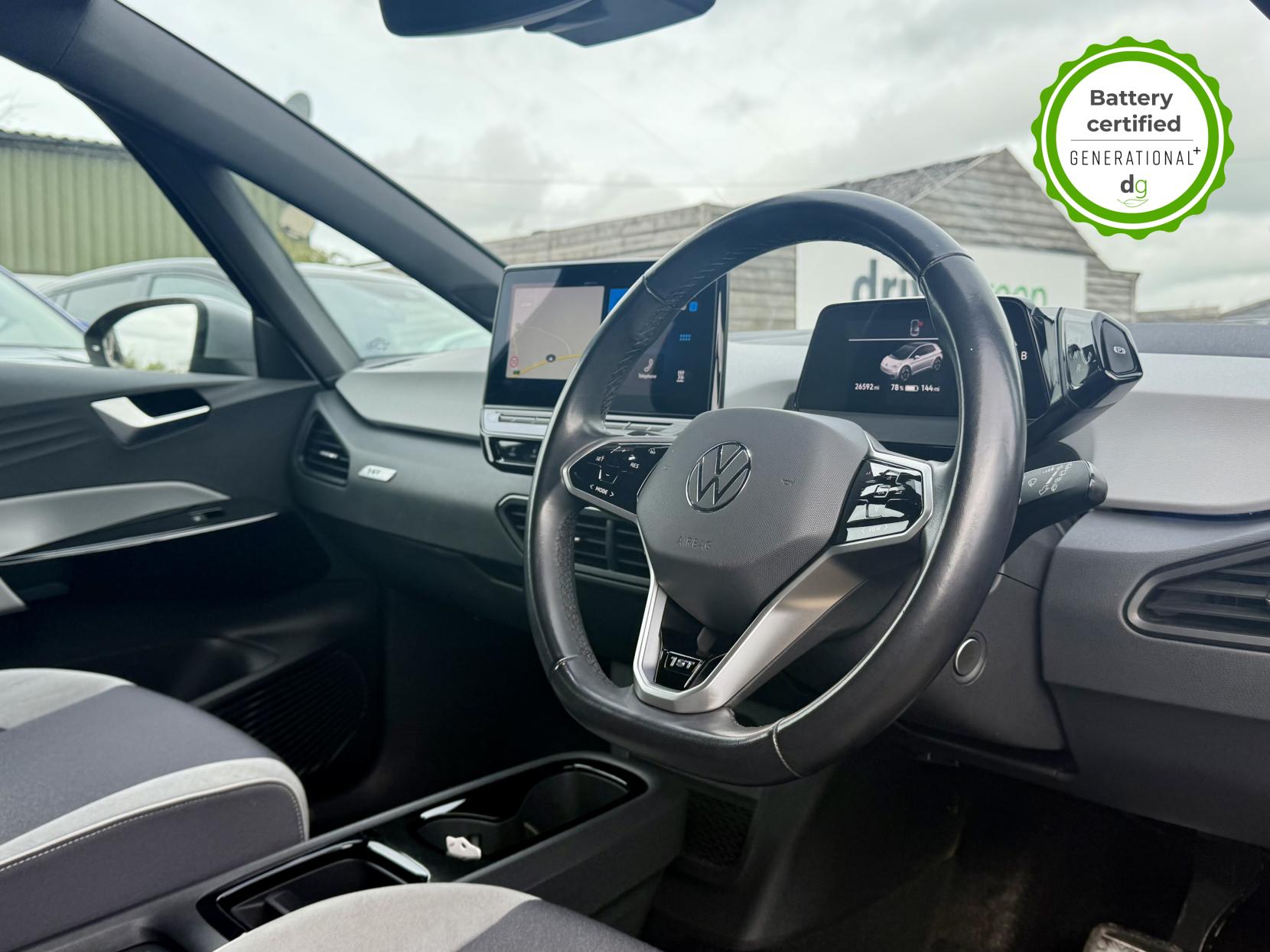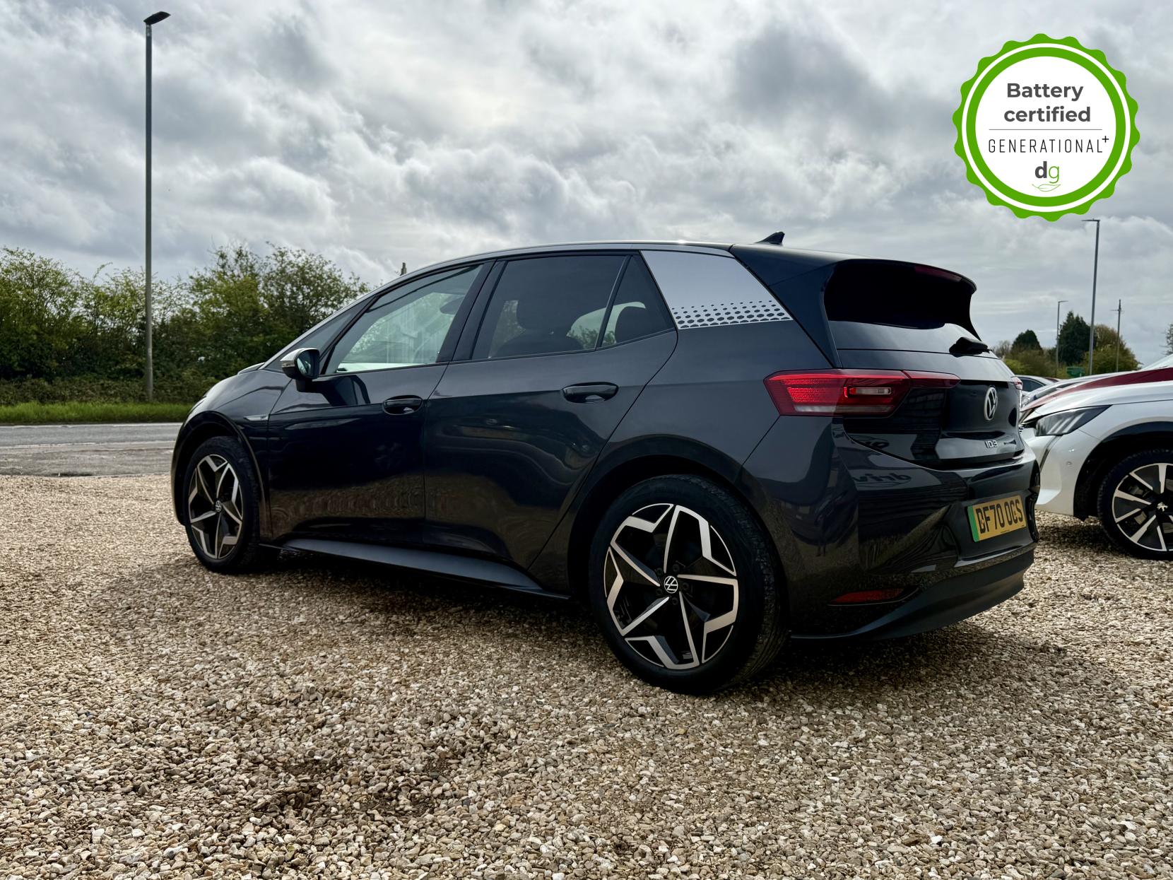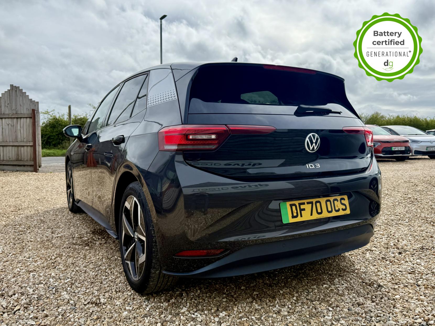 This particular iD3 is in excellent condition and fully prepared to our high standard, has 1 previous owner, a FSH of 2 servcies, and it is June 2027 until its next service and the end of December when its MOT is due. This high spec ID3 1st edition comes with diamond cut alloy wheels, 10” infotainment system with SAT Nav, the comfort pack and heated seats. Lots of safety equipment comes as standard including, adaptive cruise control incl. front assist, front and rear sensors, and forward collision warning. Led exterior lighting is included and so is wireless Apple CarPlay and Android Auto. Ambient lighting, silver styling pack, illuminated smartphone storage compartment, and microfleece upholstery are the limited-edition upgrades that come with this car. As with all ID 3s a clear and well-designed digital dash is standard, and it has an excellent easy to use infotainment system. The ID3 is has a real-world range of around 250 miles from its 58kWh battery. If you are looking for a stylish, practical and high-tech iD3 in great condition this could be the perfect iD3 for you. Unlike Car Supermarkets we have no hidden admin fees, there is no pressure selling, and we offer low finance rates. We also perform battery health checks on all our vehicles, so you can have the comfort of knowing the battery state of health of the EV you choose. Hopefully you will choose to buy your EV from Drive Green, as we are a multi award winning EV specialist and sustainable business, here to help you get the most from your switch to electric driving. Contact us to book an appointment to view and test drive this car, or to find out more about switching to electric driving, and to discuss purchase options, including buying on finance, and our remote buying and delivery service. We are also able to supply your home charge point also, making the switch to electric driving super easy for you. Car supplied with 1 key. Drive Green is a true EV specialist and the UK’s biggest electric car only dealership, since 2017. FORECOURT VISITS AND TEST DRIVES BY APPOINTMENT ONLY.