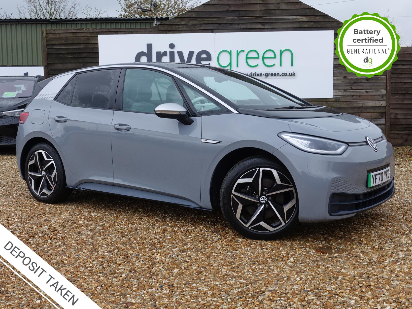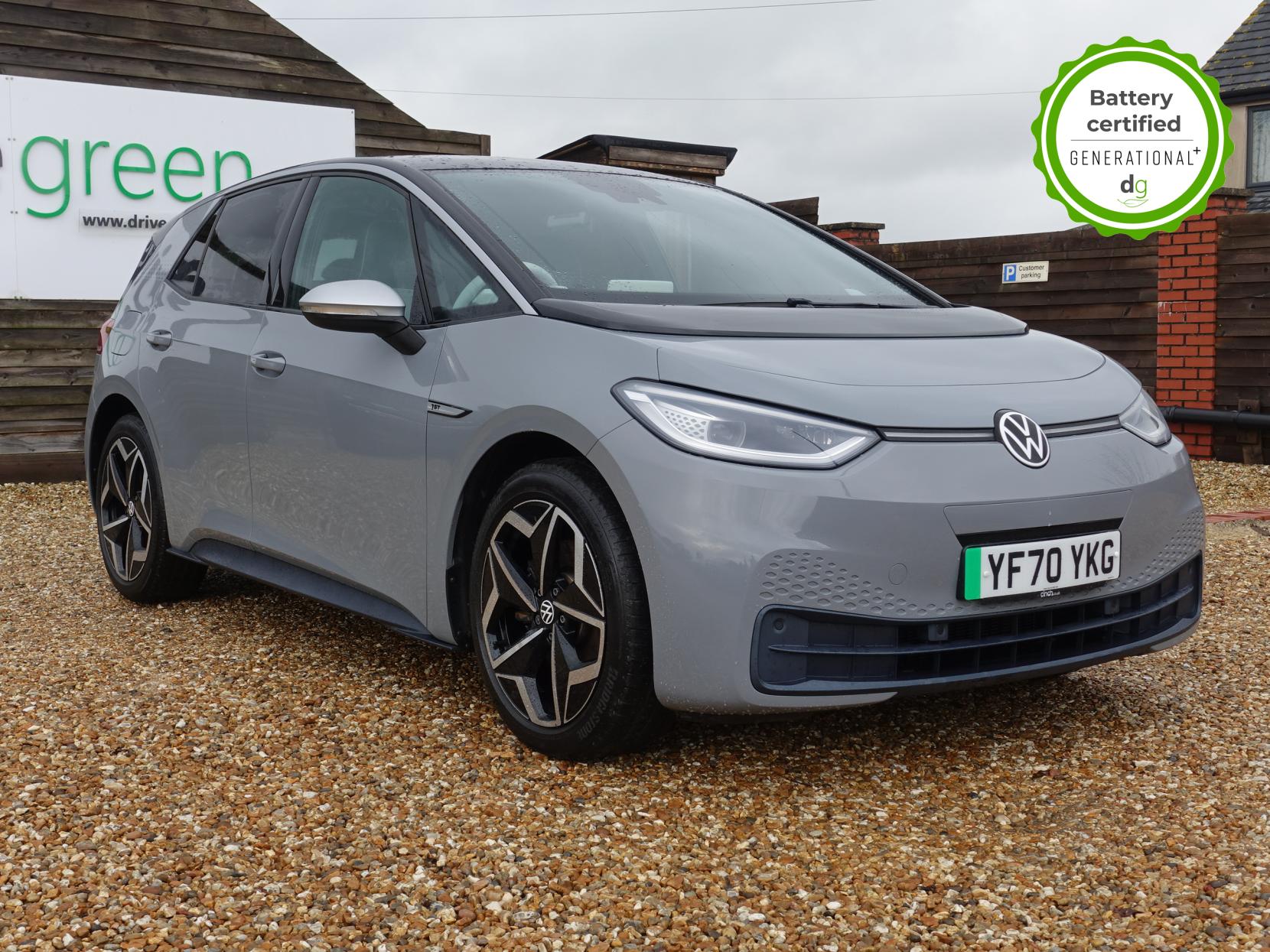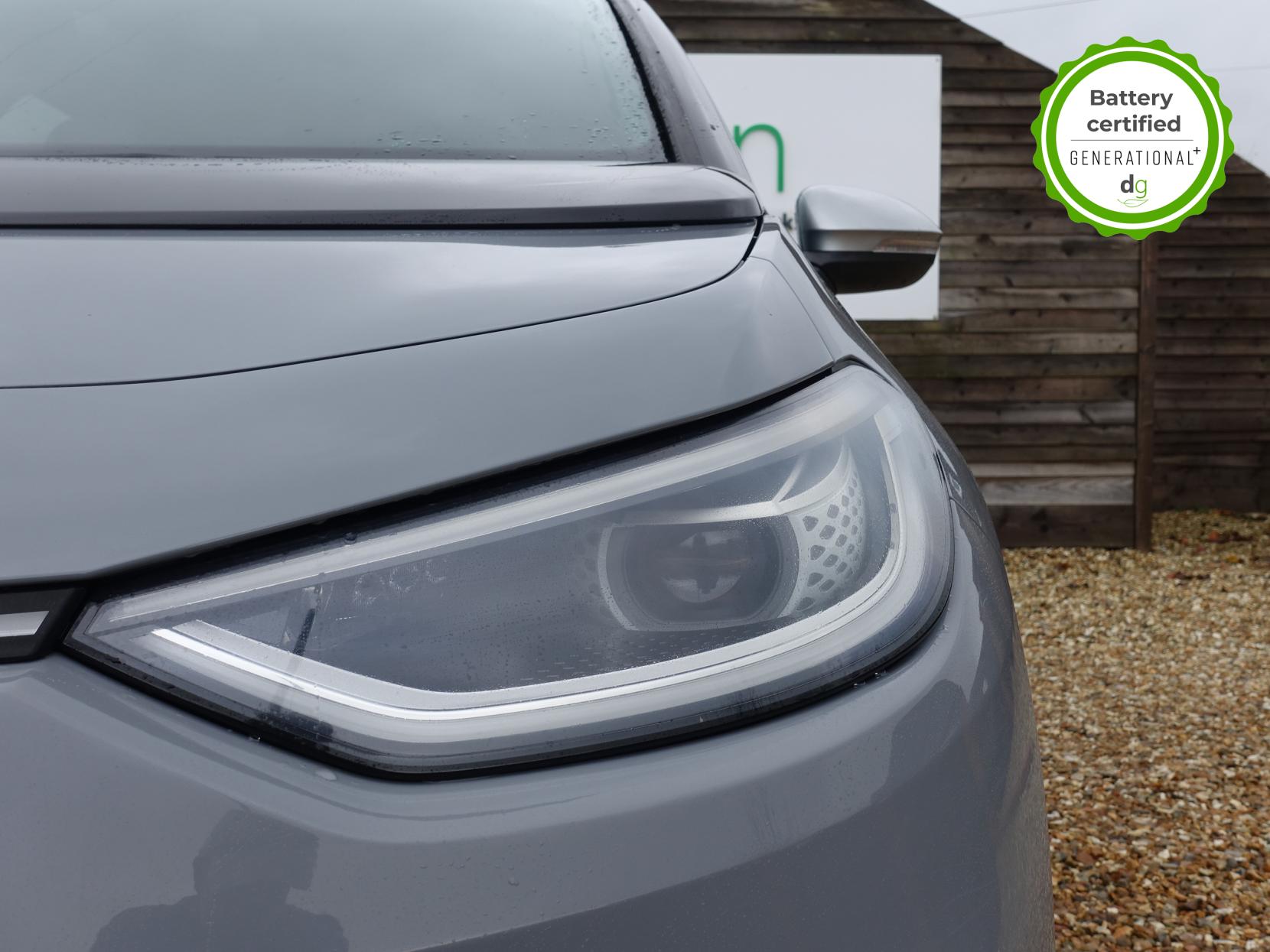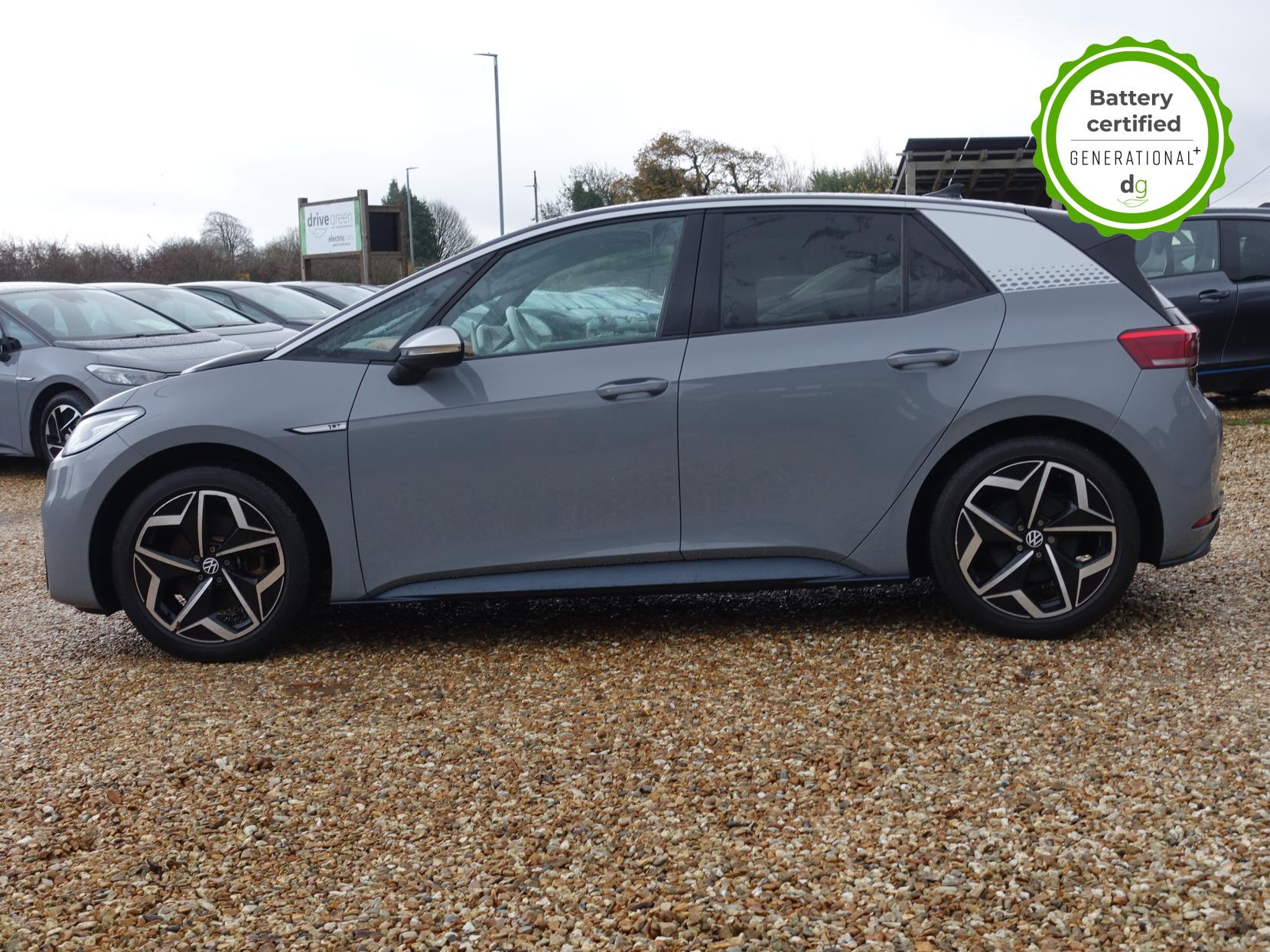 This particular iD3 is in excellent condition and fully prepared to our high standard, and it will be November 2027 until its next service and November 2026 when its MOT is due. This high spec ID3 1st edition comes with diamond cut alloy wheels, 10” infotainment system with SAT Nav, the comfort pack and heated seats. Lots of safety equipment comes as standard including, adaptive cruise control incl. front assist, front and rear sensors, and forward collision warning. Led exterior lighting is included and so is wireless Apple CarPlay and Android Auto. Ambient lighting, silver styling pack, illuminated smartphone storage compartment, and microfleece upholstery are the limited-edition upgrades that come with this car. As with all ID 3s a clear and well-designed digital dash is standard, and it has an excellent easy to use infotainment system. The ID3 is has a real-world range of around 250 miles from its 58kWh battery. If you are looking for a stylish, practical and high-tech iD3 in great condition this could be the perfect iD3 for you. Unlike Car Supermarkets we have no hidden admin fees, there is no pressure selling, and we offer low finance rates. We also perform battery health checks on all our vehicles, so you can have the comfort of knowing the battery state of health of the EV you choose. Hopefully you will choose to buy your EV from Drive Green, as we are a multi award winning EV specialist and sustainable business, here to help you get the most from your switch to electric driving. Contact us to book an appointment to view and test drive this car, or to find out more about switching to electric driving, and to discuss purchase options, including buying on finance, and our remote buying and delivery service. We are also able to supply your home charge point also, making the switch to electric driving super easy for you. Drive Green is a true EV specialist and the UK’s biggest electric car only dealership, since 2017. Car supplied with 1 key. FORECOURT VISITS AND TEST DRIVES BY APPOINTMENT ONLY.