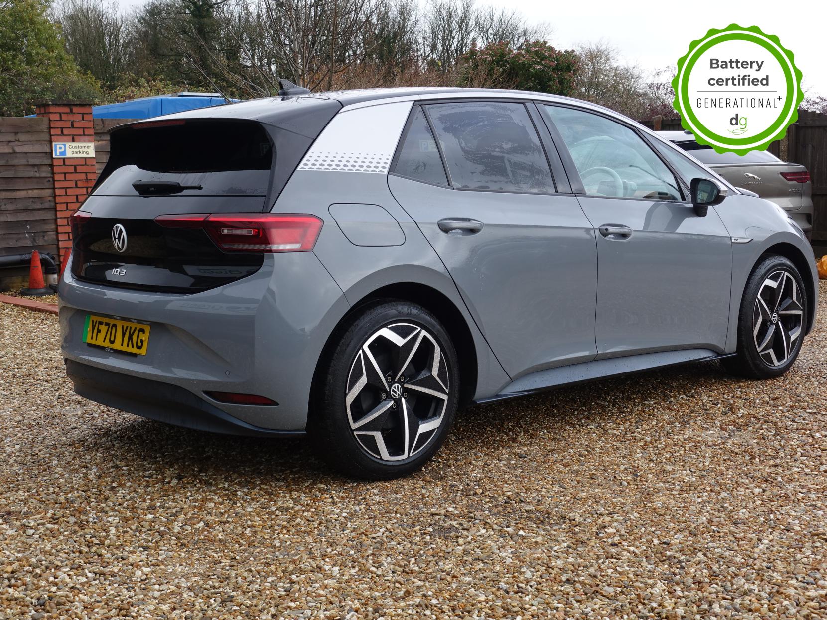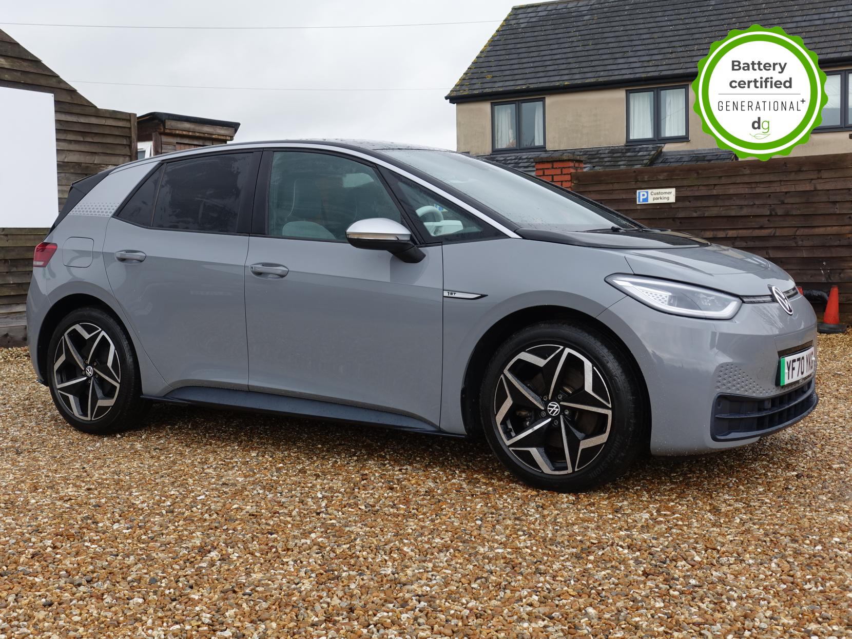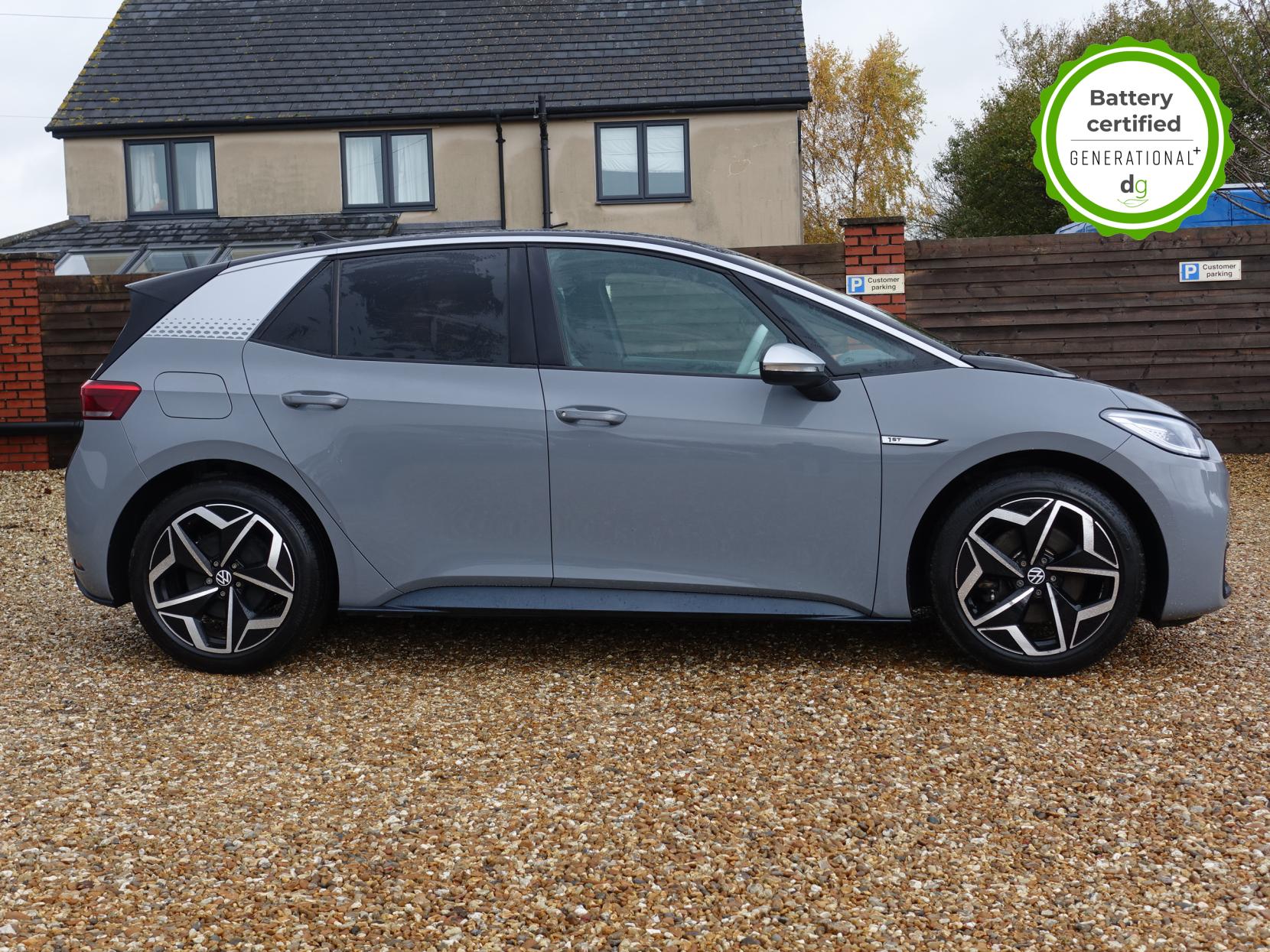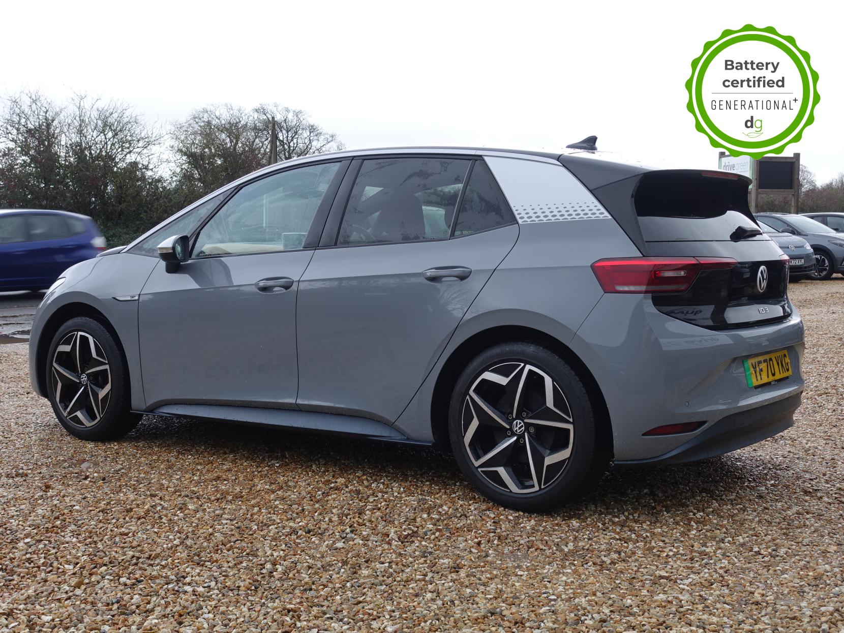 This particular iD3 is in excellent condition and fully prepared to our high standard, and it will be November 2027 until its next service and November 2026 when its MOT is due. This high spec ID3 1st edition comes with diamond cut alloy wheels, 10” infotainment system with SAT Nav, the comfort pack and heated seats. Lots of safety equipment comes as standard including, adaptive cruise control incl. front assist, front and rear sensors, and forward collision warning. Led exterior lighting is included and so is wireless Apple CarPlay and Android Auto. Ambient lighting, silver styling pack, illuminated smartphone storage compartment, and microfleece upholstery are the limited-edition upgrades that come with this car. As with all ID 3s a clear and well-designed digital dash is standard, and it has an excellent easy to use infotainment system. The ID3 is has a real-world range of around 250 miles from its 58kWh battery. If you are looking for a stylish, practical and high-tech iD3 in great condition this could be the perfect iD3 for you. Unlike Car Supermarkets we have no hidden admin fees, there is no pressure selling, and we offer low finance rates. We also perform battery health checks on all our vehicles, so you can have the comfort of knowing the battery state of health of the EV you choose. Hopefully you will choose to buy your EV from Drive Green, as we are a multi award winning EV specialist and sustainable business, here to help you get the most from your switch to electric driving. Contact us to book an appointment to view and test drive this car, or to find out more about switching to electric driving, and to discuss purchase options, including buying on finance, and our remote buying and delivery service. We are also able to supply your home charge point also, making the switch to electric driving super easy for you. Drive Green is a true EV specialist and the UK’s biggest electric car only dealership, since 2017. Car supplied with 1 key. FORECOURT VISITS AND TEST DRIVES BY APPOINTMENT ONLY.
