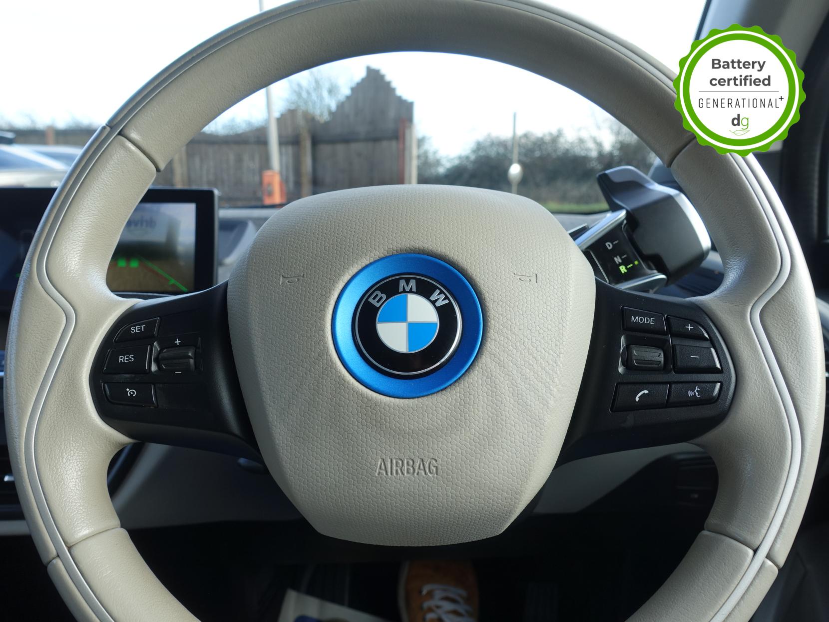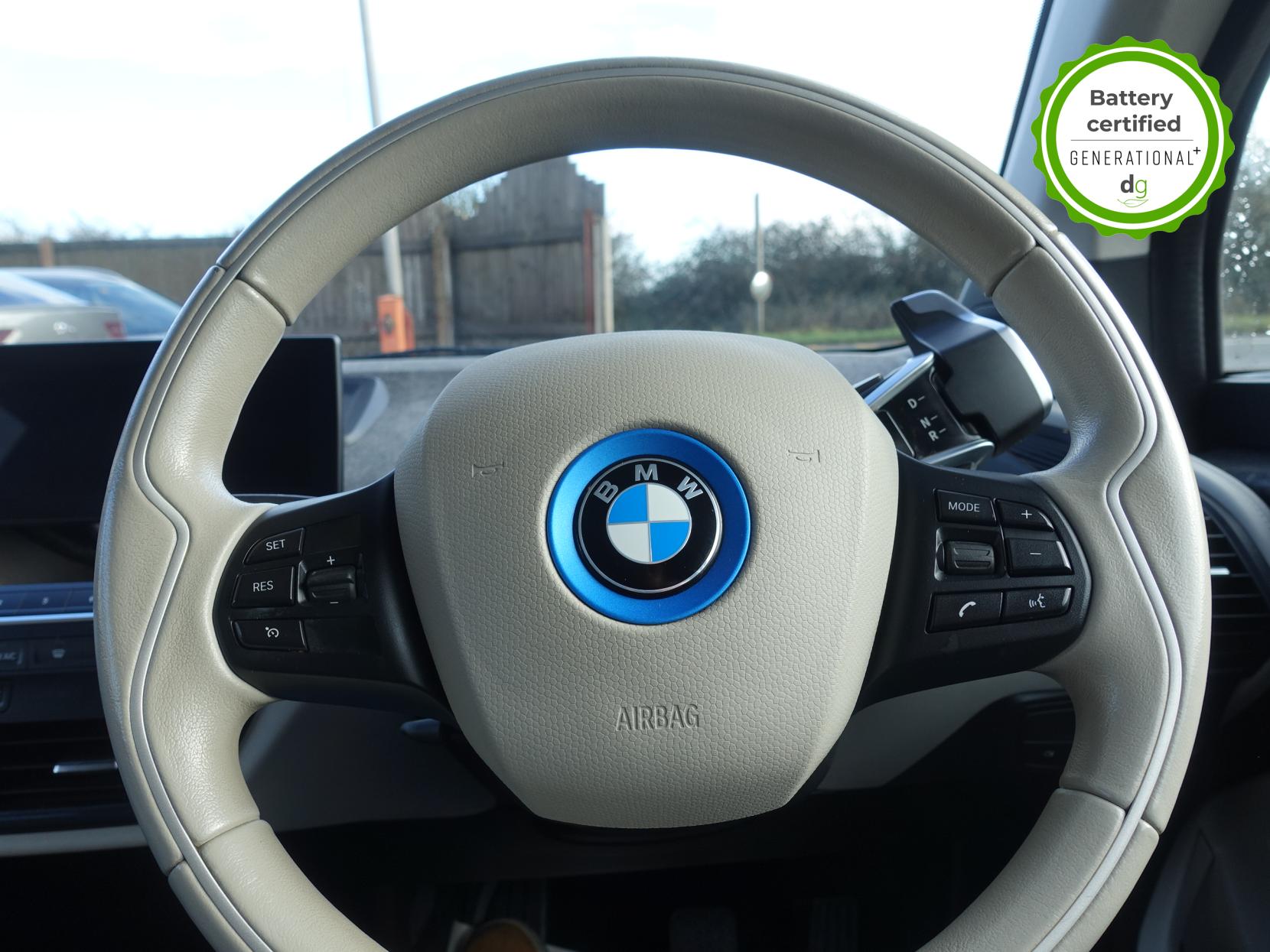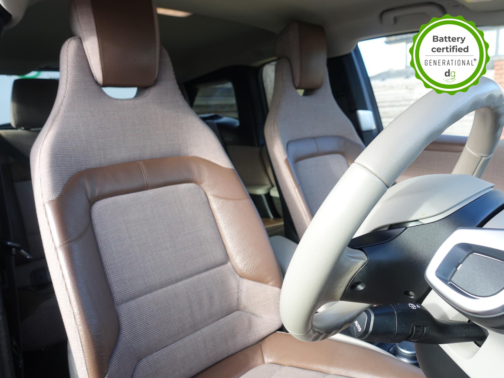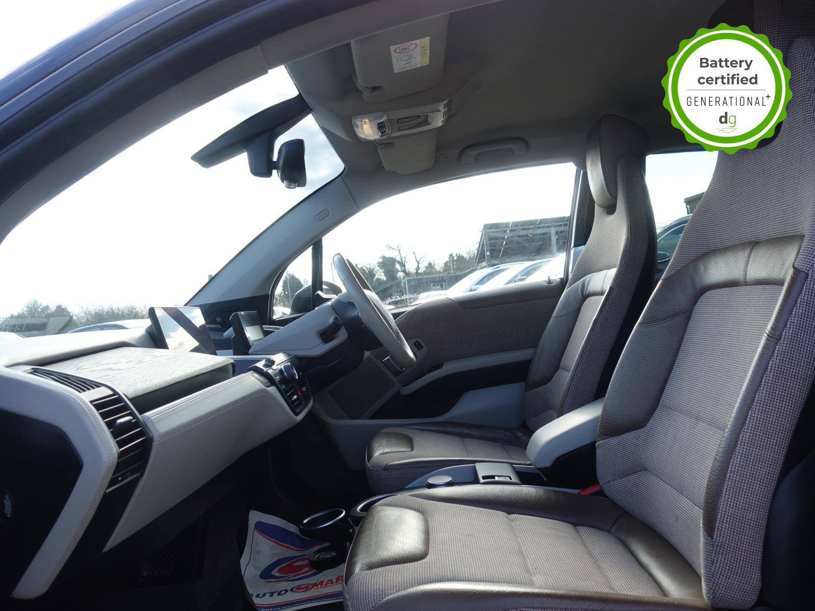 OVER £4K OF OPTIONAL EXTRAS! This particular car is in excellent condition and fully prepared to our high standard, has 2 keys, 1 previous owner, a full main dealer service history, and it is May 2027 until its next service and the end of September 2026 when its MOT is due. It also has an excellent and well above average 97% battery state of health. This car includes the following additional UPGRADES: LODGE HALF LEATHER INTERIOR, HARMON KARDON SOUND SYSTEM, REVERSING CAMERA, FRONT AND REAR SENSORS, ONLINE ENTERTAINMENT, SUN PROTECTION GLASS. The i3 S is the i3 ‘sport’ and offers all the quality and driving thrills of an i3, but with increased power, better handling and a more stylish exterior. The 120aH model has 150 to 170 mile real world range approx. depending on driving style & time of year. It has an in-built sat nav, media centre, and DAB, 4 seats, 4 doors (rear doors pillar-less coach doors). A great load space with seats folded flat, and is an extremely well-made car, highy efficient and with a supercar like carbon fibre shell, built with attention to detail and great green credentials. It has CSS DC Rapid charging (that will give up to 100 miles of range in about 30 minutes charge time). If you are looking for an amazing drive, and quality and style of a BMW i3S, and with a great driving range and good spec, this could be the ideal car for you. Unlike Car Supermarkets we have no hidden admin fees, there is no pressure selling, and we offer low finance rates. We also perform battery health checks on all our vehicles, so you can have the comfort of knowing the battery state of health of the EV you choose. Hopefully you will choose to buy your EV from Drive Green, as we are a multi award winning EV specialist and sustainable business, here to help you get the most from your switch to electric driving. Contact us to book an appointment to view and test drive this car, or to find out more about switching to electric driving, and to discuss purchase options, including buying on finance, and our remote buying and delivery service. We are also able to supply your home charge point also, making the switch to electric driving super easy for you. Drive Green is a true EV specialist and the UK’s biggest electric car only dealership, since 2017. FORECOURT VISITS AND TEST DRIVES BY APPOINTMENT ONLY.