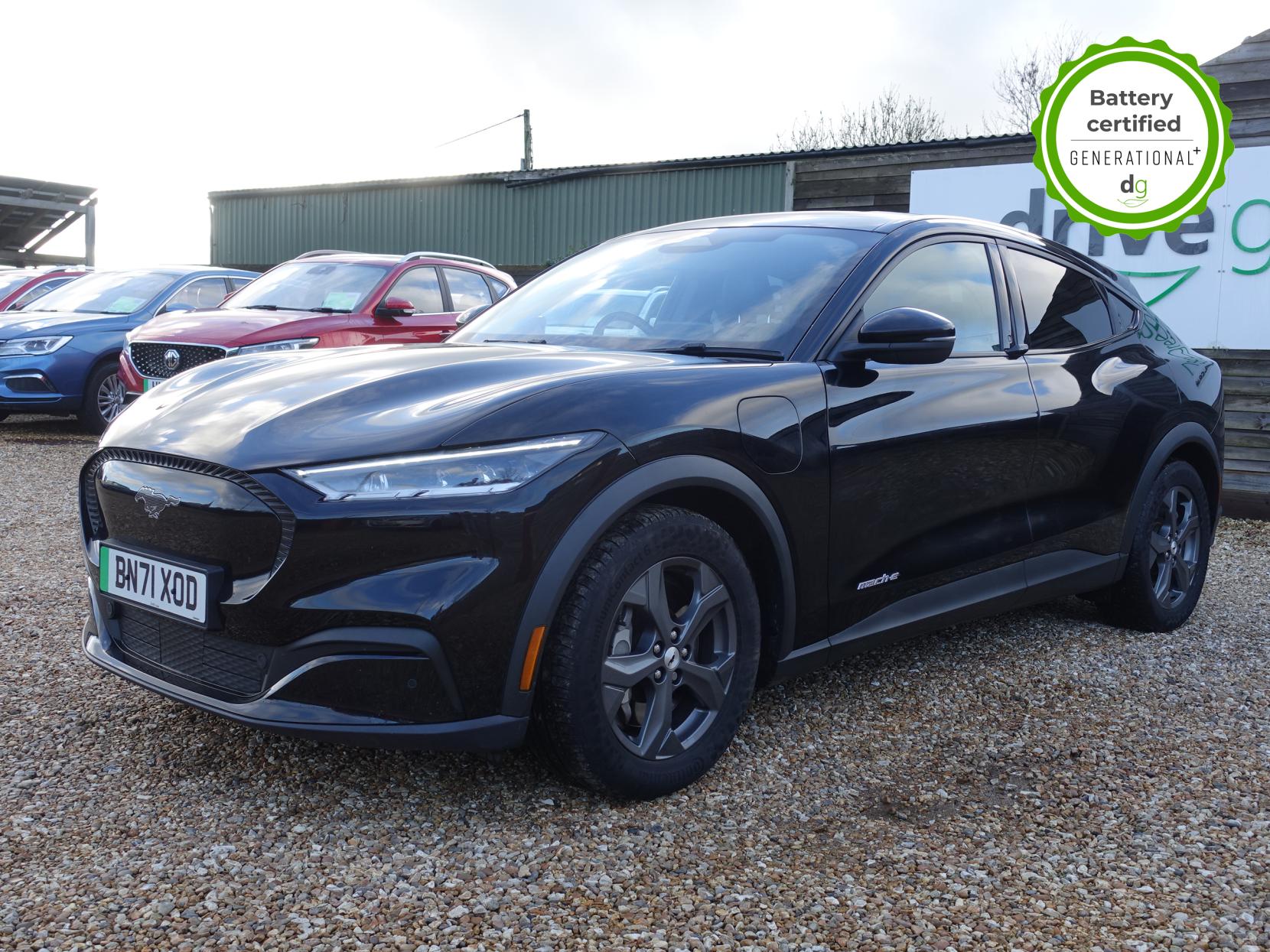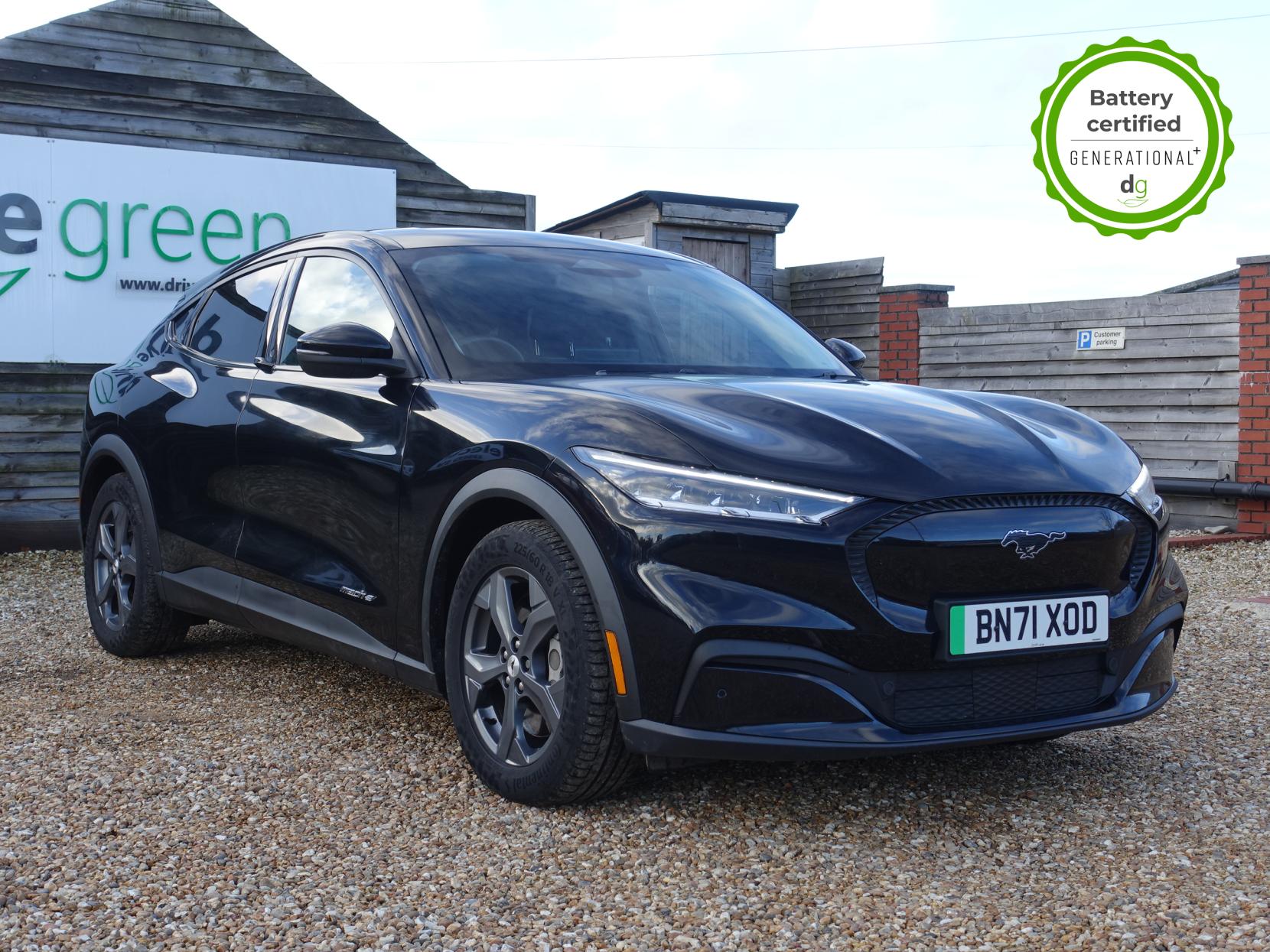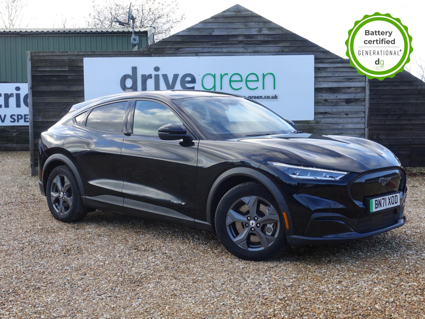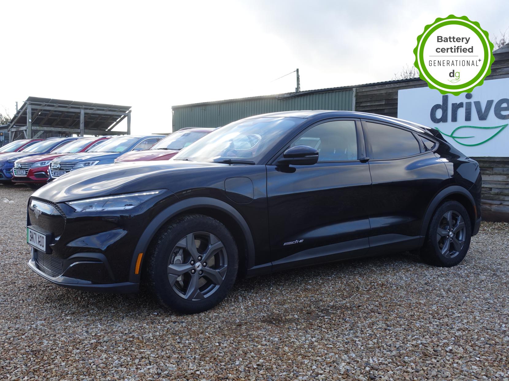 This nearly new Mustang is in excellent condition and fully prepared to our high standard, has 2 keys, 1 previous owner, and it will be December 2026 until its next service, and September 2026 when its next MOT is due. The Mustang Mach-E a stunning SUV with the style and road presence you would expect from a Mustang. It offers all the thrill of being a Mustang, but with an effortless and punchy electric drive, with an impressive motor power of 265 bhp and torque of 317 lbs/ft, it delivers the performance and feel you expect from a Mustang. The 70 kWh battery capacity gives a range of around 250 miles, depending on the time of year and your driving style, making it a very capable long-range EV. The battery can be fully charged at the right charging station, in just 40 minutes. It has plenty of premium spec, a great infotainment system and a quality build. It has LED lights, memory seats, heated front and rear seats, heated steering wheel, mustang-shaped puddle lights, wireless charging, over-the-air updates, adaptive cruise control, lane assist, motorised boot, and a 360o camera system and parking sensors. Unlike Car Supermarkets we have no hidden admin fees, there is no pressure selling, and we offer low finance rates. We also perform battery health checks on all our vehicles, so you can have the comfort of knowing the battery state of health of the EV you choose. Hopefully you will choose to buy your EV from Drive Green, as we are a multi award winning EV specialist and sustainable business, here to help you get the most from your switch to electric driving. Contact us to book an appointment to view and test drive this car, or to find out more about switching to electric driving, and to discuss purchase options, including buying on finance, and our remote buying and delivery service. We are also able to supply your home charge point also, making the switch to electric driving super easy for you. Drive Green is a true EV specialist and the UK’s biggest electric car only dealership, since 2017. FORECOURT VISITS AND TEST DRIVES BY APPOINTMENT ONLY.