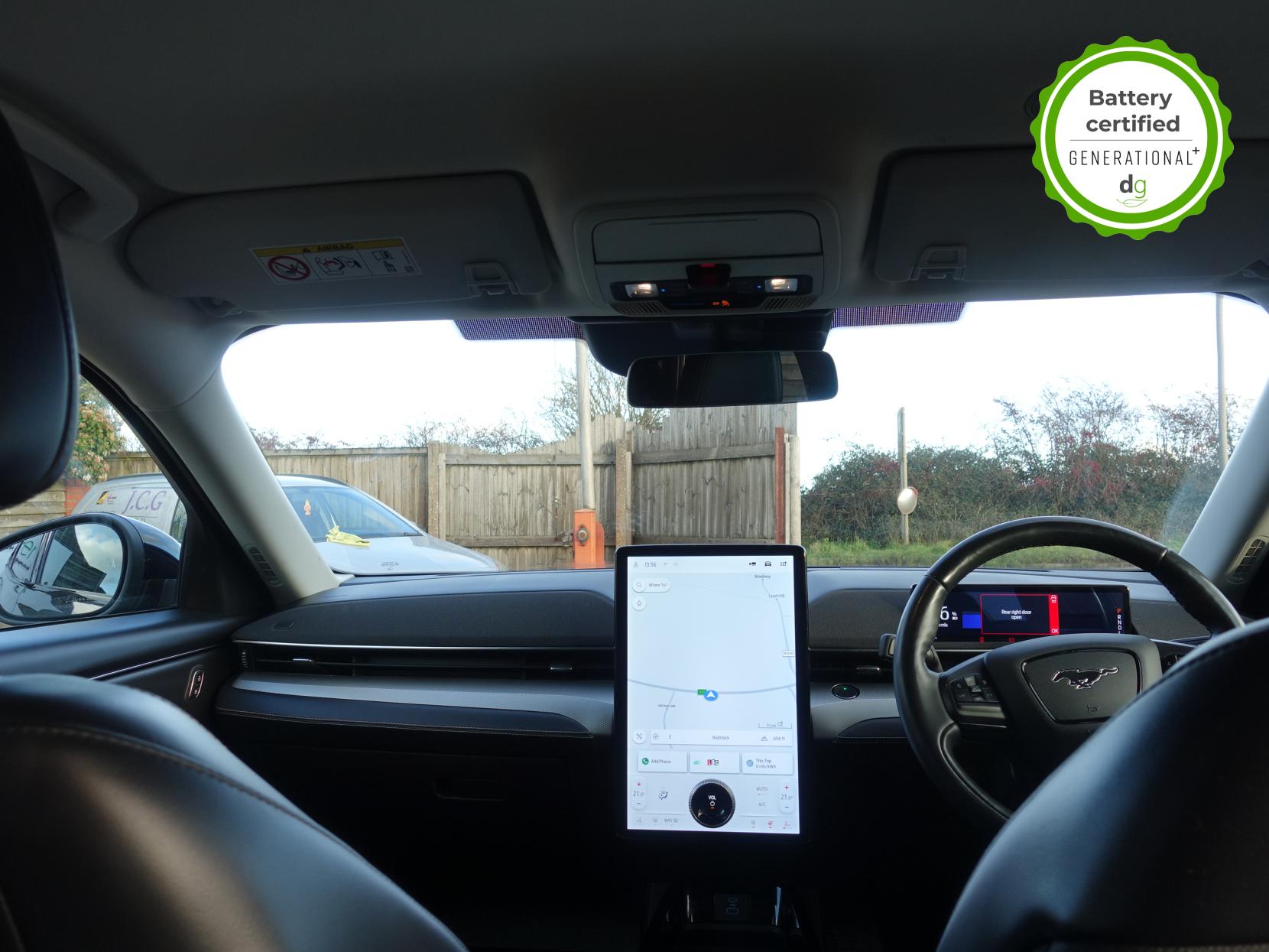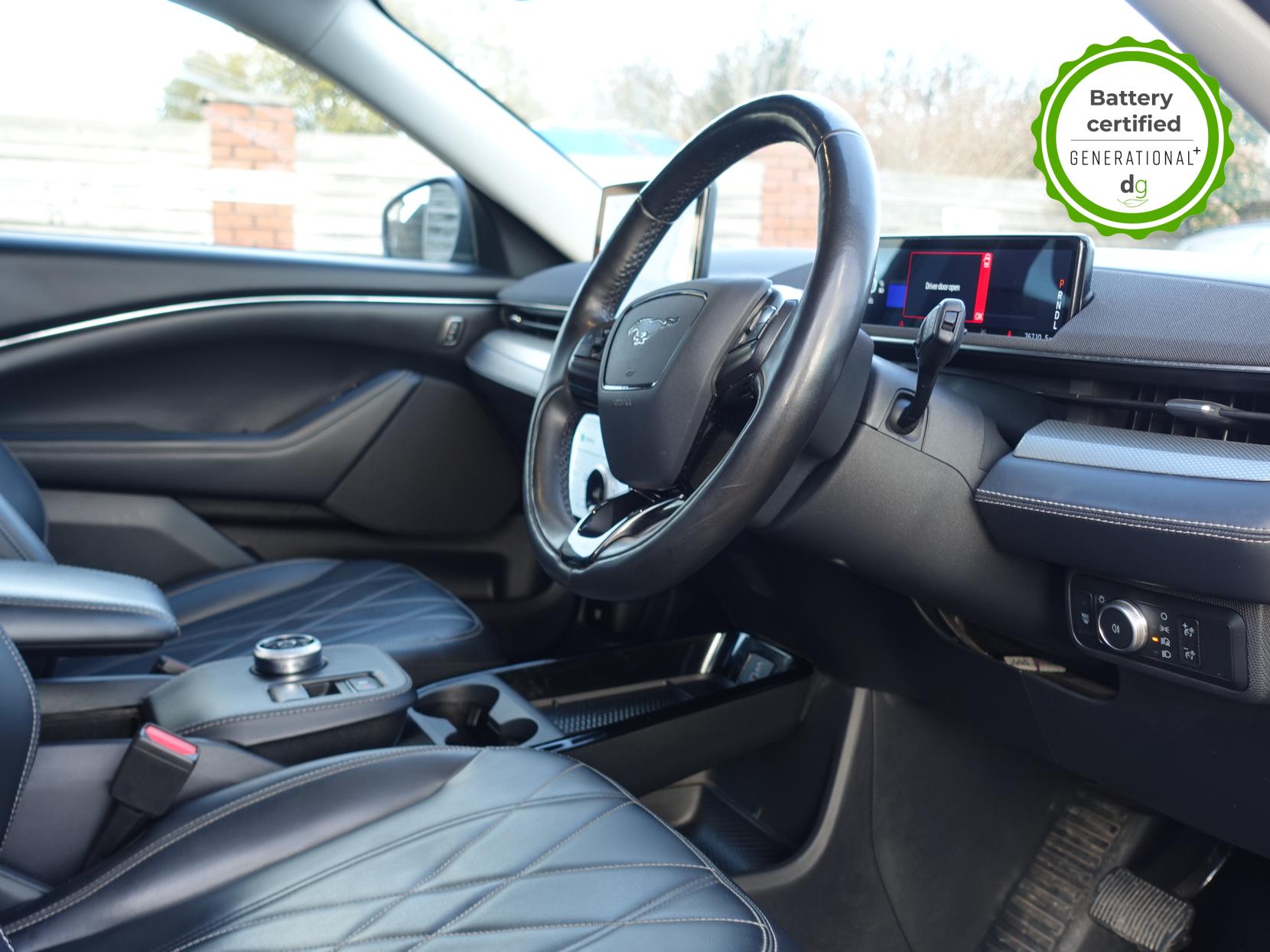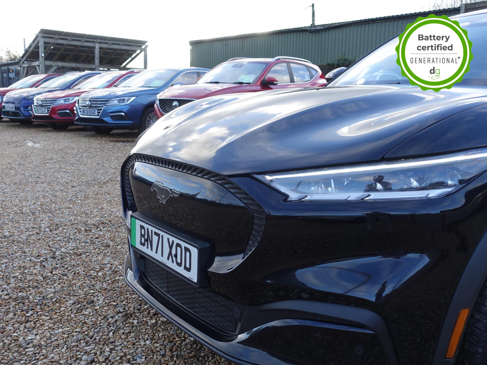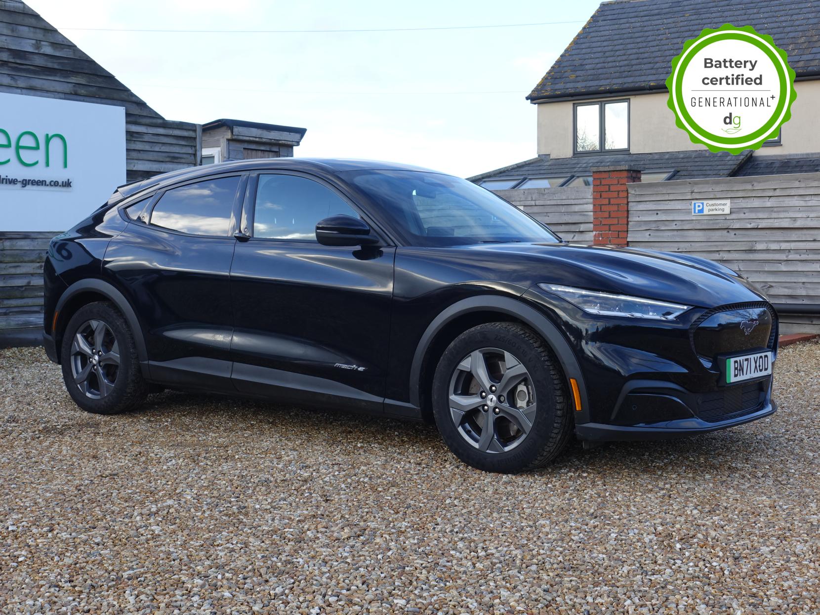This nearly new Mustang is in excellent condition and fully prepared to our high standard, has 2 keys, 1 previous owner, and it will be December 2026 until its next service, and September 2026 when its next MOT is due. The Mustang Mach-E a stunning SUV with the style and road presence you would expect from a Mustang. It offers all the thrill of being a Mustang, but with an effortless and punchy electric drive, with an impressive motor power of 265 bhp and torque of 317 lbs/ft, it delivers the performance and feel you expect from a Mustang. The 70 kWh battery capacity gives a range of around 250 miles, depending on the time of year and your driving style, making it a very capable long-range EV. The battery can be fully charged at the right charging station, in just 40 minutes. It has plenty of premium spec, a great infotainment system and a quality build. It has LED lights, memory seats, heated front and rear seats, heated steering wheel, mustang-shaped puddle lights, wireless charging, over-the-air updates, adaptive cruise control, lane assist, motorised boot, and a 360o camera system and parking sensors. Unlike Car Supermarkets we have no hidden admin fees, there is no pressure selling, and we offer low finance rates. We also perform battery health checks on all our vehicles, so you can have the comfort of knowing the battery state of health of the EV you choose. Hopefully you will choose to buy your EV from Drive Green, as we are a multi award winning EV specialist and sustainable business, here to help you get the most from your switch to electric driving. Contact us to book an appointment to view and test drive this car, or to find out more about switching to electric driving, and to discuss purchase options, including buying on finance, and our remote buying and delivery service. We are also able to supply your home charge point also, making the switch to electric driving super easy for you. Drive Green is a true EV specialist and the UK’s biggest electric car only dealership, since 2017. FORECOURT VISITS AND TEST DRIVES BY APPOINTMENT ONLY.