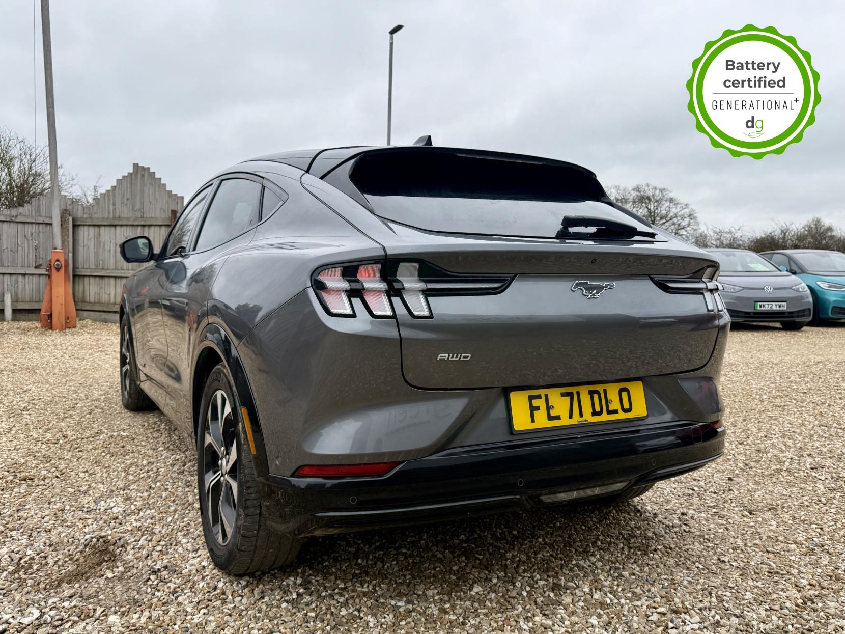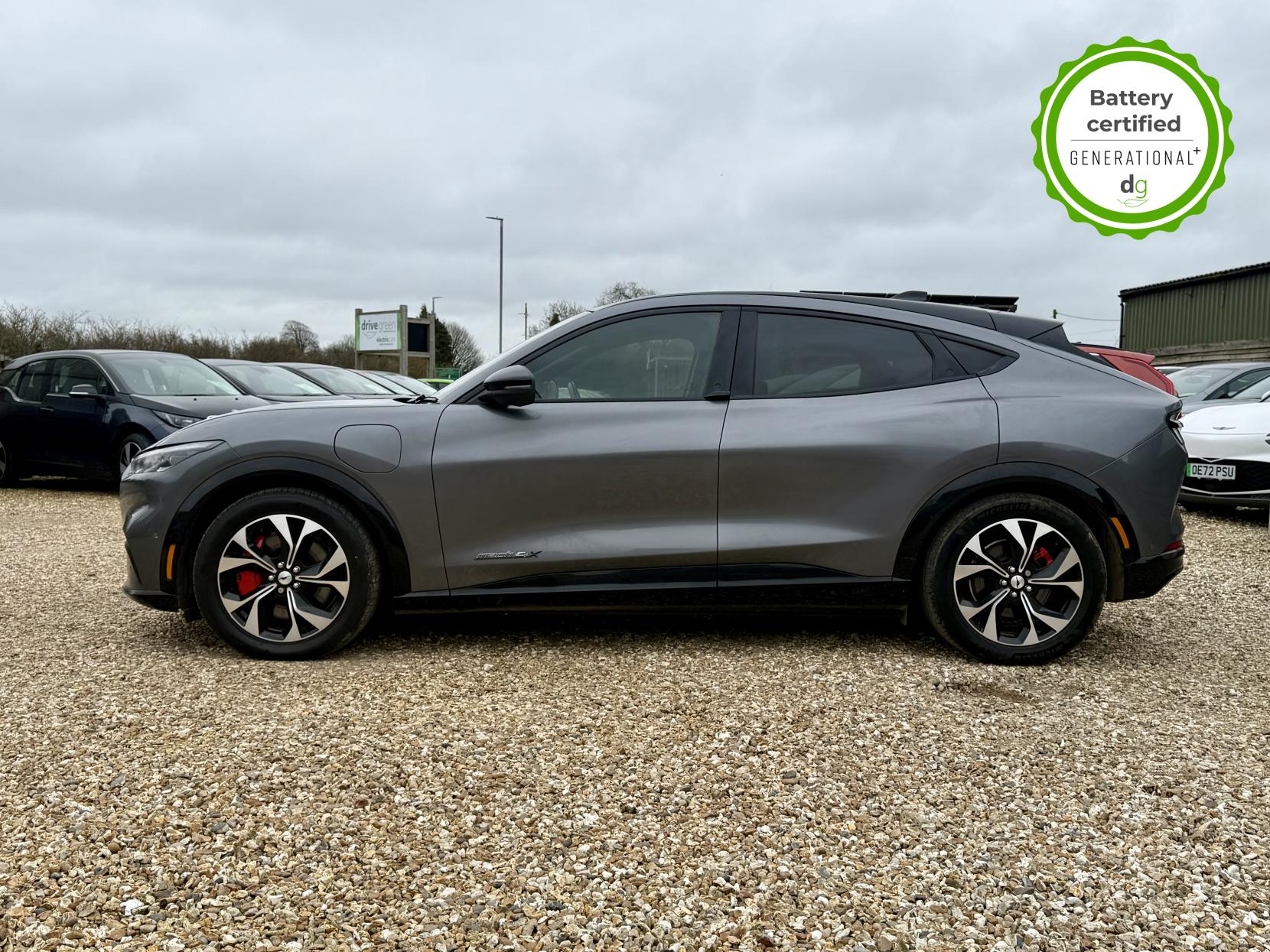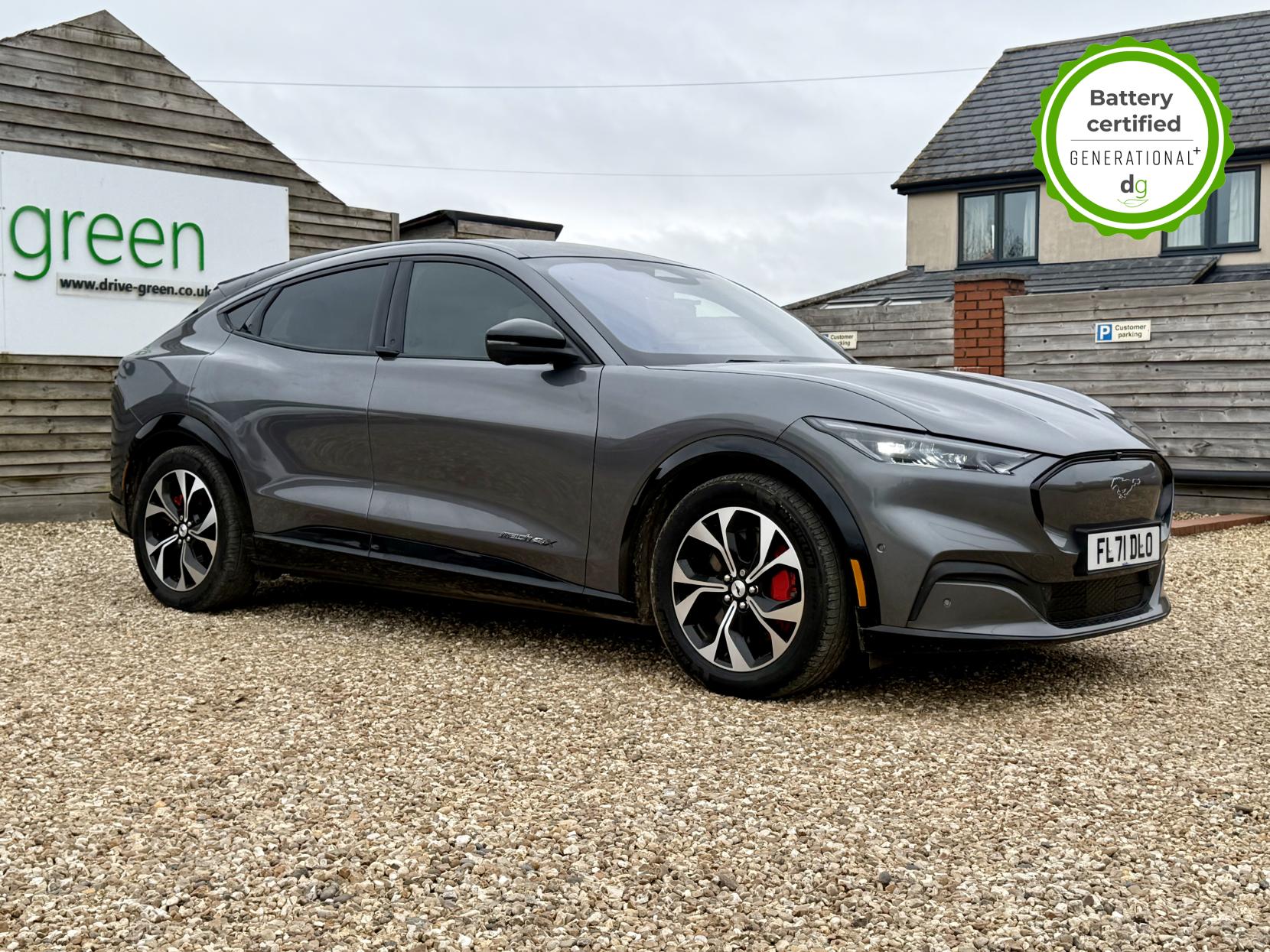 This stunning Mustang is in excellent condition and fully prepared to our high standard, has 2 keys, 1 previous owner, and it will be March 2027 until its next service or MOT is due. It is also showing an excellent 94% battery health. The Mustang Mach-E a stunning SUV with the style and road presence you would expect from a Mustang. It offers all the thrill of being a Mustang, but with an effortless and punchy electric drive, with an impressive motor power of 346 bhp and torque of 428 lbs/ft, this higher performance AWD model delivers the performance and feel you expect from a Mustang. The 88 kWh battery capacity gives an excellent long range of around 300 miles, depending on the time of year and your driving style, making it a very capable long-range EV. The battery can be fully charged at the right charging station, in just 45 minutes. It has plenty of premium spec, a great infotainment system and a quality build. It has LED lights, memory seats, heated front and rear seats, heated steering wheel, mustang-shaped puddle lights, wireless charging, over-the-air updates, adaptive cruise control, lane assist, motorised boot, and a 360o camera system and parking sensors. Unlike Car Supermarkets we have no hidden admin fees, there is no pressure selling, and we offer low finance rates. We also perform battery health checks on all our vehicles, so you can have the comfort of knowing the battery state of health of the EV you choose. Hopefully you will choose to buy your EV from Drive Green, as we are a multi award winning EV specialist and sustainable business, here to help you get the most from your switch to electric driving. Contact us to book an appointment to view and test drive this car, or to find out more about switching to electric driving, and to discuss purchase options, including buying on finance, and our remote buying and delivery service. We are also able to supply your home charge point also, making the switch to electric driving super easy for you. Drive Green is a true EV specialist and the UK’s biggest electric car only dealership, since 2017. FORECOURT VISITS AND TEST DRIVES BY APPOINTMENT ONLY.