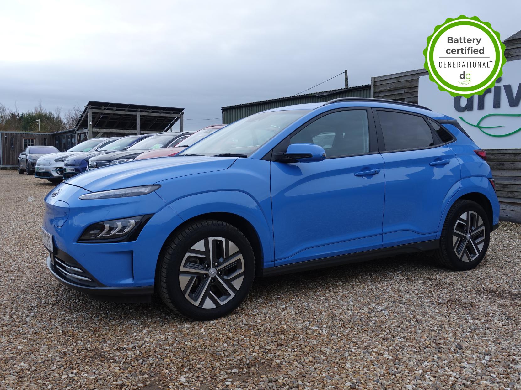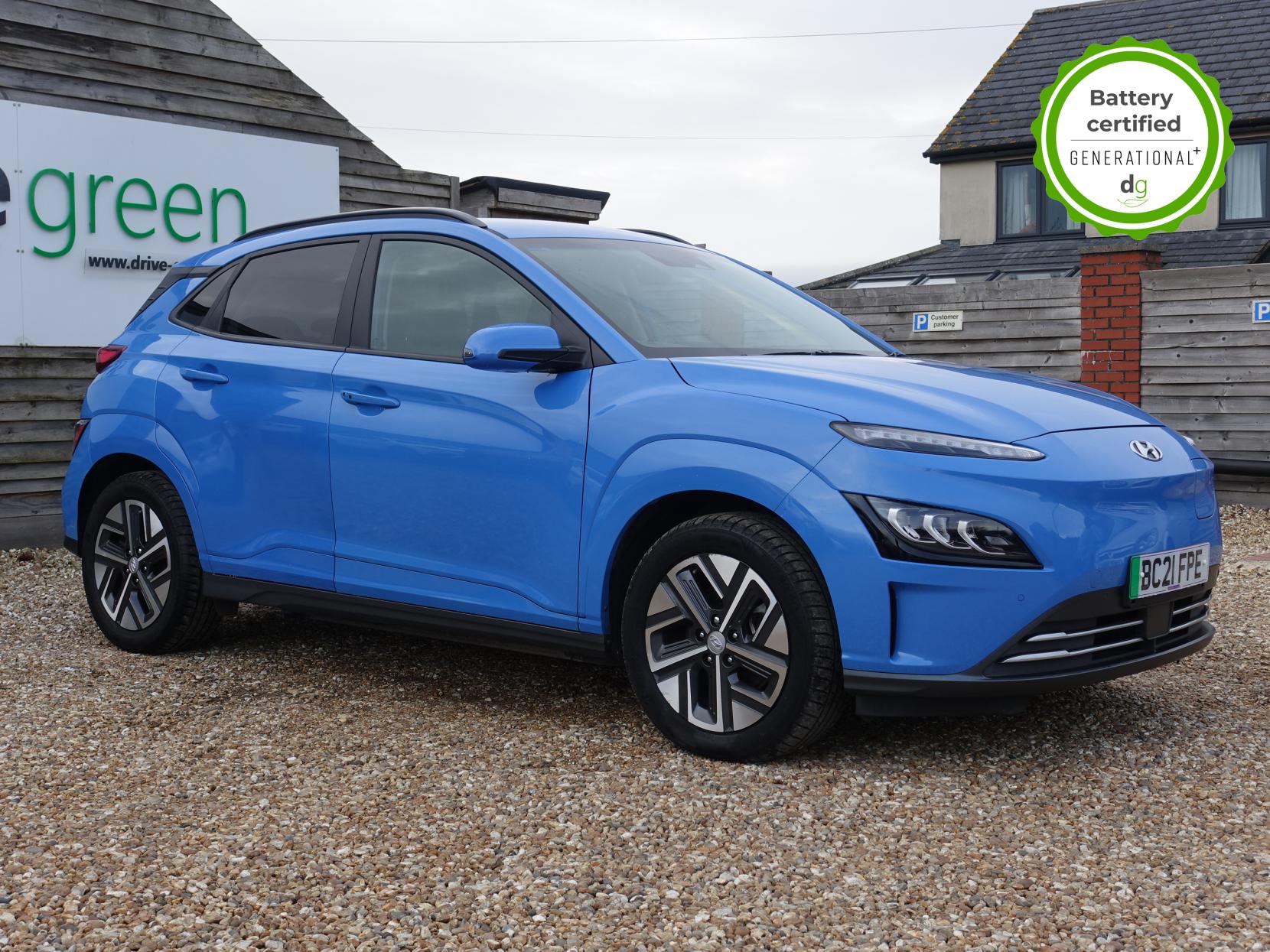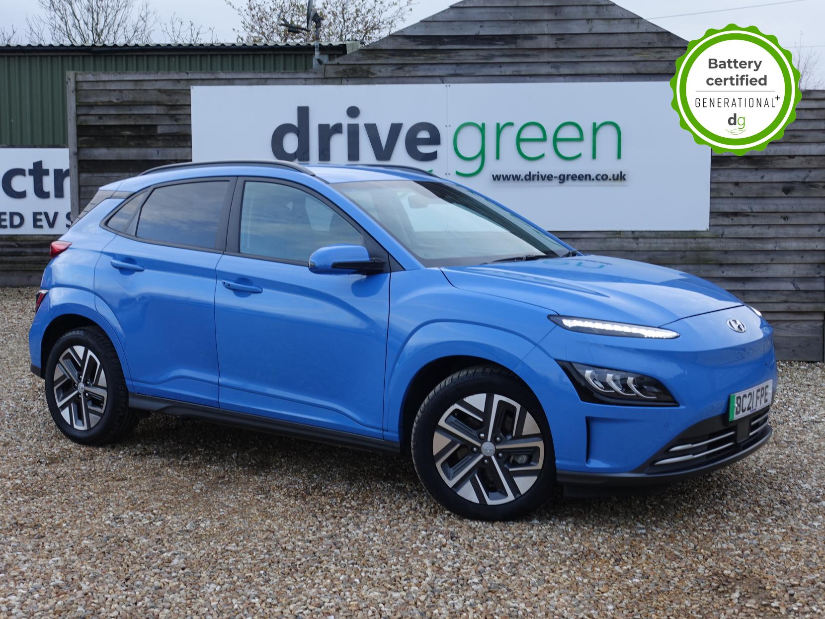 This particular Kona is in excellent condition and fully prepared to our high standard, has 2 keys, 1 previous owner, and it will be November 2026 until its next service and the very end of June when its MOT is due. The Hyundai Kona is a premium compact SUV, with an incredible 260-280 mile range, a practical boot, and roof rails. As well as its industry topping range, it is also capable of 75kW rapid charging. It has Apple Car Play and Android Auto, In-built sat nav and media centre with DAB, adjustable regen braking and a sport mode. If you are looking for a great value medium sized stylish EV, in great condition, this could be the perfect car for you. Unlike Car Supermarkets we have no hidden admin fees, there is no pressure selling, and we offer low finance rates. We also perform battery health checks on all our vehicles, so you can have the comfort of knowing the battery state of health of the EV you choose. Hopefully you will choose to buy your EV from Drive Green, as we are a multi award winning EV specialist and sustainable business, here to help you get the most from your switch to electric driving. Contact us to book an appointment to view and test drive this car, or to find out more about switching to electric driving, and to discuss purchase options, including buying on finance, and our remote buying and delivery service. We are also able to supply your home charge point also, making the switch to electric driving super easy for you. Drive Green is a true EV specialist and the UK’s biggest electric car only dealership, since 2017. FORECOURT VISITS AND TEST DRIVES BY APPOINTMENT ONLY.