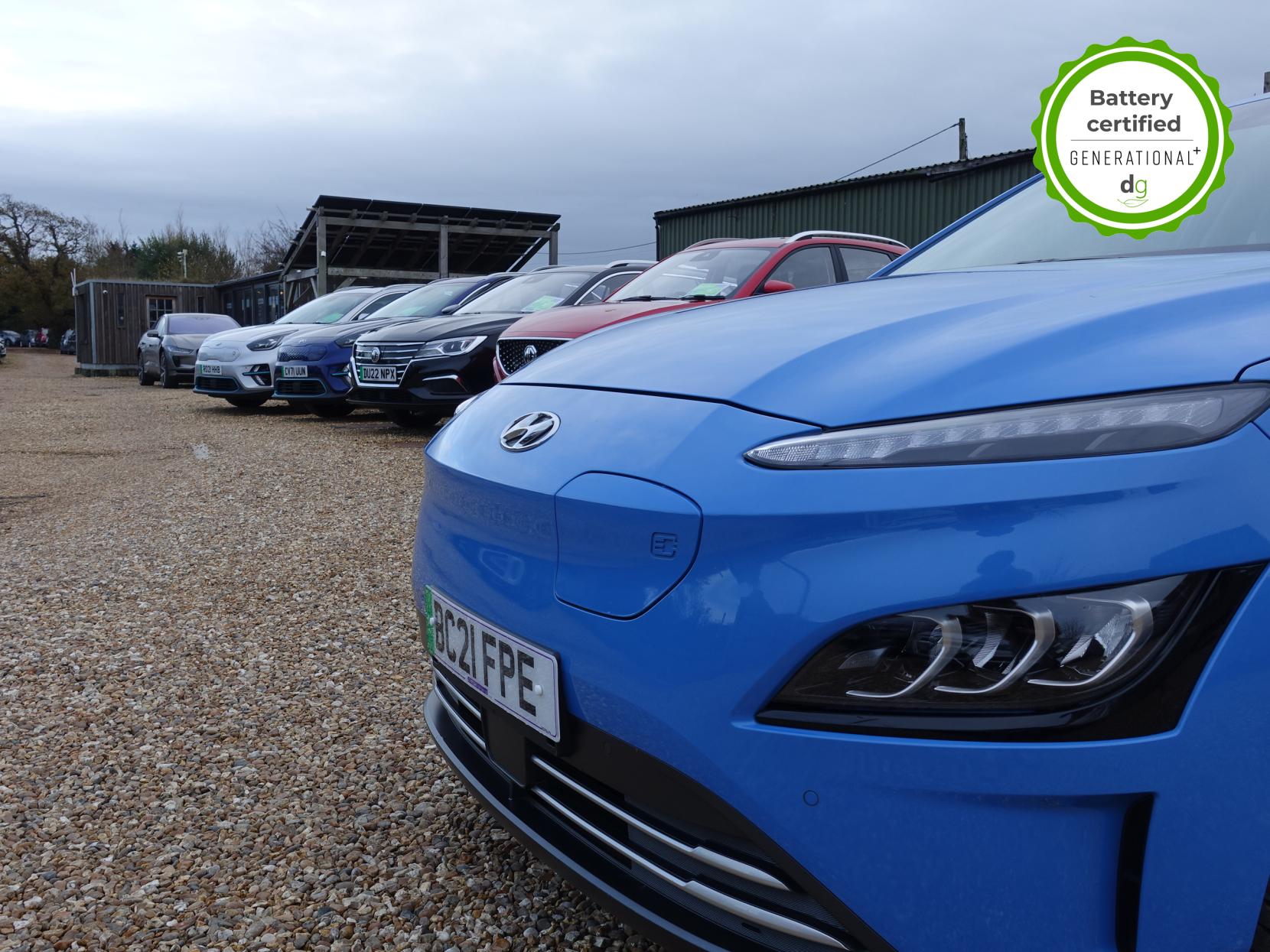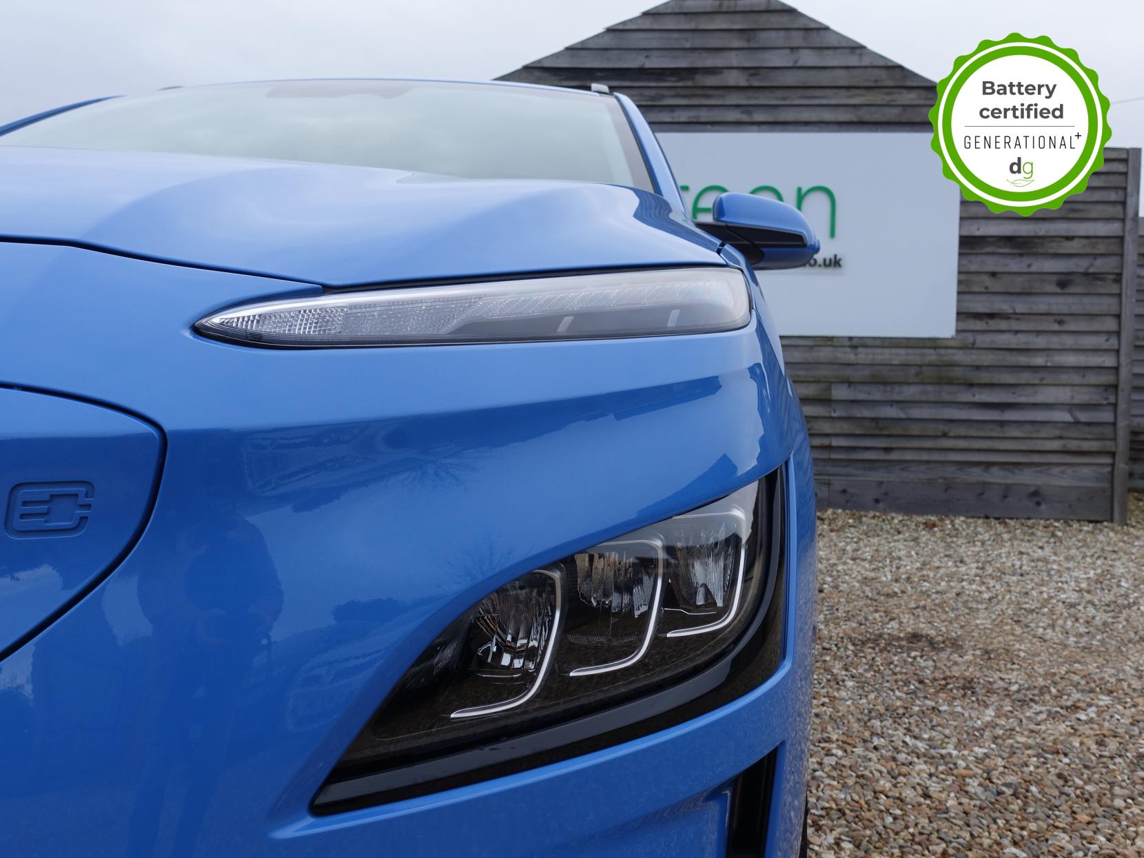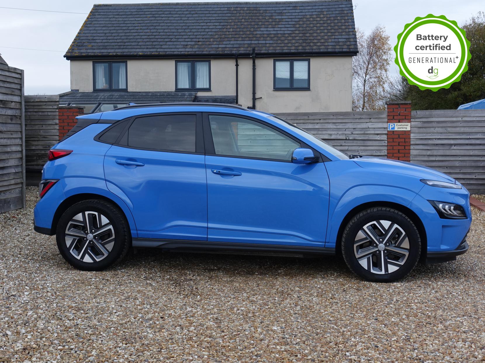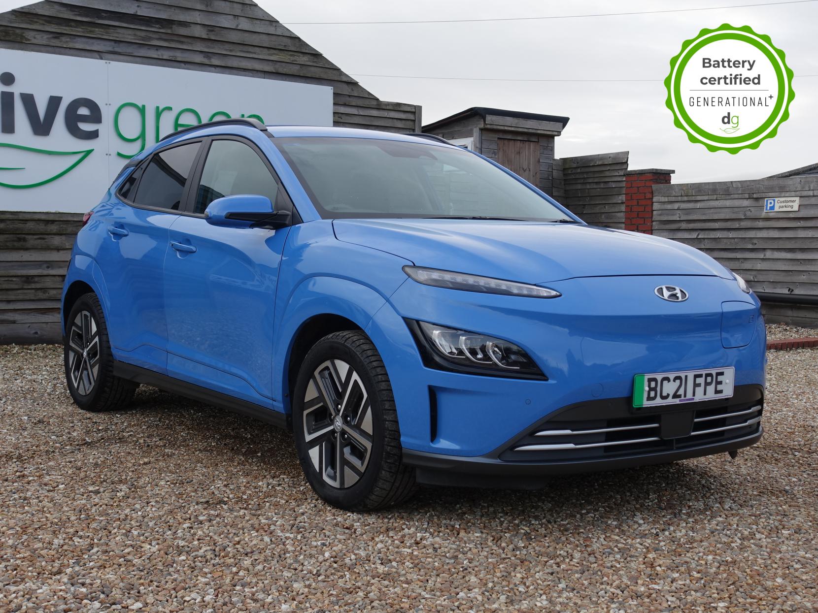 This particular Kona is in excellent condition and fully prepared to our high standard, has 2 keys, 1 previous owner, and it will be November 2026 until its next service and the very end of June when its MOT is due. The Hyundai Kona is a premium compact SUV, with an incredible 260-280 mile range, a practical boot, and roof rails. As well as its industry topping range, it is also capable of 75kW rapid charging. It has Apple Car Play and Android Auto, In-built sat nav and media centre with DAB, adjustable regen braking and a sport mode. If you are looking for a great value medium sized stylish EV, in great condition, this could be the perfect car for you. Unlike Car Supermarkets we have no hidden admin fees, there is no pressure selling, and we offer low finance rates. We also perform battery health checks on all our vehicles, so you can have the comfort of knowing the battery state of health of the EV you choose. Hopefully you will choose to buy your EV from Drive Green, as we are a multi award winning EV specialist and sustainable business, here to help you get the most from your switch to electric driving. Contact us to book an appointment to view and test drive this car, or to find out more about switching to electric driving, and to discuss purchase options, including buying on finance, and our remote buying and delivery service. We are also able to supply your home charge point also, making the switch to electric driving super easy for you. Drive Green is a true EV specialist and the UK’s biggest electric car only dealership, since 2017. FORECOURT VISITS AND TEST DRIVES BY APPOINTMENT ONLY.