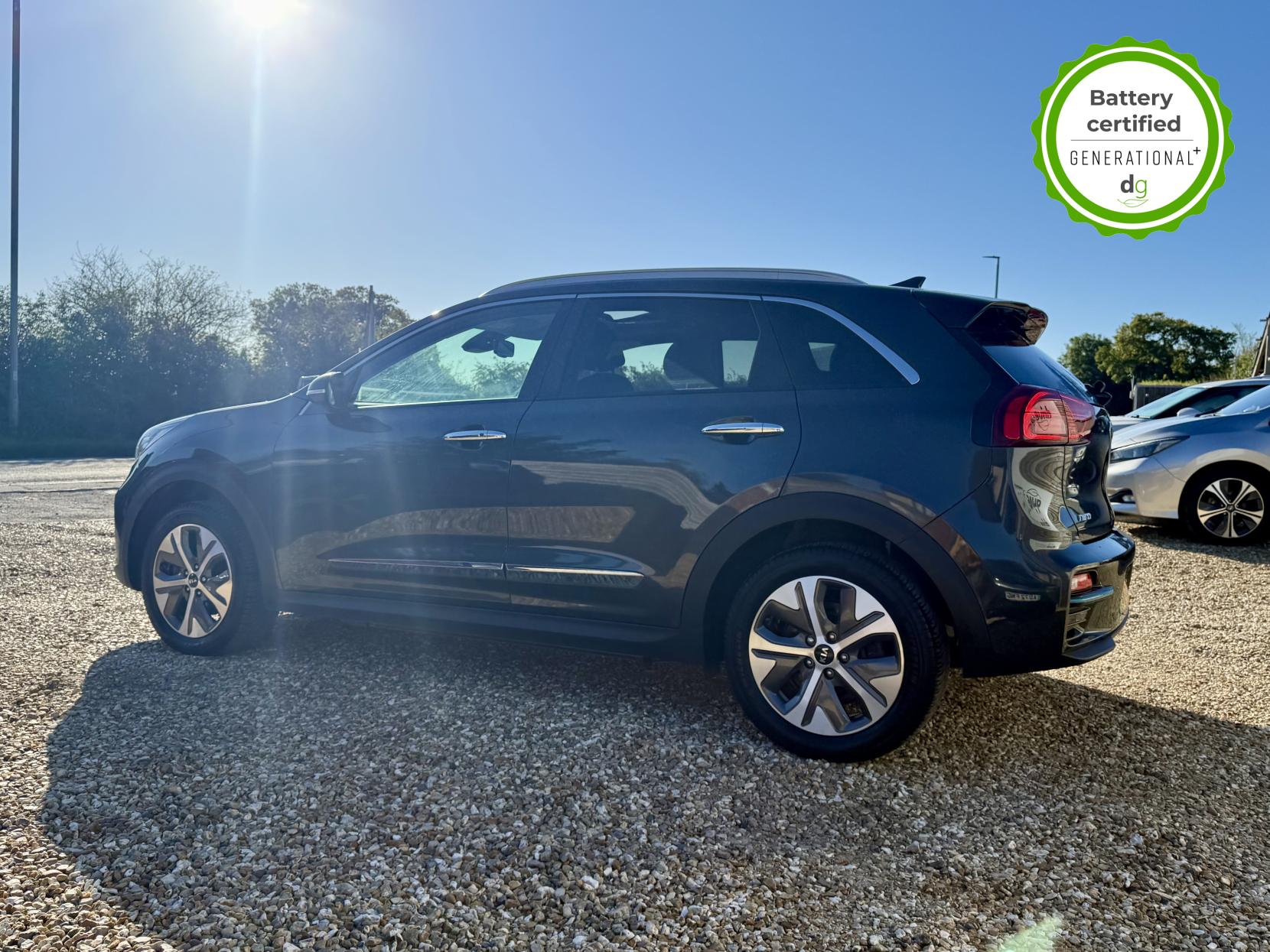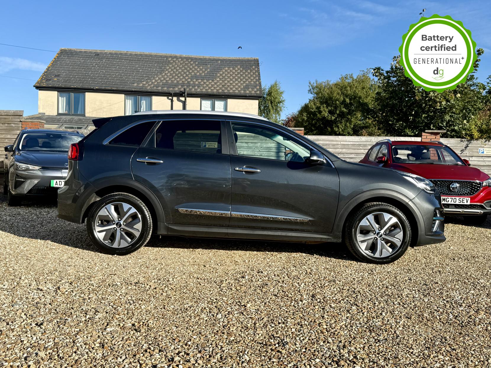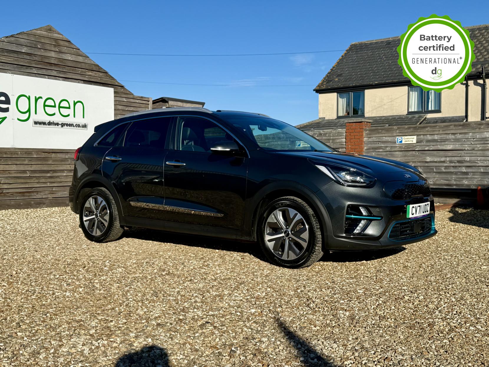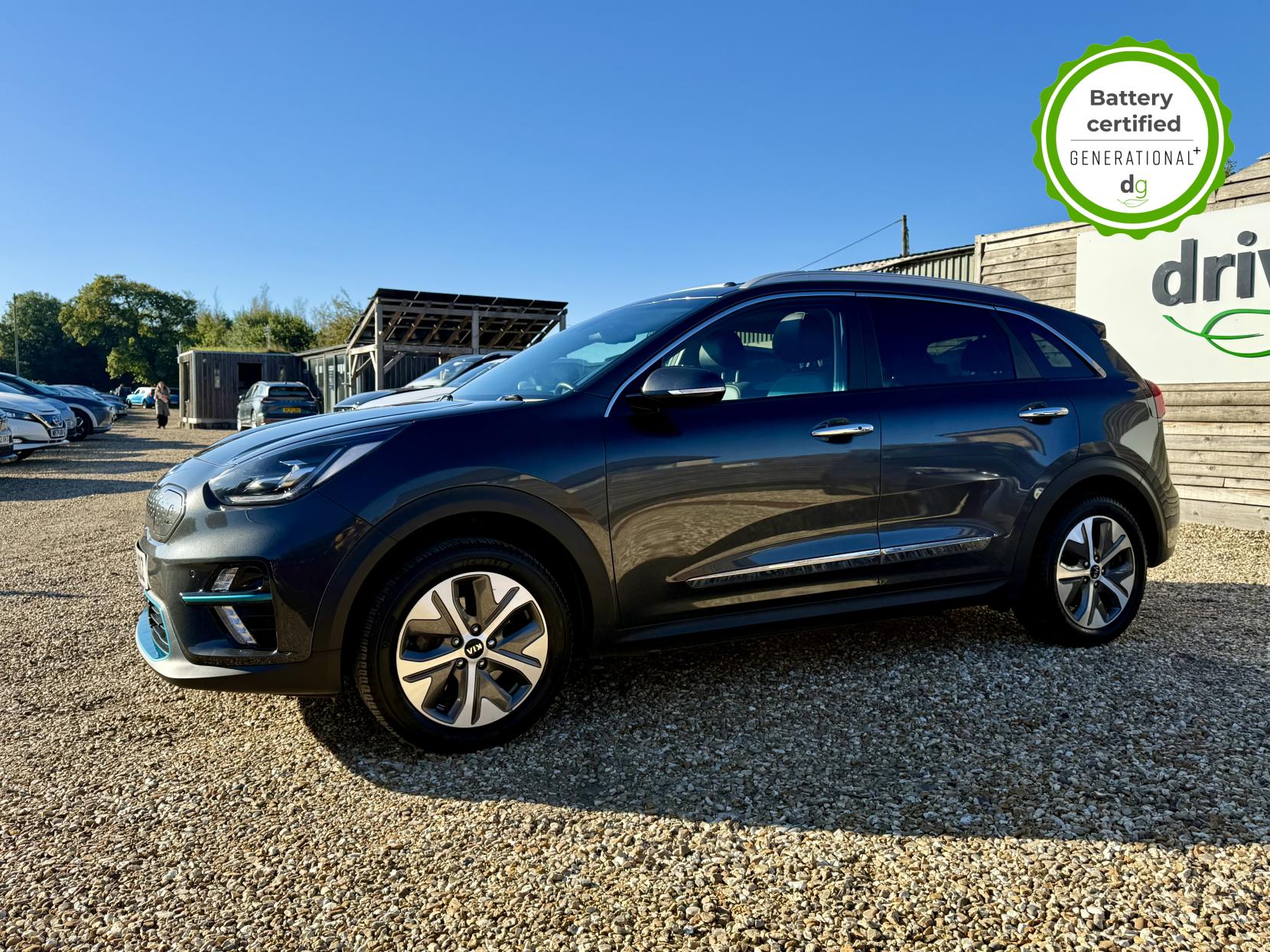 OVER £500 OF OPTIONAL EXTRAS! This E-Niro is in excellent condition and fully prepared to our high standard, has 2 keys, 1 previous owner, 4 prior services, and it will be September 2026 until its next service or MOT is due. The E-Niro is a great all-rounder – a generously sized and practical family EV, with a real-world range of around 250-300 miles, depending on your driving style and time of year. The top spec 4+ E-Niro features some impressive spec. Opening pan roof, 17′ alloys, roof rails, power adjustable memory driver’s seat, heated leather front and rear seats, heated steering wheel, and an 8 speakers JBL premium sound system. The 4+ also comes with a HEAT PUMP, which is a high efficiency heating system to give you even greater range in the winter months. The E-Niro also features some great safety spec including adaptive cruise control with lane and follow assist, emergency stop signalling and a forward collision avoidance system. If you are looking for a long range practically sized family EV, this could be the perfect car for you. Unlike Car Supermarkets we have no hidden admin fees, there is no pressure selling, and we offer low finance rates. We also perform battery health checks on all our vehicles, so you can have the comfort of knowing the battery state of health of the EV you choose. Hopefully you will choose to buy your EV from Drive Green, as we are a multi award winning EV specialist and sustainable business, here to help you get the most from your switch to electric driving. Contact us to book an appointment to view and test drive this car, or to find out more about switching to electric driving, and to discuss purchase options, including buying on finance, and our remote buying and delivery service. We are also able to supply your home charge point also, making the switch to electric driving super easy for you. Drive Green is a true EV specialist and the UK’s biggest electric car only dealership, since 2017. FORECOURT VISITS AND TEST DRIVES BY APPOINTMENT ONLY.