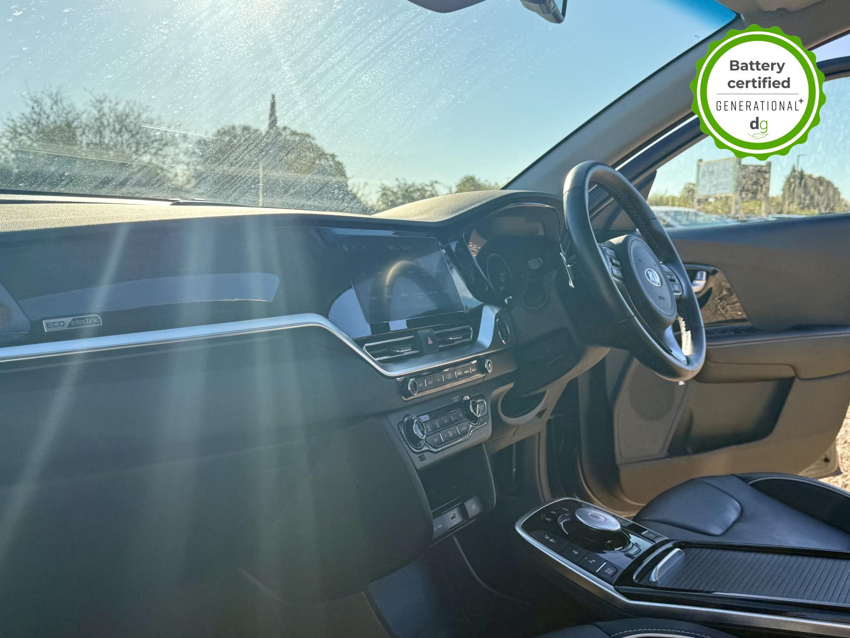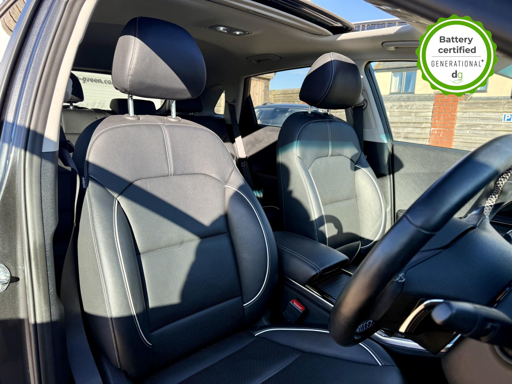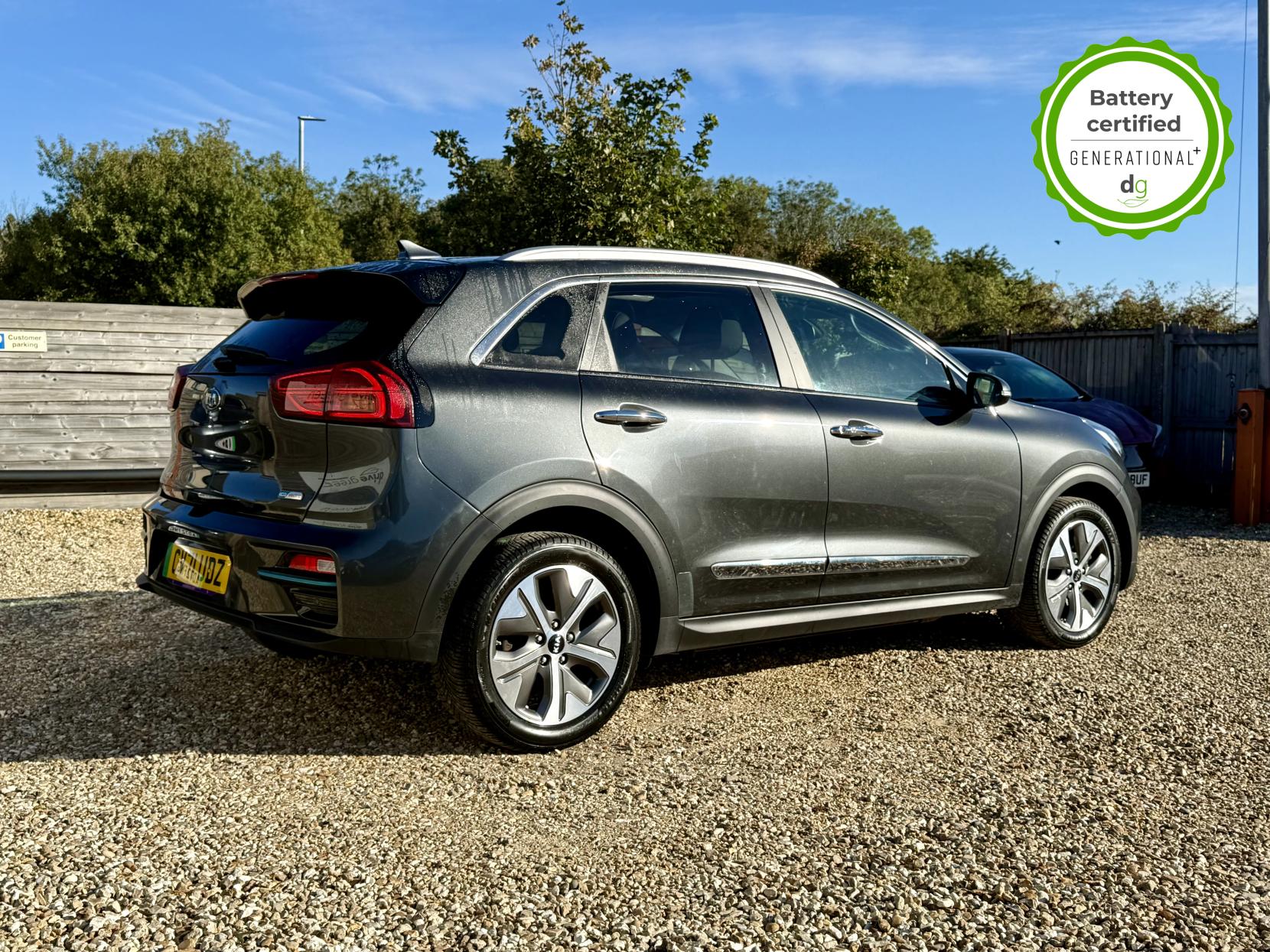 OVER £500 OF OPTIONAL EXTRAS! This E-Niro is in excellent condition and fully prepared to our high standard, has 2 keys, 1 previous owner, 4 prior services, and it will be September 2026 until its next service or MOT is due. The E-Niro is a great all-rounder – a generously sized and practical family EV, with a real-world range of around 250-300 miles, depending on your driving style and time of year. The top spec 4+ E-Niro features some impressive spec. Opening pan roof, 17′ alloys, roof rails, power adjustable memory driver’s seat, heated leather front and rear seats, heated steering wheel, and an 8 speakers JBL premium sound system. The 4+ also comes with a HEAT PUMP, which is a high efficiency heating system to give you even greater range in the winter months. The E-Niro also features some great safety spec including adaptive cruise control with lane and follow assist, emergency stop signalling and a forward collision avoidance system. If you are looking for a long range practically sized family EV, this could be the perfect car for you. Unlike Car Supermarkets we have no hidden admin fees, there is no pressure selling, and we offer low finance rates. We also perform battery health checks on all our vehicles, so you can have the comfort of knowing the battery state of health of the EV you choose. Hopefully you will choose to buy your EV from Drive Green, as we are a multi award winning EV specialist and sustainable business, here to help you get the most from your switch to electric driving. Contact us to book an appointment to view and test drive this car, or to find out more about switching to electric driving, and to discuss purchase options, including buying on finance, and our remote buying and delivery service. We are also able to supply your home charge point also, making the switch to electric driving super easy for you. Drive Green is a true EV specialist and the UK’s biggest electric car only dealership, since 2017. FORECOURT VISITS AND TEST DRIVES BY APPOINTMENT ONLY.