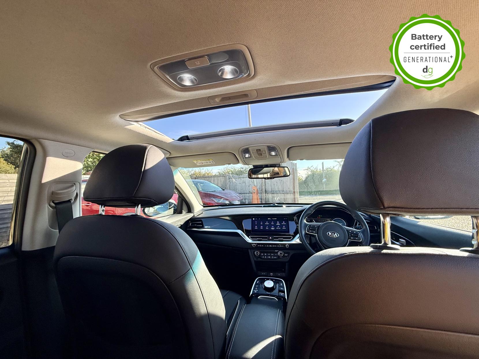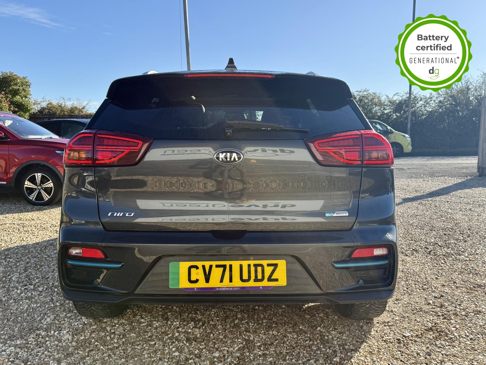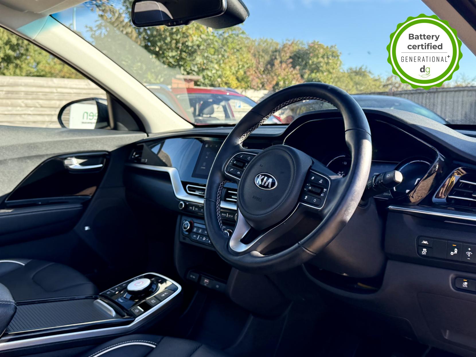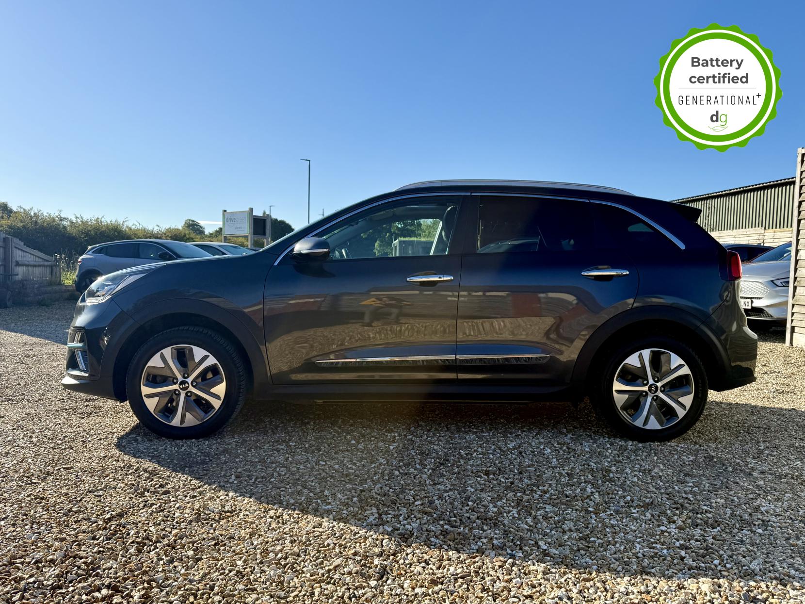 OVER £500 OF OPTIONAL EXTRAS! This E-Niro is in excellent condition and fully prepared to our high standard, has 2 keys, 1 previous owner, 4 prior services, and it will be September 2026 until its next service or MOT is due. The E-Niro is a great all-rounder – a generously sized and practical family EV, with a real-world range of around 250-300 miles, depending on your driving style and time of year. The top spec 4+ E-Niro features some impressive spec. Opening pan roof, 17′ alloys, roof rails, power adjustable memory driver’s seat, heated leather front and rear seats, heated steering wheel, and an 8 speakers JBL premium sound system. The 4+ also comes with a HEAT PUMP, which is a high efficiency heating system to give you even greater range in the winter months. The E-Niro also features some great safety spec including adaptive cruise control with lane and follow assist, emergency stop signalling and a forward collision avoidance system. If you are looking for a long range practically sized family EV, this could be the perfect car for you. Unlike Car Supermarkets we have no hidden admin fees, there is no pressure selling, and we offer low finance rates. We also perform battery health checks on all our vehicles, so you can have the comfort of knowing the battery state of health of the EV you choose. Hopefully you will choose to buy your EV from Drive Green, as we are a multi award winning EV specialist and sustainable business, here to help you get the most from your switch to electric driving. Contact us to book an appointment to view and test drive this car, or to find out more about switching to electric driving, and to discuss purchase options, including buying on finance, and our remote buying and delivery service. We are also able to supply your home charge point also, making the switch to electric driving super easy for you. Drive Green is a true EV specialist and the UK’s biggest electric car only dealership, since 2017. FORECOURT VISITS AND TEST DRIVES BY APPOINTMENT ONLY.