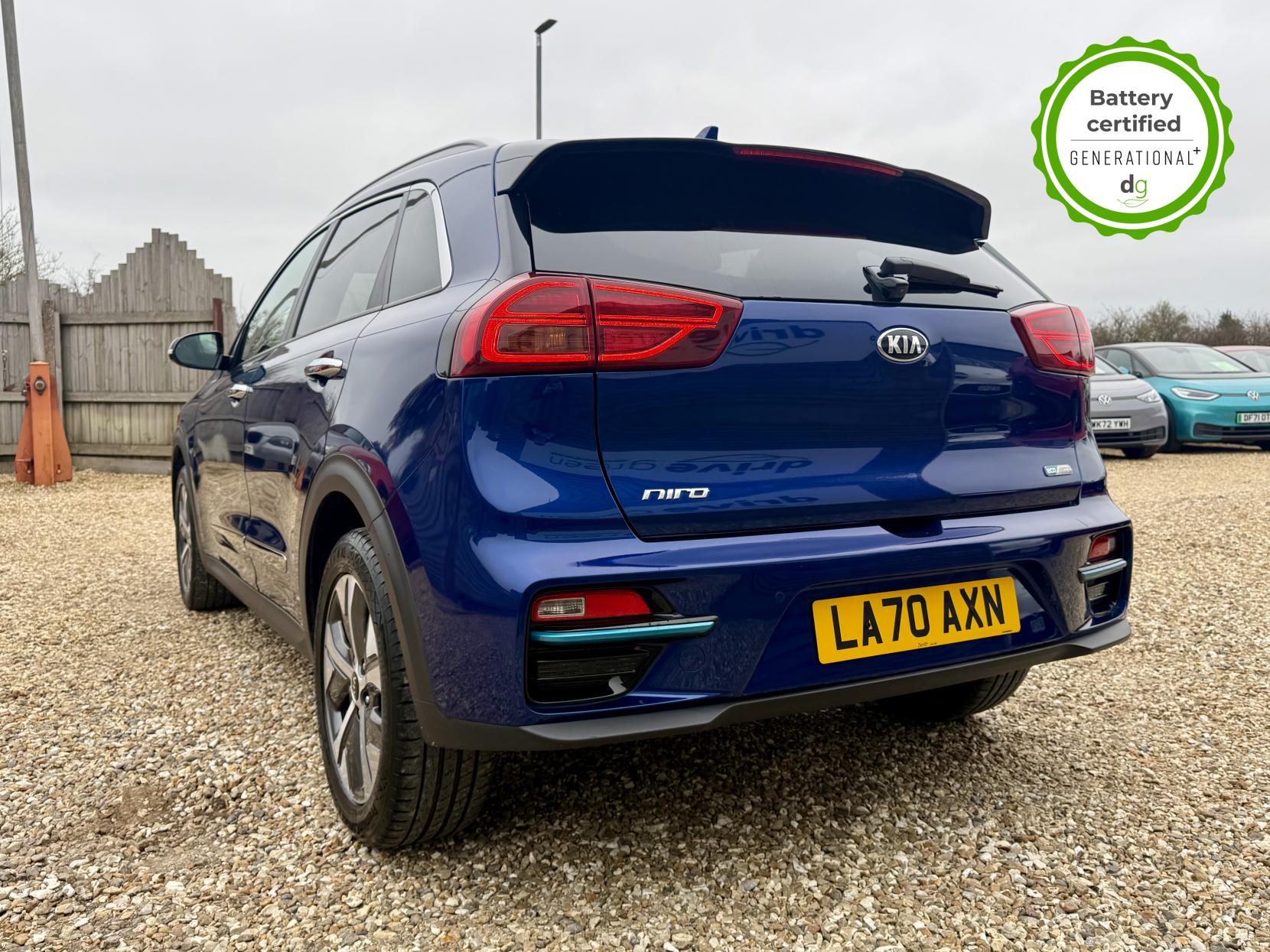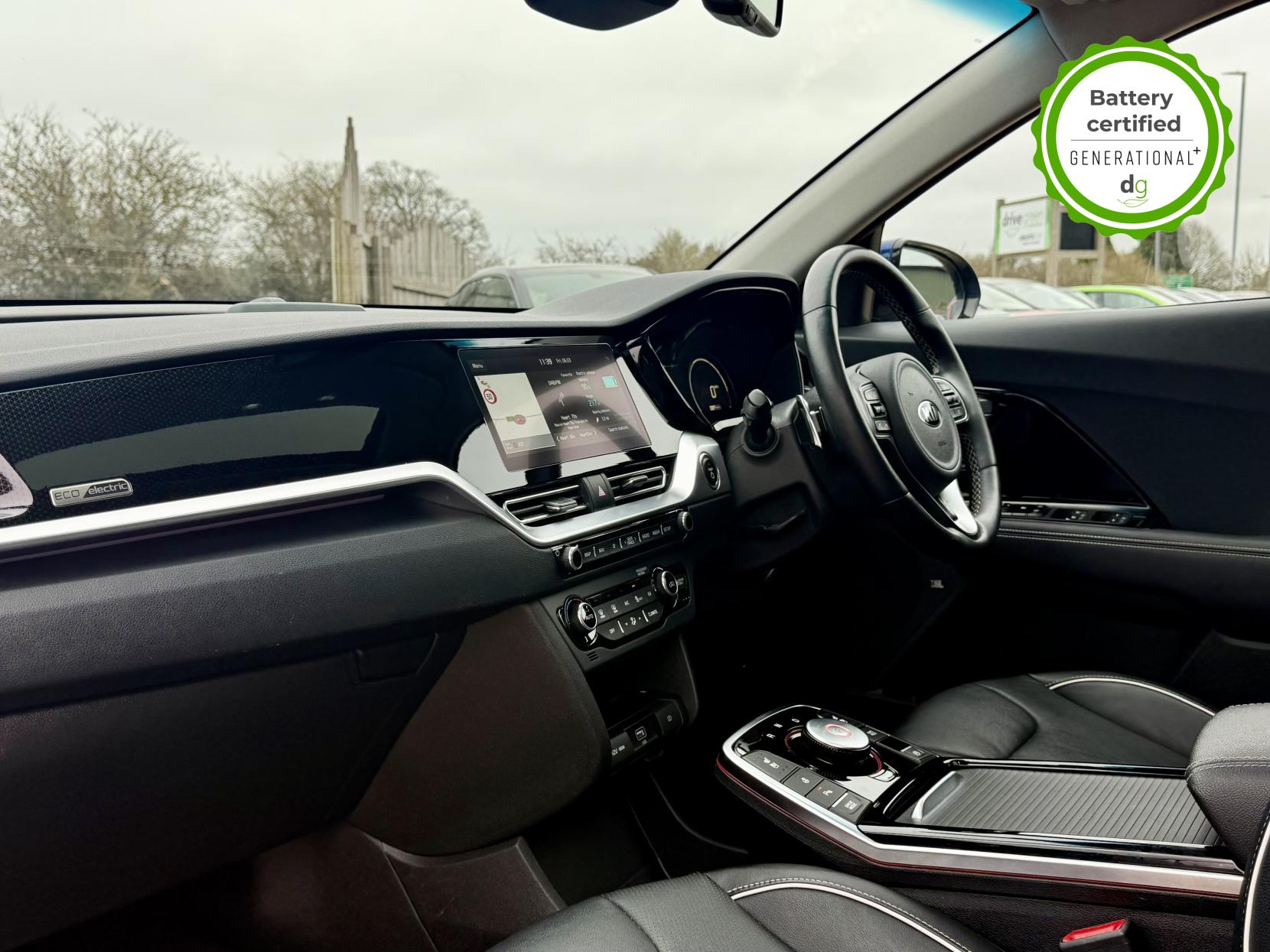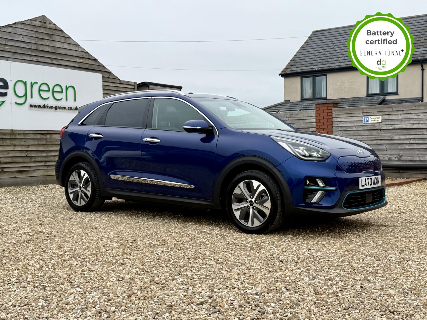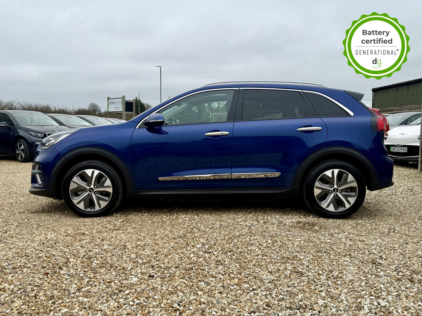 This E-Niro is in excellent condition and fully prepared to our high standard, has 2 keys, 1 previous owner, a full service history of 5 services, and it is the end of January 2027 until its next service or MOT is due. The E-Niro is a great all-rounder – a generously sized and practical family EV, with a real-world range of around 250-300 miles, depending on your driving style and time of year. The top spec 4+ E-Niro features some impressive spec. Opening pan roof, 17′ alloys, roof rails, power adjustable memory driver’s seat, heated leather front and rear seats, heated steering wheel, and an 8 speakers JBL premium sound system. The 4+ also comes with a HEAT PUMP, which is a high efficiency heating system to give you even greater range in the winter months. The E-Niro also features some great safety spec including adaptive cruise control with lane and follow assist, emergency stop signalling and a forward collision avoidance system. If you are looking for a long range practically sized family EV, this could be the perfect car for you. Unlike Car Supermarkets we have no hidden admin fees, there is no pressure selling, and we offer low finance rates. We also perform battery health checks on all our vehicles, so you can have the comfort of knowing the battery state of health of the EV you choose. Hopefully you will choose to buy your EV from Drive Green, as we are a multi award winning EV specialist and sustainable business, here to help you get the most from your switch to electric driving. Contact us to book an appointment to view and test drive this car, or to find out more about switching to electric driving, and to discuss purchase options, including buying on finance, and our remote buying and delivery service. We are also able to supply your home charge point also, making the switch to electric driving super easy for you. Drive Green is a true EV specialist and the UK’s biggest electric car only dealership, since 2017. FORECOURT VISITS AND TEST DRIVES BY APPOINTMENT ONLY.