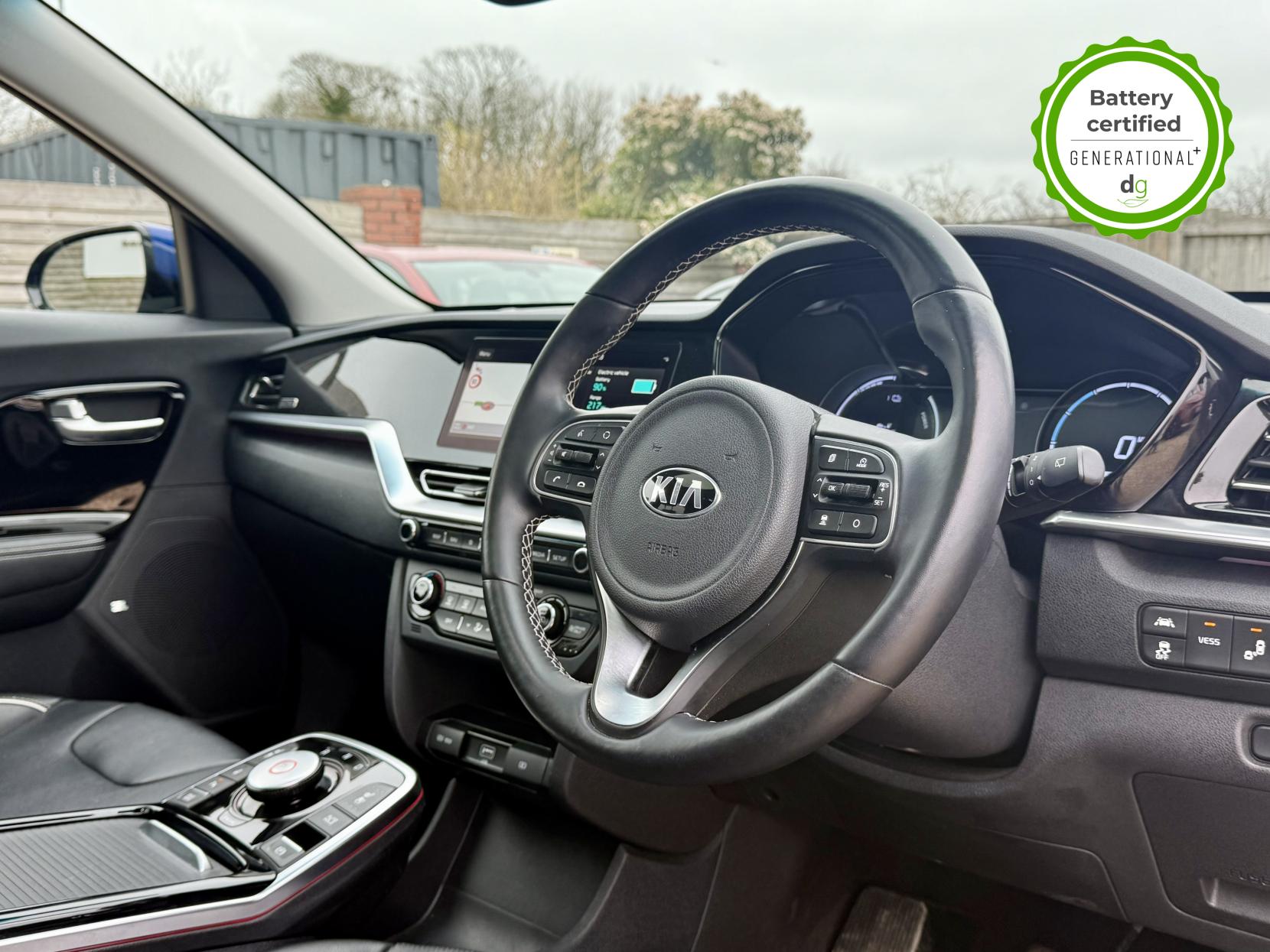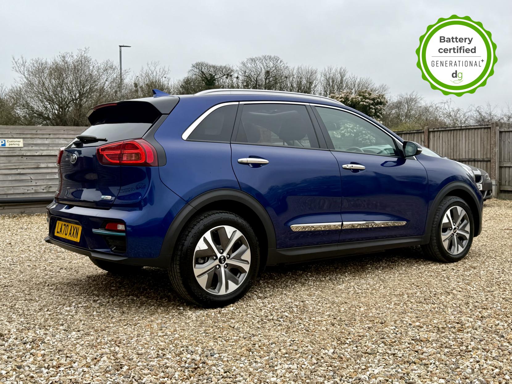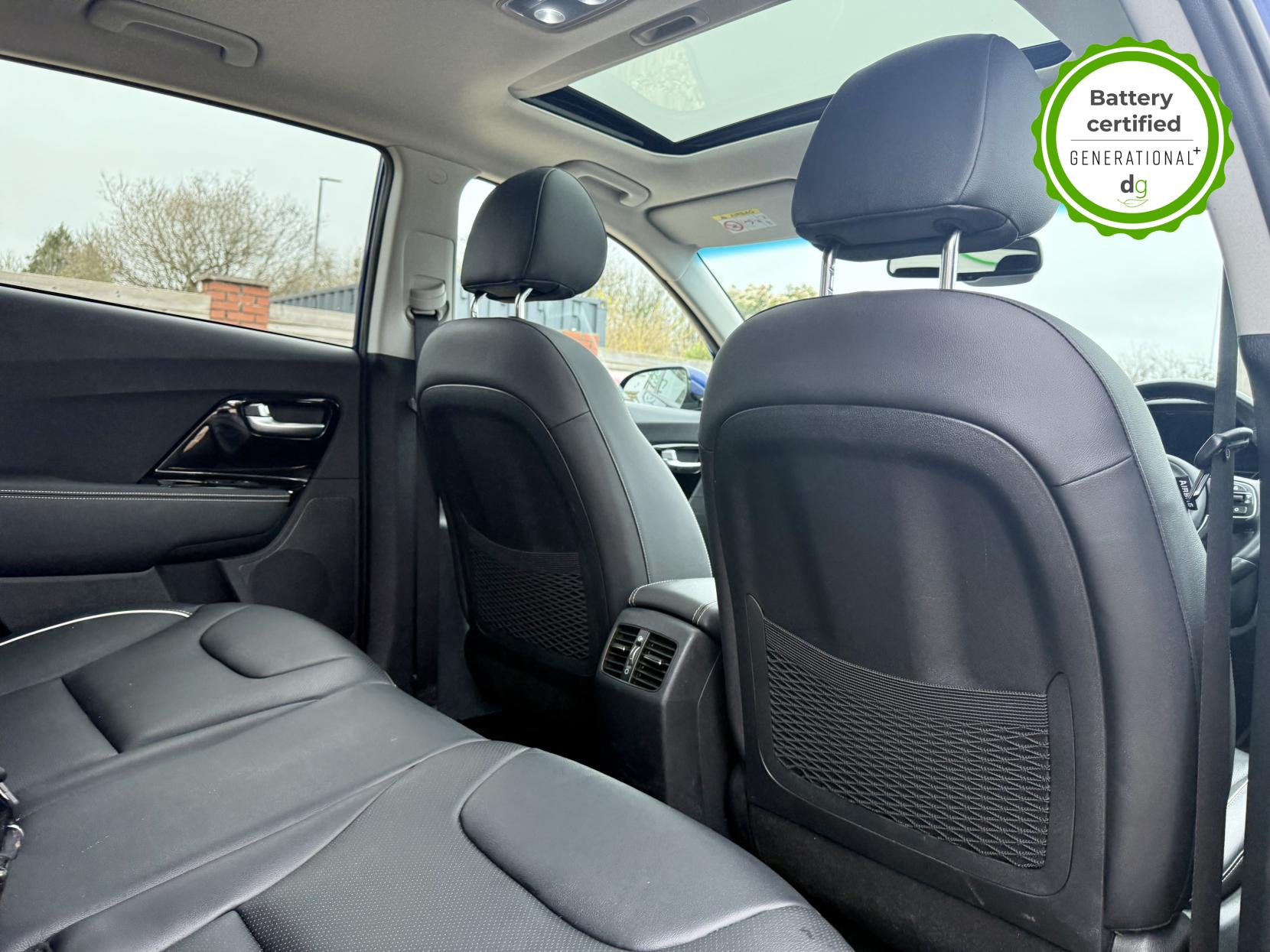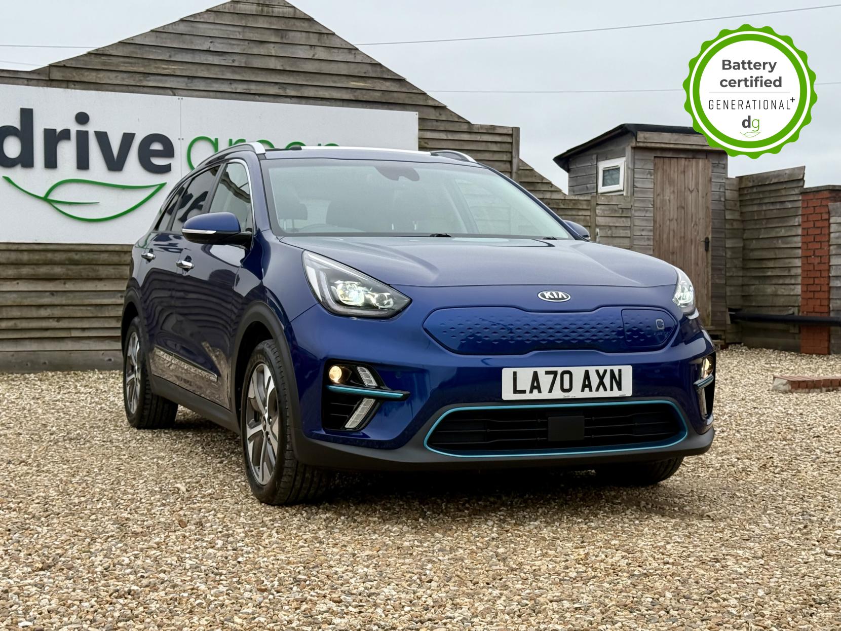 This E-Niro is in excellent condition and fully prepared to our high standard, has 2 keys, 1 previous owner, a full service history of 5 services, and it is the end of January 2027 until its next service or MOT is due. The E-Niro is a great all-rounder – a generously sized and practical family EV, with a real-world range of around 250-300 miles, depending on your driving style and time of year. The top spec 4+ E-Niro features some impressive spec. Opening pan roof, 17′ alloys, roof rails, power adjustable memory driver’s seat, heated leather front and rear seats, heated steering wheel, and an 8 speakers JBL premium sound system. The 4+ also comes with a HEAT PUMP, which is a high efficiency heating system to give you even greater range in the winter months. The E-Niro also features some great safety spec including adaptive cruise control with lane and follow assist, emergency stop signalling and a forward collision avoidance system. If you are looking for a long range practically sized family EV, this could be the perfect car for you. Unlike Car Supermarkets we have no hidden admin fees, there is no pressure selling, and we offer low finance rates. We also perform battery health checks on all our vehicles, so you can have the comfort of knowing the battery state of health of the EV you choose. Hopefully you will choose to buy your EV from Drive Green, as we are a multi award winning EV specialist and sustainable business, here to help you get the most from your switch to electric driving. Contact us to book an appointment to view and test drive this car, or to find out more about switching to electric driving, and to discuss purchase options, including buying on finance, and our remote buying and delivery service. We are also able to supply your home charge point also, making the switch to electric driving super easy for you. Drive Green is a true EV specialist and the UK’s biggest electric car only dealership, since 2017. FORECOURT VISITS AND TEST DRIVES BY APPOINTMENT ONLY.