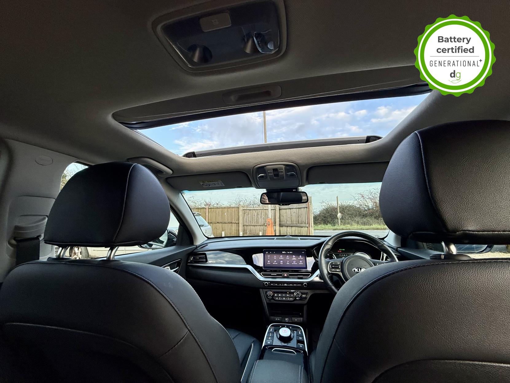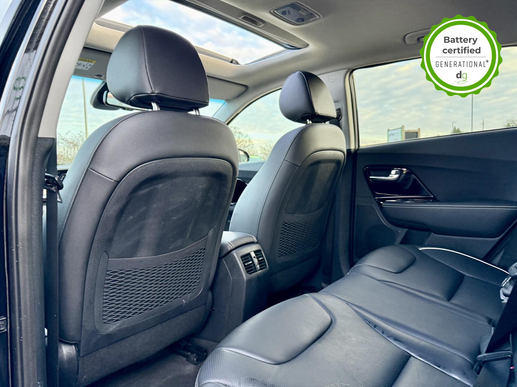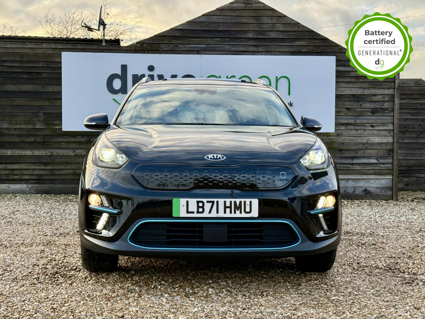 OVER £500 OF OPTIONAL EXTRAS! This E-Niro is in excellent condition and fully prepared to our high standard, has 2 keys, 1 previous owner, and it will be December 2026 until its next service and the end of November 2026 when its MOT is due. The E-Niro is a great all-rounder – a generously sized and practical family EV, with a real-world range of around 250-300 miles, depending on your driving style and time of year. The top spec 4+ E-Niro features some impressive spec. Opening pan roof, 17′ alloys, roof rails, power adjustable memory driver’s seat, heated leather front and rear seats, heated steering wheel, and an 8 speakers JBL premium sound system. The 4+ also comes with a HEAT PUMP, which is a high efficiency heating system to give you even greater range in the winter months. The E-Niro also features some great safety spec including adaptive cruise control with lane and follow assist, emergency stop signalling and a forward collision avoidance system. If you are looking for a long range practically sized family EV, this could be the perfect car for you. Unlike Car Supermarkets we have no hidden admin fees, there is no pressure selling, and we offer low finance rates. We also perform battery health checks on all our vehicles, so you can have the comfort of knowing the battery state of health of the EV you choose. Hopefully you will choose to buy your EV from Drive Green, as we are a multi award winning EV specialist and sustainable business, here to help you get the most from your switch to electric driving. Contact us to book an appointment to view and test drive this car, or to find out more about switching to electric driving, and to discuss purchase options, including buying on finance, and our remote buying and delivery service. We are also able to supply your home charge point also, making the switch to electric driving super easy for you. Drive Green is a true EV specialist and the UK’s biggest electric car only dealership, since 2017. FORECOURT VISITS AND TEST DRIVES BY APPOINTMENT ONLY.