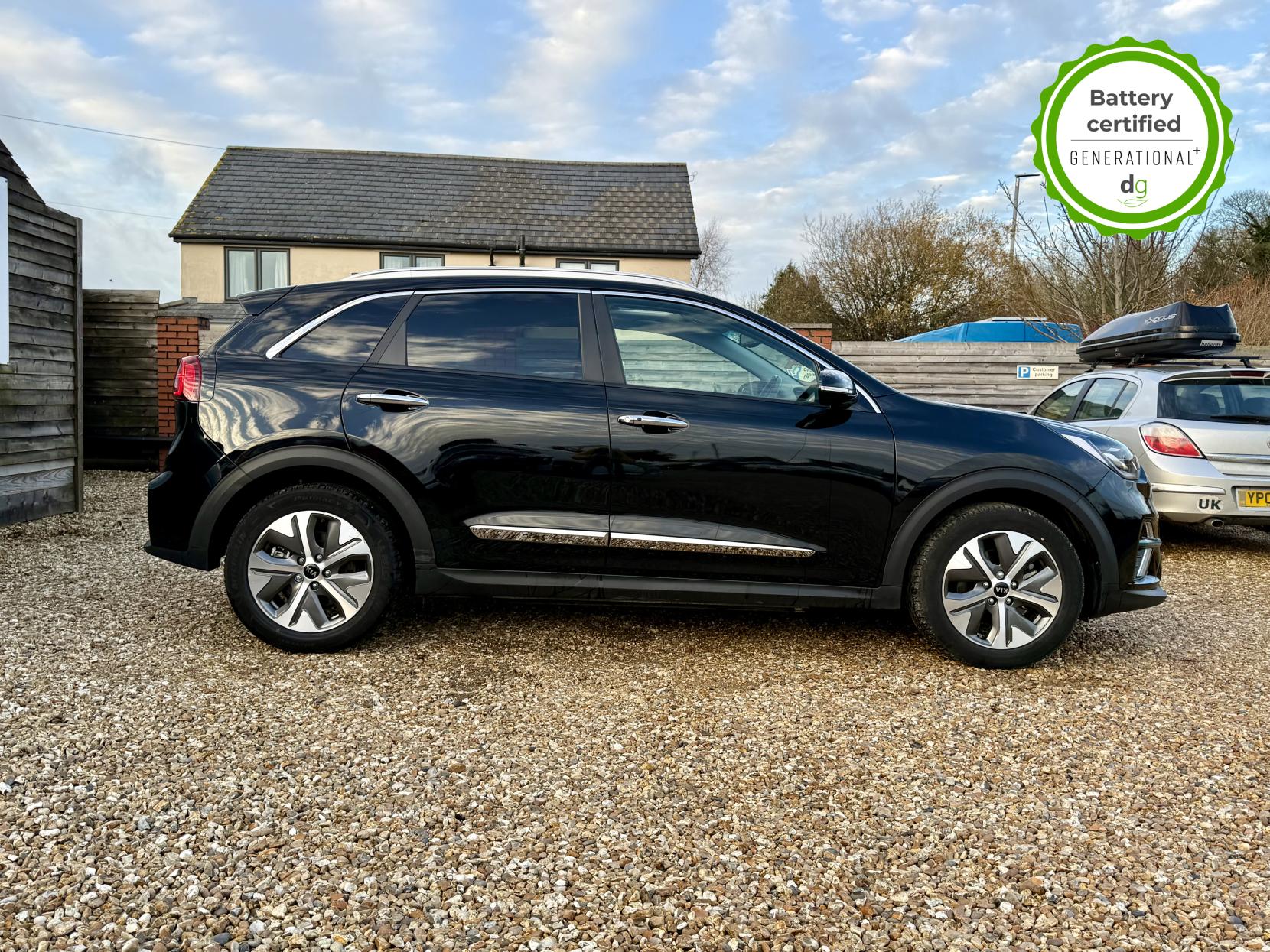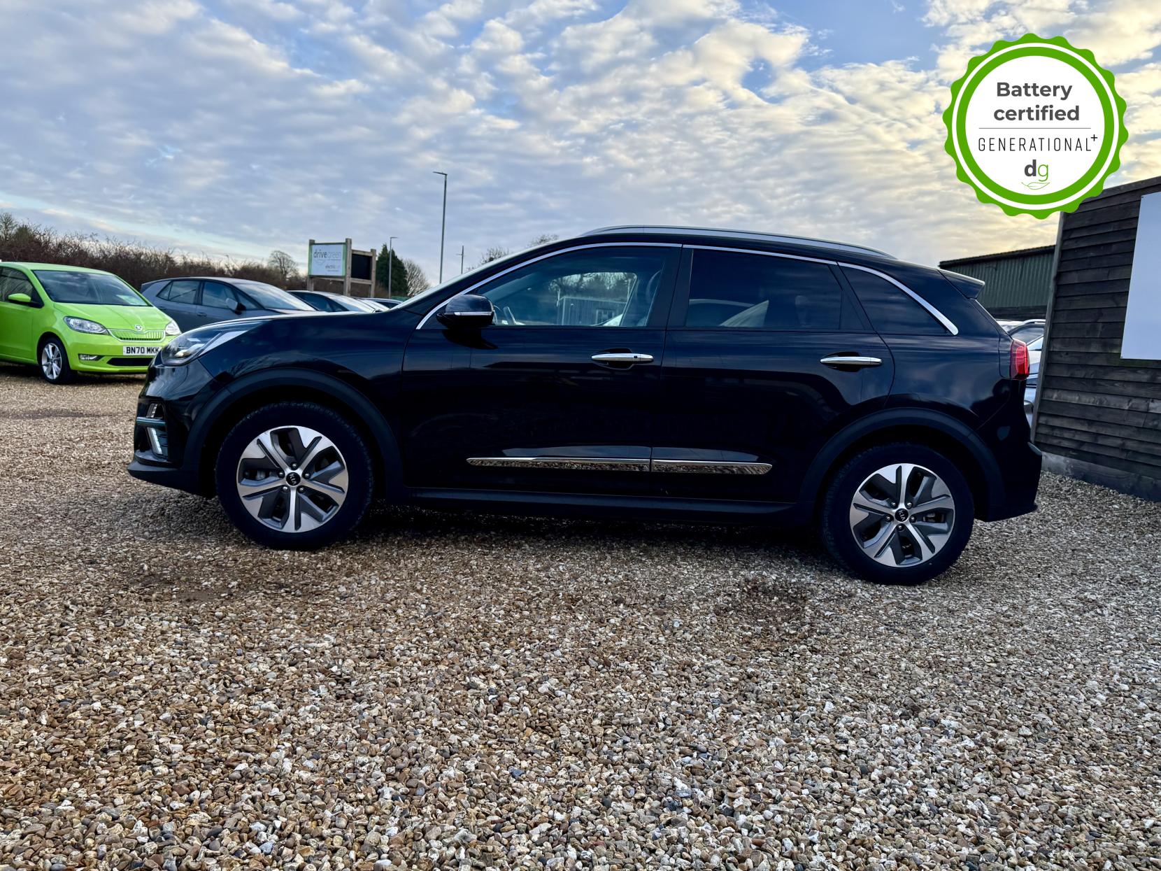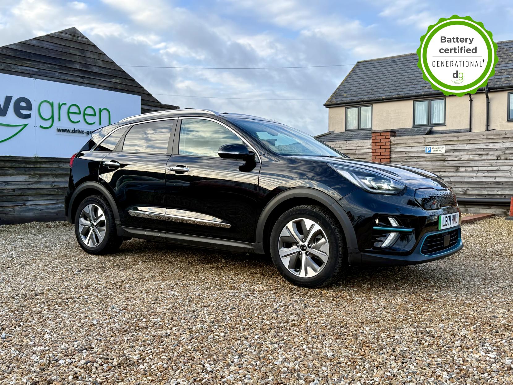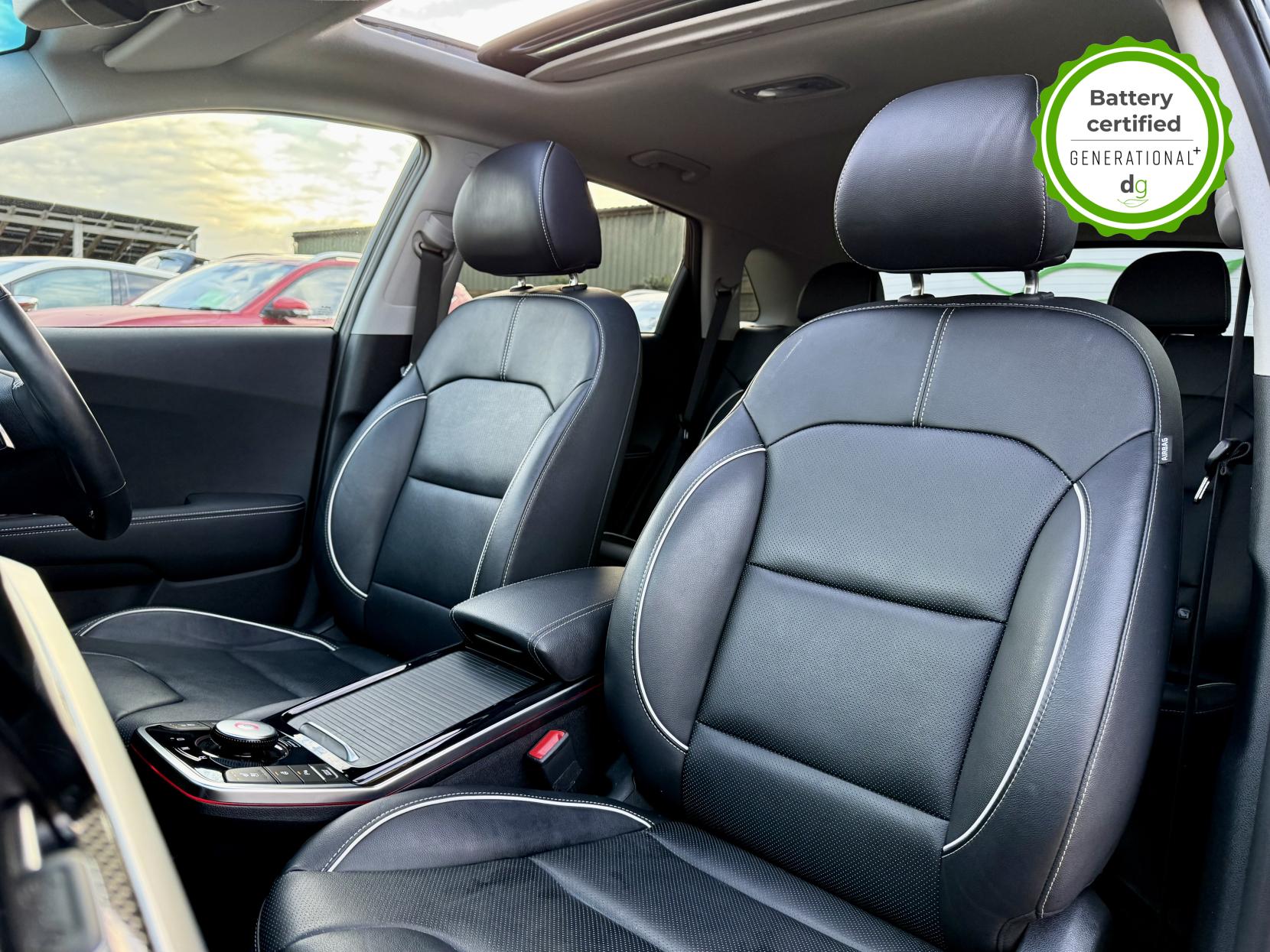 OVER £500 OF OPTIONAL EXTRAS! This E-Niro is in excellent condition and fully prepared to our high standard, has 2 keys, 1 previous owner, and it will be December 2026 until its next service and the end of November 2026 when its MOT is due. The E-Niro is a great all-rounder – a generously sized and practical family EV, with a real-world range of around 250-300 miles, depending on your driving style and time of year. The top spec 4+ E-Niro features some impressive spec. Opening pan roof, 17′ alloys, roof rails, power adjustable memory driver’s seat, heated leather front and rear seats, heated steering wheel, and an 8 speakers JBL premium sound system. The 4+ also comes with a HEAT PUMP, which is a high efficiency heating system to give you even greater range in the winter months. The E-Niro also features some great safety spec including adaptive cruise control with lane and follow assist, emergency stop signalling and a forward collision avoidance system. If you are looking for a long range practically sized family EV, this could be the perfect car for you. Unlike Car Supermarkets we have no hidden admin fees, there is no pressure selling, and we offer low finance rates. We also perform battery health checks on all our vehicles, so you can have the comfort of knowing the battery state of health of the EV you choose. Hopefully you will choose to buy your EV from Drive Green, as we are a multi award winning EV specialist and sustainable business, here to help you get the most from your switch to electric driving. Contact us to book an appointment to view and test drive this car, or to find out more about switching to electric driving, and to discuss purchase options, including buying on finance, and our remote buying and delivery service. We are also able to supply your home charge point also, making the switch to electric driving super easy for you. Drive Green is a true EV specialist and the UK’s biggest electric car only dealership, since 2017. FORECOURT VISITS AND TEST DRIVES BY APPOINTMENT ONLY.