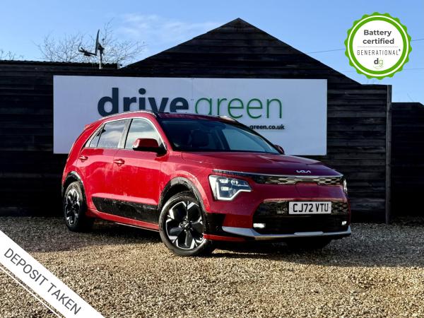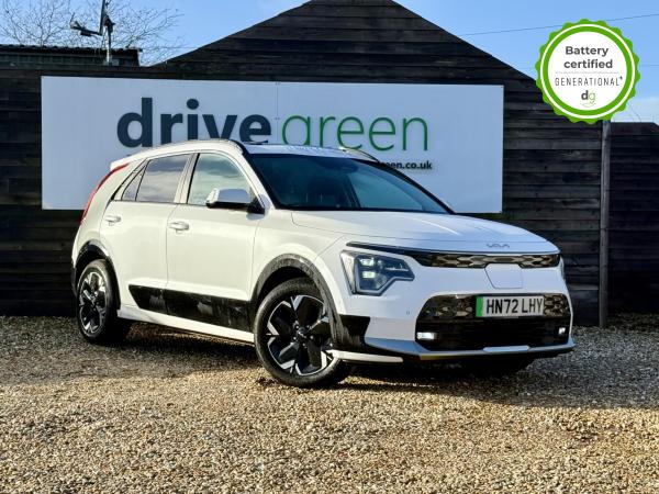 This E-Niro is in excellent condition and fully prepared to our high standard, has 2 keys, 1 previous owner, a Full service history of 6 services, and it will be December 2026 until its next service and November 2026 when its MOT is due. The E-Niro is a great all-rounder – a generously sized and practical family EV, with a real-world range of around 250-300 miles, depending on your driving style and time of year. The level 3 E-Niro features some impressive spec. 17′ alloys, roof rails, power adjustable driver’s seat, and heated front seats. The E-Niro also features some great safety spec. If you are looking for an approachably priced, long range and practically sized family EV, this could be the perfect car for you. Unlike Car Supermarkets we have no hidden admin fees, there is no pressure selling, and we offer low finance rates. We also perform battery health checks on all our vehicles, so you can have the comfort of knowing the battery state of health of the EV you choose. Hopefully you will choose to buy your EV from Drive Green, as we are a multi award winning EV specialist and sustainable business, here to help you get the most from your switch to electric driving. Contact us to book an appointment to view and test drive this car, or to find out more about switching to electric driving, and to discuss purchase options, including buying on finance, and our remote buying and delivery service. We are also able to supply your home charge point also, making the switch to electric driving super easy for you. Drive Green is a true EV specialist and the UK’s biggest electric car only dealership, since 2017. FORECOURT VISITS AND TEST DRIVES BY APPOINTMENT ONLY.