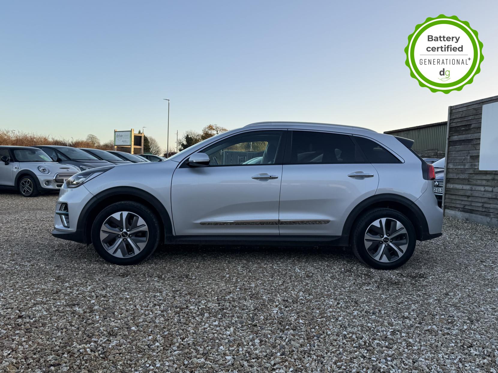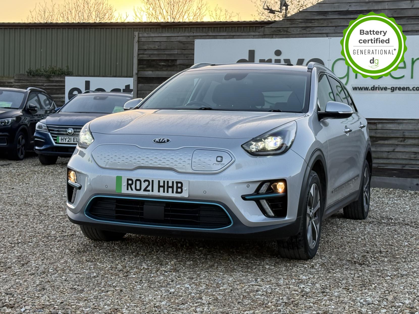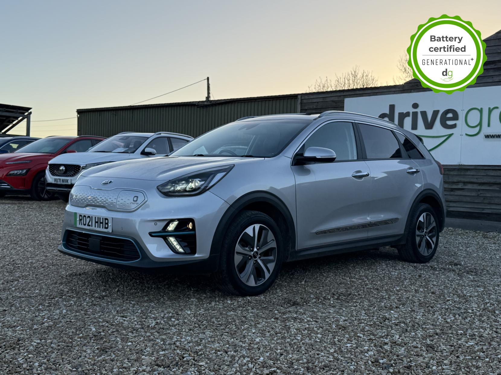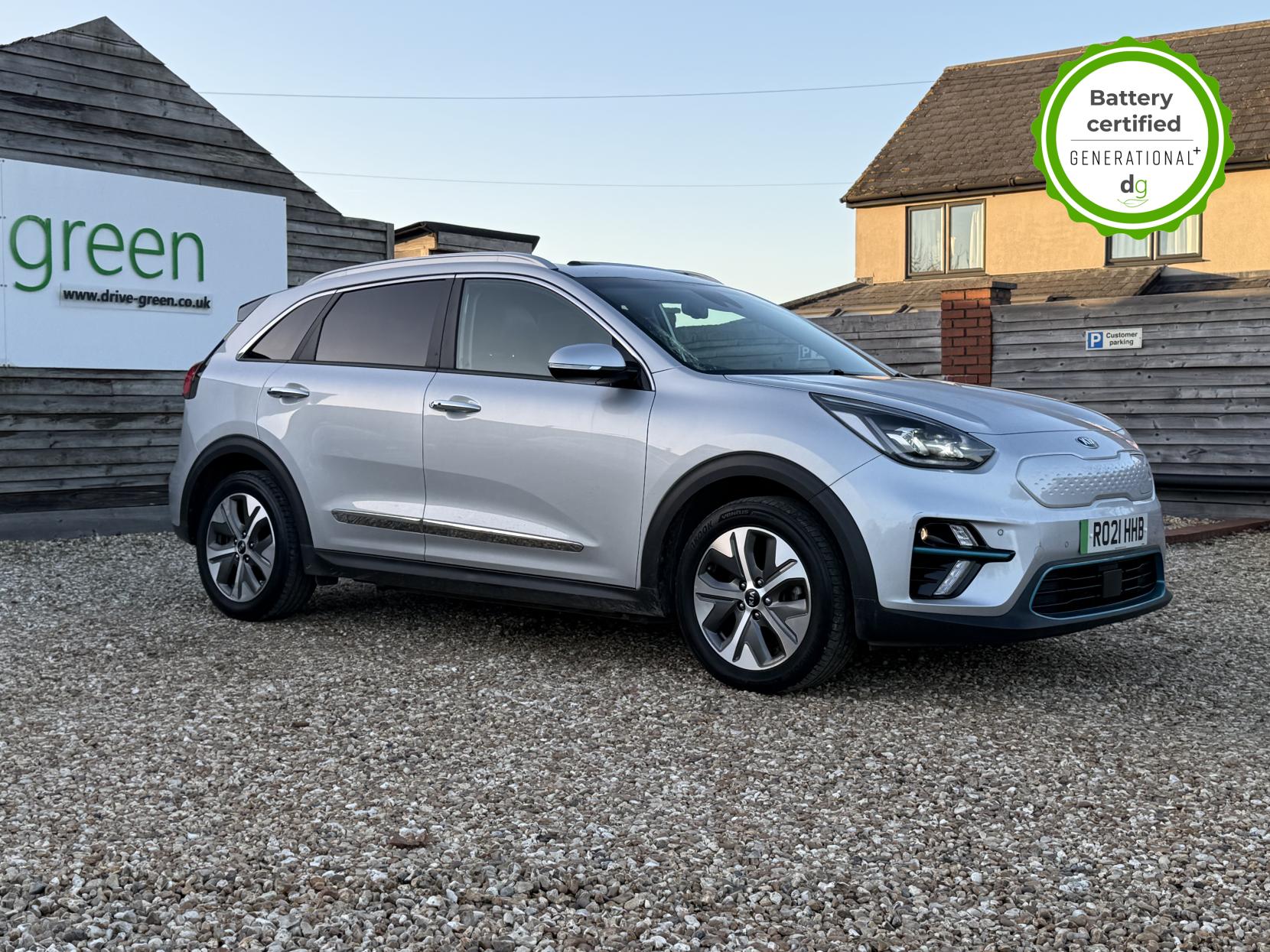 OVER £500 OF OPTIONAL EXTRAS! This E-Niro is in excellent condition and fully prepared to our high standard, has 2 keys, 1 previous owner, 5 prior services, and it is September 2026 until its next service and the end of June 2026 when its MOT is due. The E-Niro is a great all-rounder – a generously sized and practical family EV, with a real-world range of around 250-300 miles, depending on your driving style and time of year. The top spec 4+ E-Niro features some impressive spec. Opening pan roof, 17′ alloys, roof rails, power adjustable memory driver’s seat, heated leather front and rear seats, heated steering wheel, and an 8 speakers JBL premium sound system. The 4+ also comes with a HEAT PUMP, which is a high efficiency heating system to give you even greater range in the winter months. The E-Niro also features some great safety spec including adaptive cruise control with lane and follow assist, emergency stop signalling and a forward collision avoidance system. If you are looking for a long range practically sized family EV, this could be the perfect car for you. Unlike Car Supermarkets we have no hidden admin fees, there is no pressure selling, and we offer low finance rates. We also perform battery health checks on all our vehicles, so you can have the comfort of knowing the battery state of health of the EV you choose. Hopefully you will choose to buy your EV from Drive Green, as we are a multi award winning EV specialist and sustainable business, here to help you get the most from your switch to electric driving. Contact us to book an appointment to view and test drive this car, or to find out more about switching to electric driving, and to discuss purchase options, including buying on finance, and our remote buying and delivery service. We are also able to supply your home charge point also, making the switch to electric driving super easy for you. Drive Green is a true EV specialist and the UK’s biggest electric car only dealership, since 2017. FORECOURT VISITS AND TEST DRIVES BY APPOINTMENT ONLY.