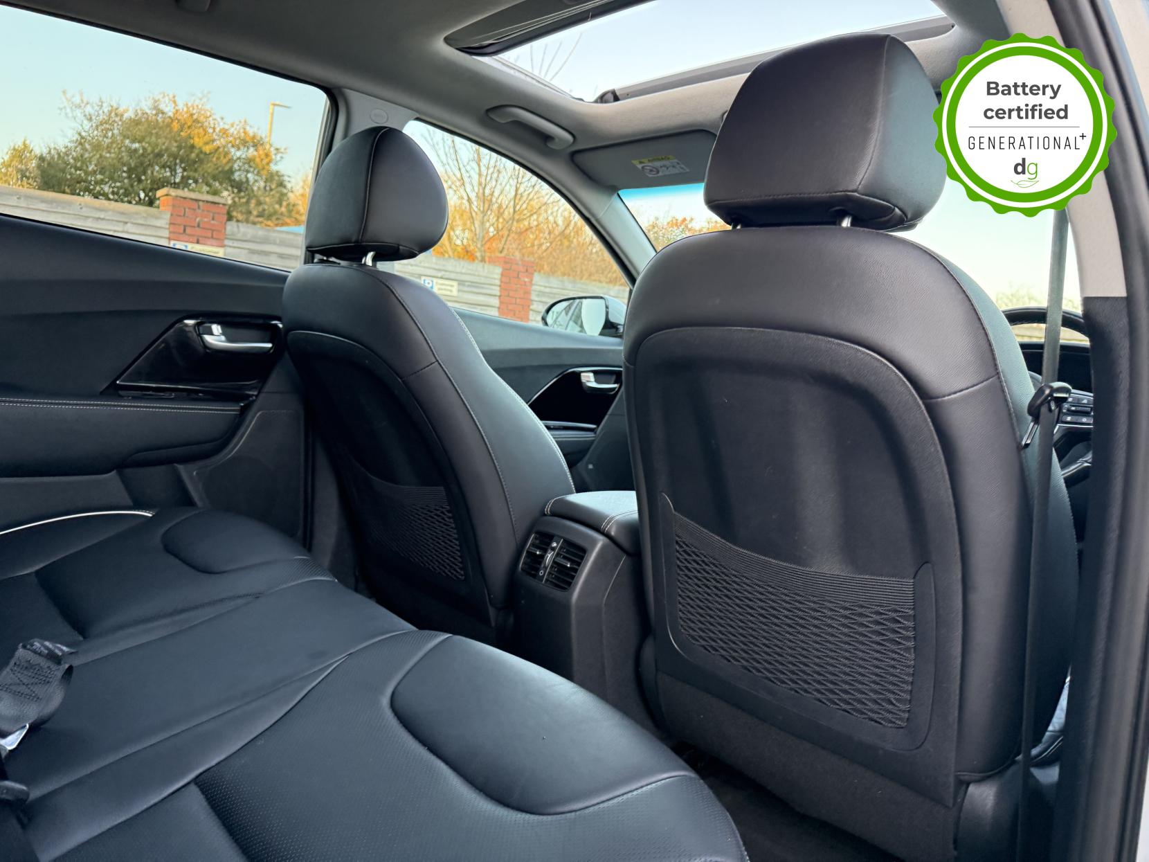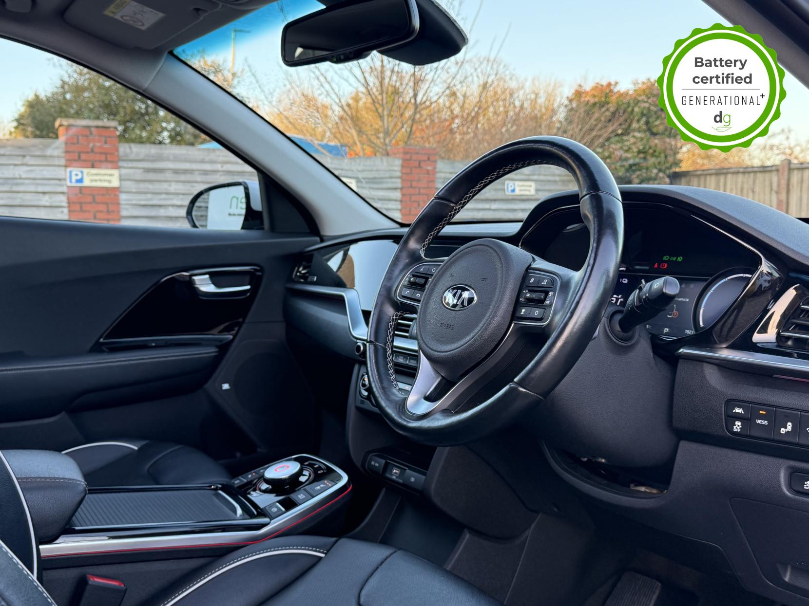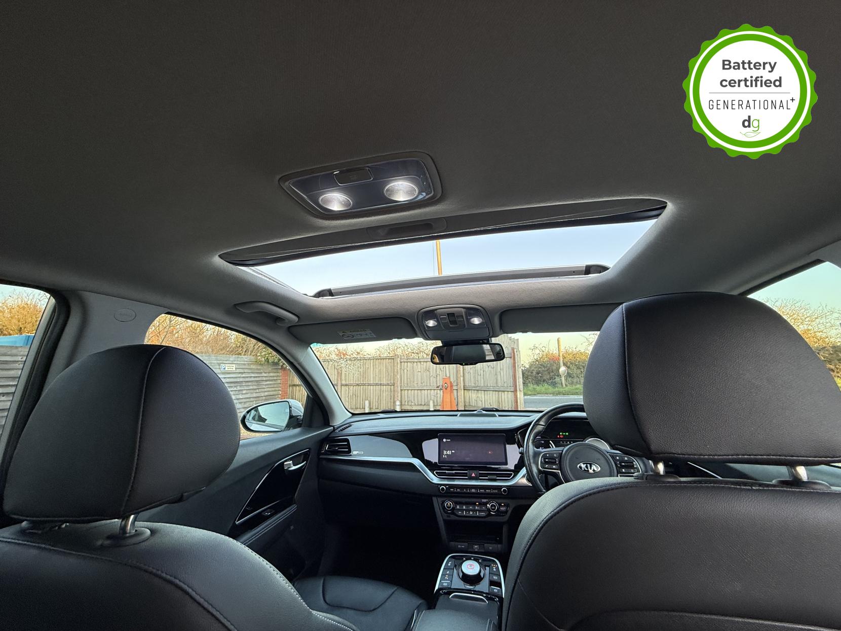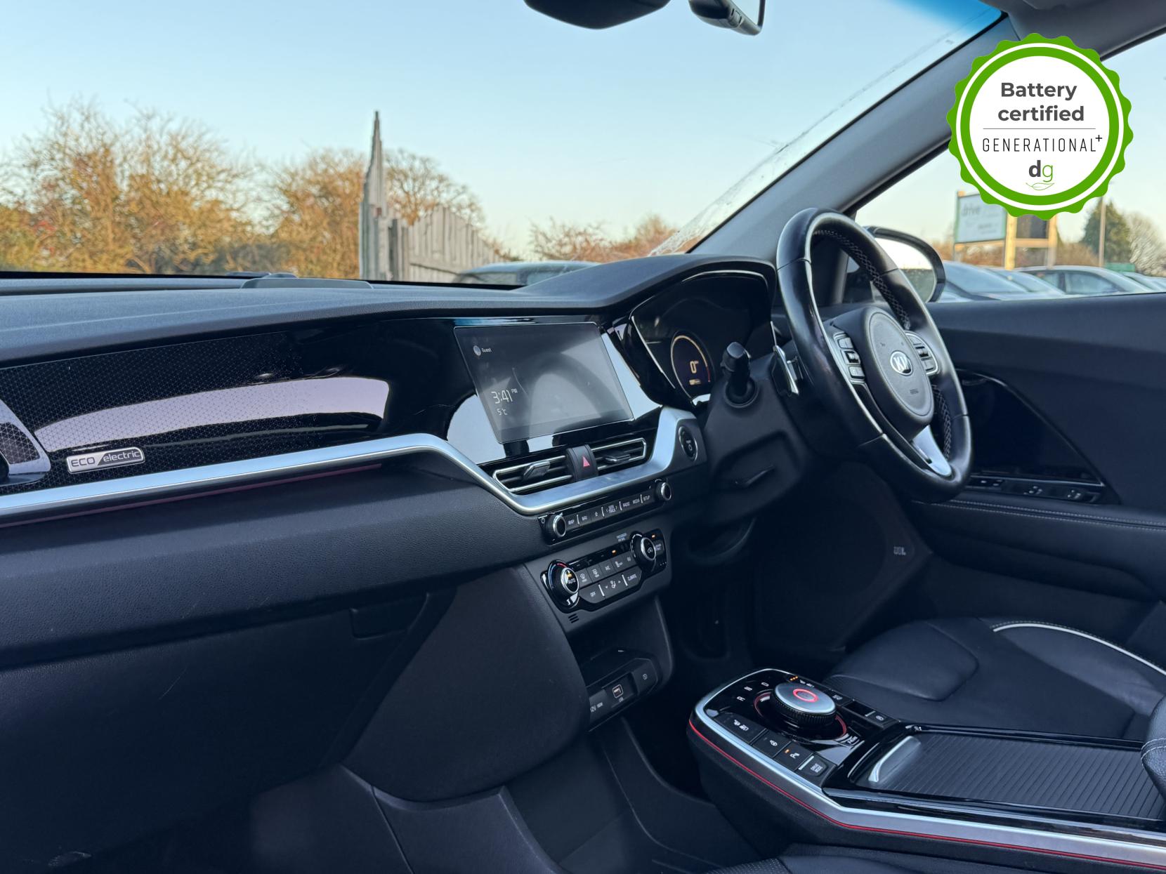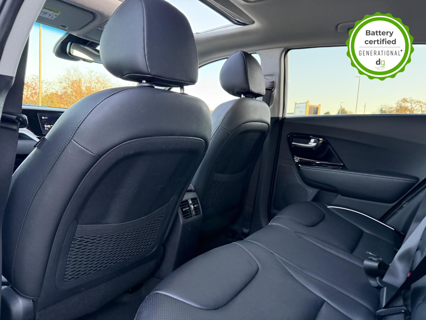 OVER £500 OF OPTIONAL EXTRAS! This E-Niro is in excellent condition and fully prepared to our high standard, has 2 keys, 1 previous owner, 5 prior services, and it is September 2026 until its next service and the end of June 2026 when its MOT is due. The E-Niro is a great all-rounder – a generously sized and practical family EV, with a real-world range of around 250-300 miles, depending on your driving style and time of year. The top spec 4+ E-Niro features some impressive spec. Opening pan roof, 17′ alloys, roof rails, power adjustable memory driver’s seat, heated leather front and rear seats, heated steering wheel, and an 8 speakers JBL premium sound system. The 4+ also comes with a HEAT PUMP, which is a high efficiency heating system to give you even greater range in the winter months. The E-Niro also features some great safety spec including adaptive cruise control with lane and follow assist, emergency stop signalling and a forward collision avoidance system. If you are looking for a long range practically sized family EV, this could be the perfect car for you. Unlike Car Supermarkets we have no hidden admin fees, there is no pressure selling, and we offer low finance rates. We also perform battery health checks on all our vehicles, so you can have the comfort of knowing the battery state of health of the EV you choose. Hopefully you will choose to buy your EV from Drive Green, as we are a multi award winning EV specialist and sustainable business, here to help you get the most from your switch to electric driving. Contact us to book an appointment to view and test drive this car, or to find out more about switching to electric driving, and to discuss purchase options, including buying on finance, and our remote buying and delivery service. We are also able to supply your home charge point also, making the switch to electric driving super easy for you. Drive Green is a true EV specialist and the UK’s biggest electric car only dealership, since 2017. FORECOURT VISITS AND TEST DRIVES BY APPOINTMENT ONLY.