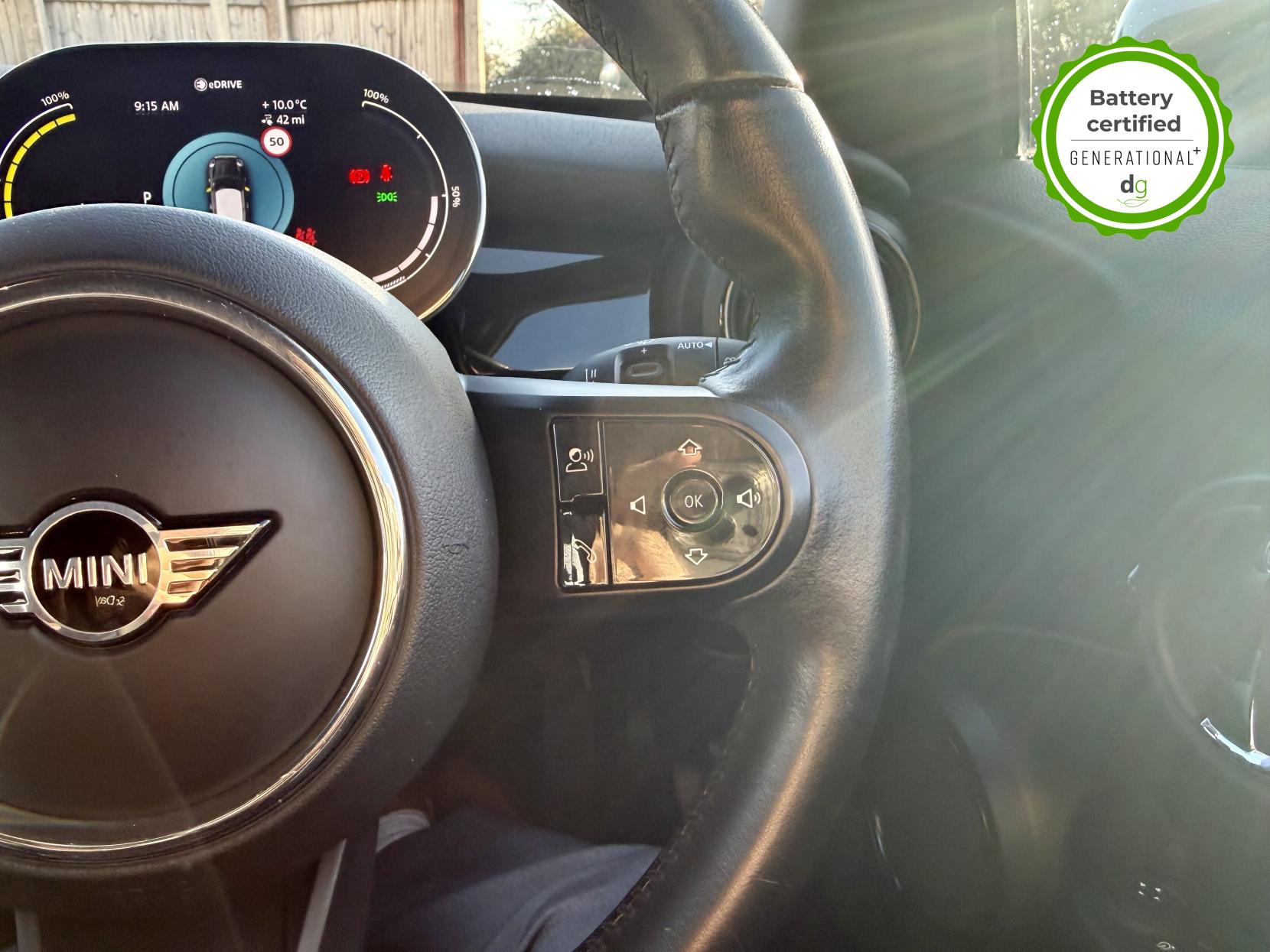This particular car is in excellent condition and fully prepared to our high standard, has 2 keys and it is August 2026 until its next MOT or service is due. It is also reading an excellent 96% battery state of health! With a 33 kWh battery pack, the Electric Mini is capable of about 130 miles of real-world driving range, depending on the time of year and your driving style. This Level 2 model has loads of great spec – Mini XL Satellite Navigation, Digital Cockpit, 17in Cosmos Spoke Alloy Wheels, LED Headlights, Reversing Camera, Heated Seats, Bluetooth Phone + Audio Streaming, DAB, Traffic Sign Recognition, Apple CarPlay, Ambient interior lighting, MINI Excitement Pack, Navigation Pack, Storage Compartment Pack, Interior Light Pack, Comfort Access, Cruise Control, Half Leather, Driving Modes, Parking Sensors, Dual Zone Digital Climate Control, LED Daytime Running Lights, Charging Leads, Auto Headlights, Electric Folding Mirrors, USB Audio, Split Folding Rear Seats, Multi-Function Steering Wheel, Road sign recognition, Electronic hand brake, Electric Windows, and road sign recognition. It is also possibly the most enjoyable EV to drive, being both zippy and nimble with incredible handling – it is definitely one of our favourite EV’s to drive. If you are looking for a compact EV, that is a brilliant car to drive and with lots of great spec, then this could be the perfect electric car for you. Unlike Car Supermarkets we have no hidden admin fees, there is no pressure selling, and we offer low finance rates. We also perform battery health checks on all our vehicles, so you can have the comfort of knowing the battery state of health of the EV you choose. Hopefully you will choose to buy your EV from Drive Green, as we are a multi award winning EV specialist and sustainable business, here to help you get the most from your switch to electric driving. Contact us to book an appointment to view and test drive this car, or to find out more about switching to electric driving, and to discuss purchase options, including buying on finance, and our remote buying and delivery service. We are also able to supply your home charge point also, making the switch to electric driving super easy for you. Drive Green is a true EV specialist and the UK’s biggest electric car only dealership, since 2017. FORECOURT VISITS AND TEST DRIVES BY APPOINTMENT ONLY.