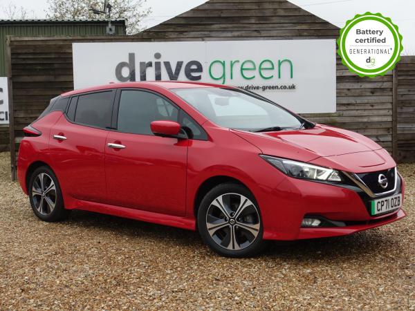 This car is in excellent condition and fully prepared to our high standard, has 1 previous owner, and it will be December 2026 until its next service or MOT is due. The Nissan Leaf E+N-Connecta comes packed with lots of tech and features including lots of hi-tech driver safety features. It also has heated front and rear seats and steering wheel, and a 360o camera system with front and rear sensors. It has half faux Leather seats, and is also Apple Car Play and Android Auto integrated. The 62kWh Leaf has a 240 mile real world range approx. depending on driving style and time of year. DC rapid charging (up to 80% charge in approx. 50 mins). If you are looking for a high spec, spacious, well-made, and practical family EV, this is a very high-quality car, and could be the ideal EV for you. Unlike Car Supermarkets we have no hidden admin fees, there is no pressure selling, and we offer low finance rates. We also perform battery health checks on all our vehicles, so you can have the comfort of knowing the battery state of health of the EV you choose. Hopefully you will choose to buy your EV from Drive Green, as we are a multi award winning EV specialist and sustainable business, here to help you get the most from your switch to electric driving. Contact us to book an appointment to view and test drive this car, or to find out more about switching to electric driving, and to discuss purchase options, including buying on finance, and our remote buying and delivery service. We are also able to supply your home charge point also, making the switch to electric driving super easy for you. Drive Green is a true EV specialist and the UK’s biggest electric car only dealership, since 2017. FORECOURT VISITS AND TEST DRIVES BY APPOINTMENT ONLY.