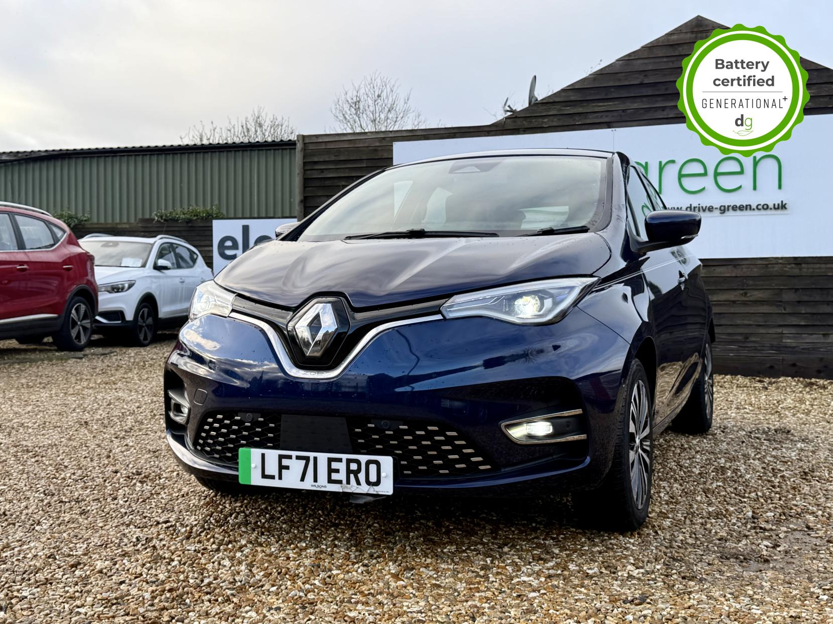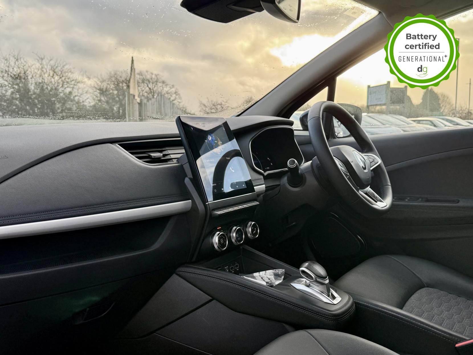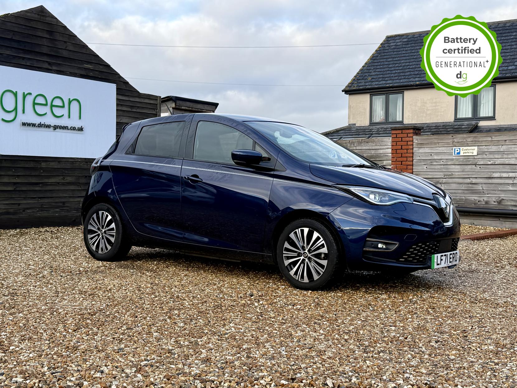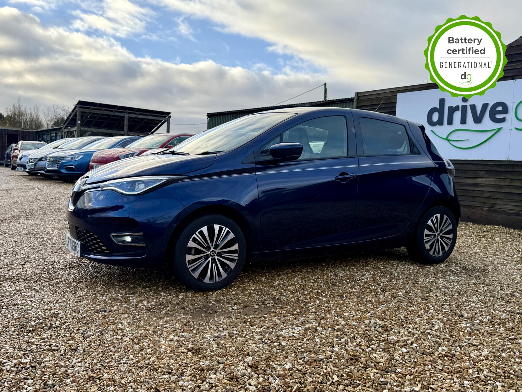 This particular Zoe is in excellent condition and fully prepared to our high standard, has 2 keys, 1 previous owner, a FSH, 4 prior services, and it will be December 2026 until its next service and the end of Septemeber 2026 when its next MOT is due. The 50kWh Renault Zoe has approx. 200-220 miles of driving range, depending on your driving style and time of year, and comes standard with LED headlights, an electronic handbrake and rear sweeping indicators. The particular car comes with the optional rapid charge feature, which means you can charge about 100 miles of range back into the car in a 30 minute charging stop. The limted edition Reviera model has the GT LINE trim and includes some great spec, including automatic lights and wipers, cruise control, front fog lights keyless entry, 9.3′ infotainment screen with SAT NAV, front and rear parking sensors and a reversing camera and stylish diamond cut alloys. If you are after a great value EV with 200+ miles of driving range and plenty of style and spec this could be the perfect EV for you. Unlike Car Supermarkets we have no hidden admin fees, there is no pressure selling, and we offer low finance rates. We also perform battery health checks on all our vehicles, so you can have the comfort of knowing the battery state of health of the EV you choose. Hopefully you will choose to buy your EV from Drive Green, as we are a multi award winning EV specialist and sustainable business, here to help you get the most from your switch to electric driving. Contact us to book an appointment to view and test drive this car, or to find out more about switching to electric driving, and to discuss purchase options, including buying on finance, and our remote buying and delivery service. We are also able to supply your home charge point also, making the switch to electric driving super easy for you. Drive Green is a true EV specialist and the UK’s biggest electric car only dealership, since 2017. FORECOURT VISITS AND TEST DRIVES BY APPOINTMENT ONLY.