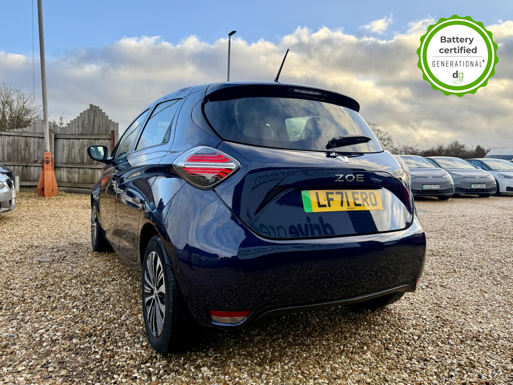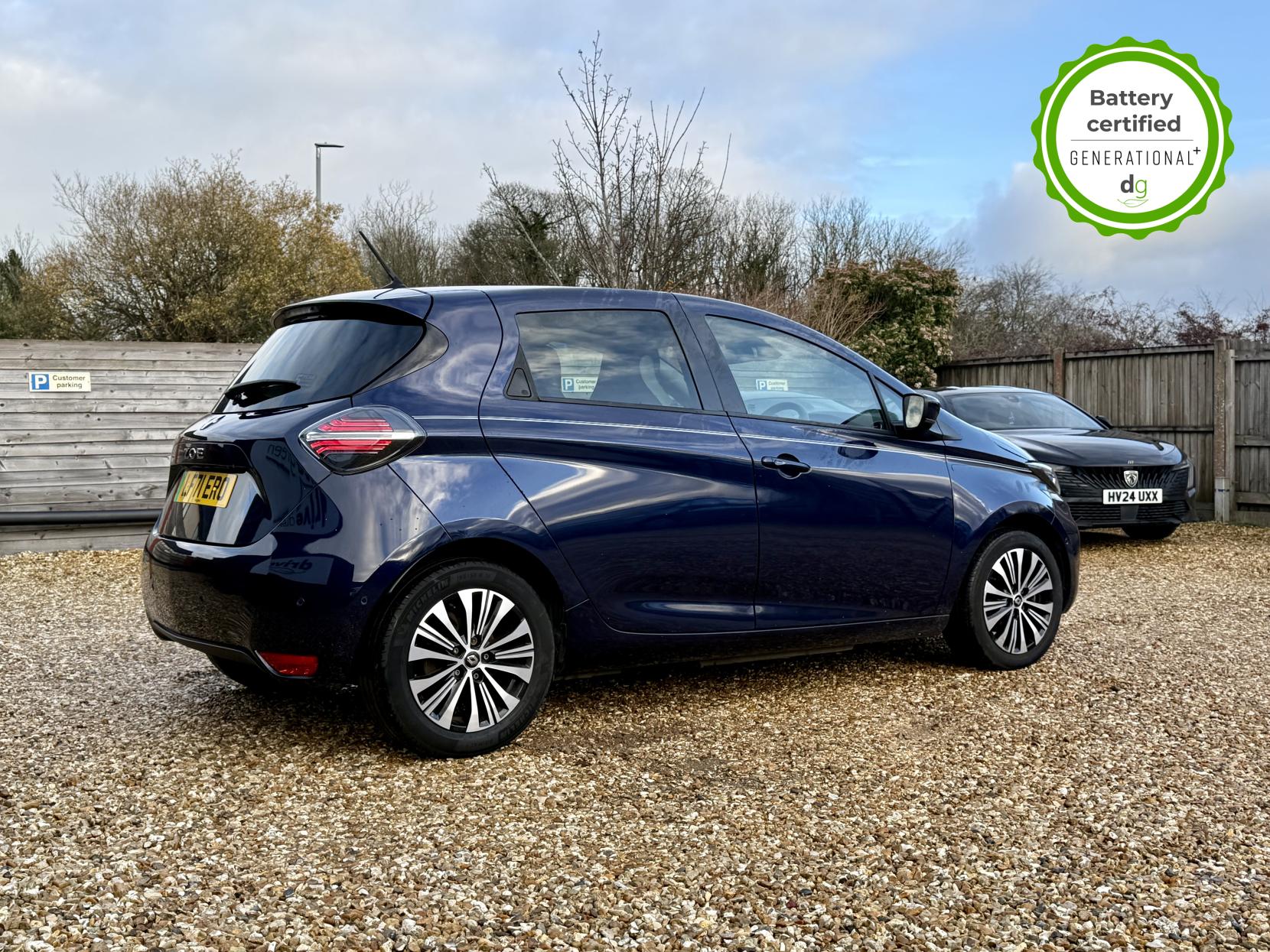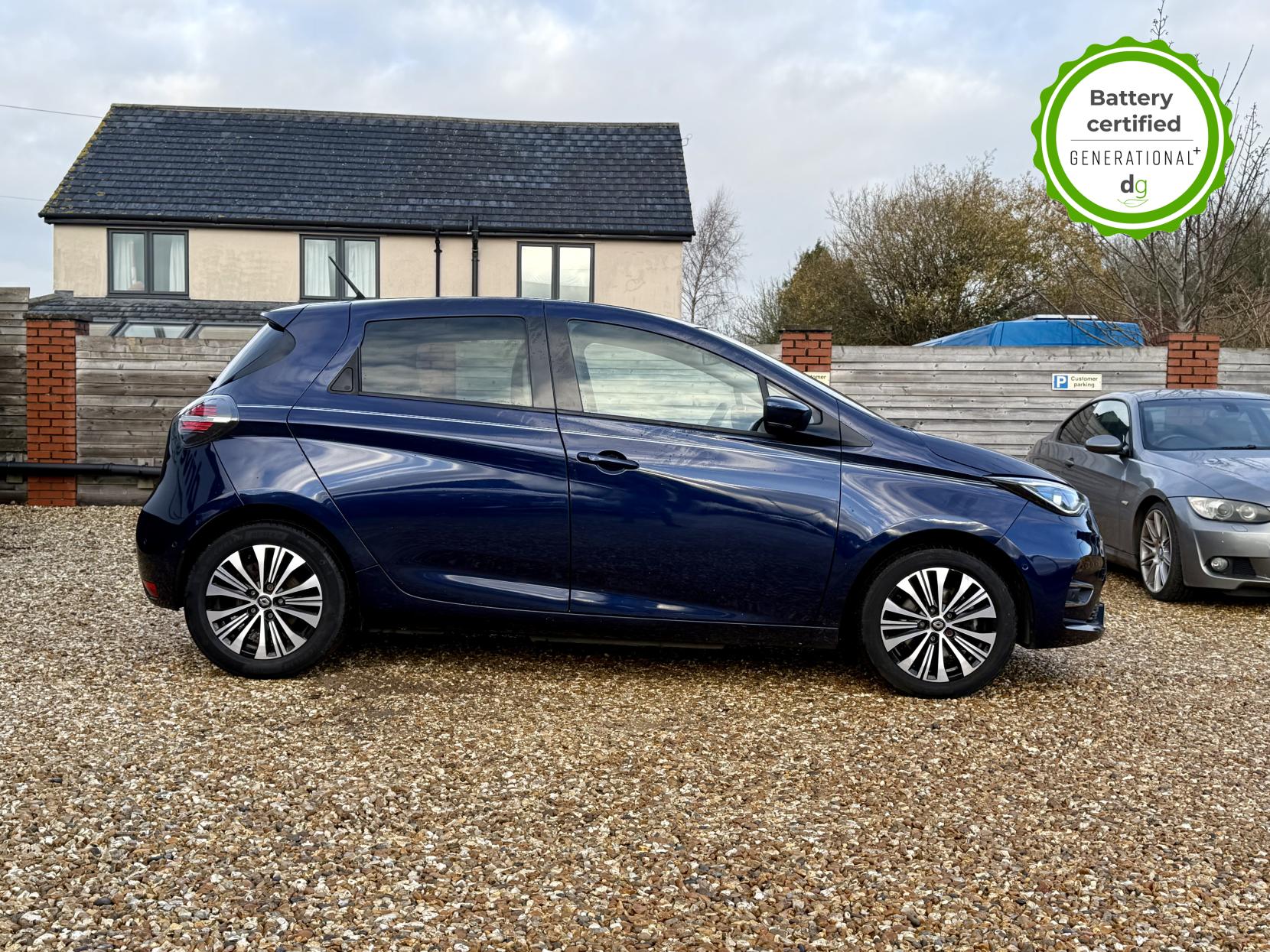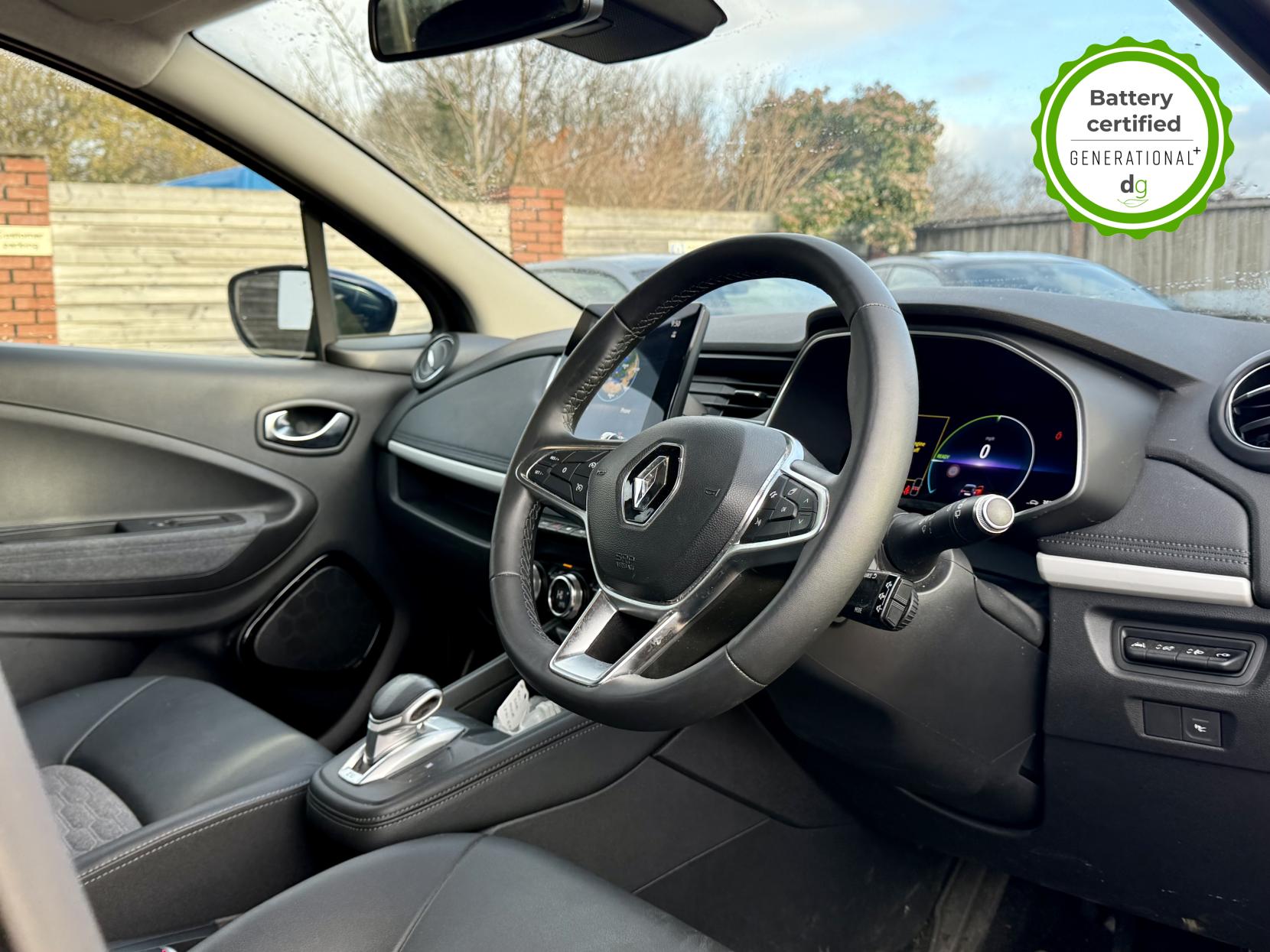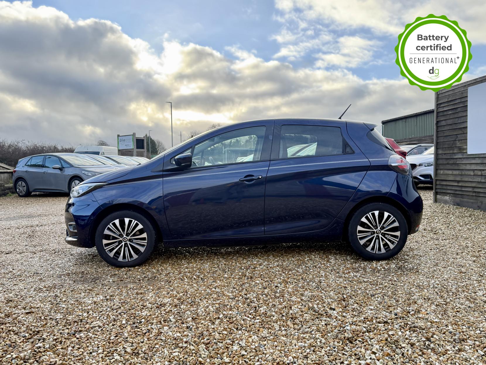 This particular Zoe is in excellent condition and fully prepared to our high standard, has 2 keys, 1 previous owner, a FSH, 4 prior services, and it will be December 2026 until its next service and the end of Septemeber 2026 when its next MOT is due. The 50kWh Renault Zoe has approx. 200-220 miles of driving range, depending on your driving style and time of year, and comes standard with LED headlights, an electronic handbrake and rear sweeping indicators. The particular car comes with the optional rapid charge feature, which means you can charge about 100 miles of range back into the car in a 30 minute charging stop. The limted edition Reviera model has the GT LINE trim and includes some great spec, including automatic lights and wipers, cruise control, front fog lights keyless entry, 9.3′ infotainment screen with SAT NAV, front and rear parking sensors and a reversing camera and stylish diamond cut alloys. If you are after a great value EV with 200+ miles of driving range and plenty of style and spec this could be the perfect EV for you. Unlike Car Supermarkets we have no hidden admin fees, there is no pressure selling, and we offer low finance rates. We also perform battery health checks on all our vehicles, so you can have the comfort of knowing the battery state of health of the EV you choose. Hopefully you will choose to buy your EV from Drive Green, as we are a multi award winning EV specialist and sustainable business, here to help you get the most from your switch to electric driving. Contact us to book an appointment to view and test drive this car, or to find out more about switching to electric driving, and to discuss purchase options, including buying on finance, and our remote buying and delivery service. We are also able to supply your home charge point also, making the switch to electric driving super easy for you. Drive Green is a true EV specialist and the UK’s biggest electric car only dealership, since 2017. FORECOURT VISITS AND TEST DRIVES BY APPOINTMENT ONLY.