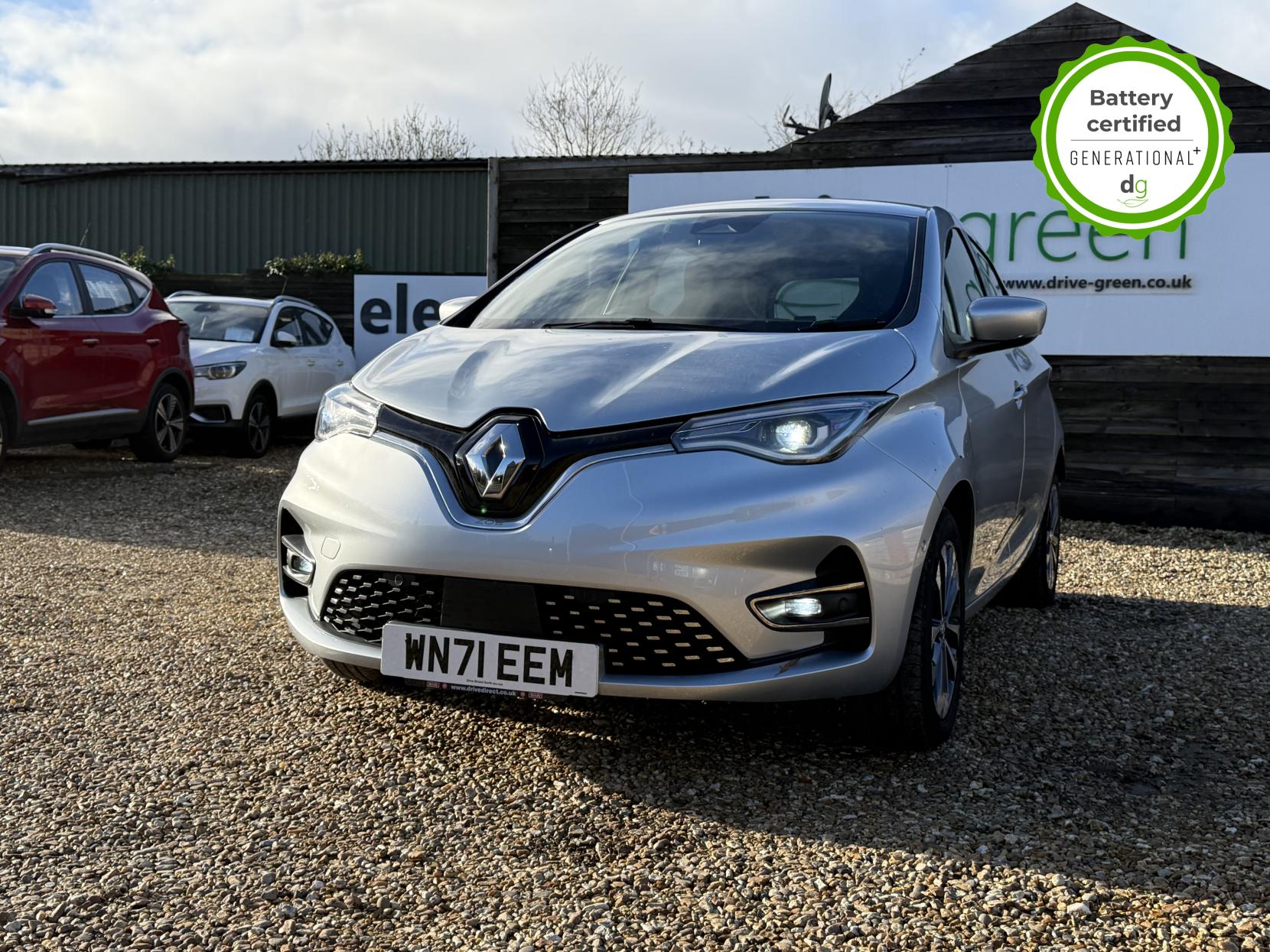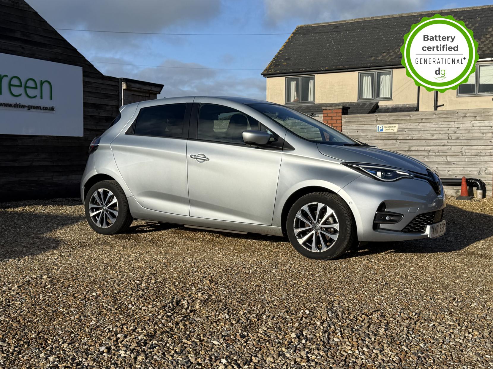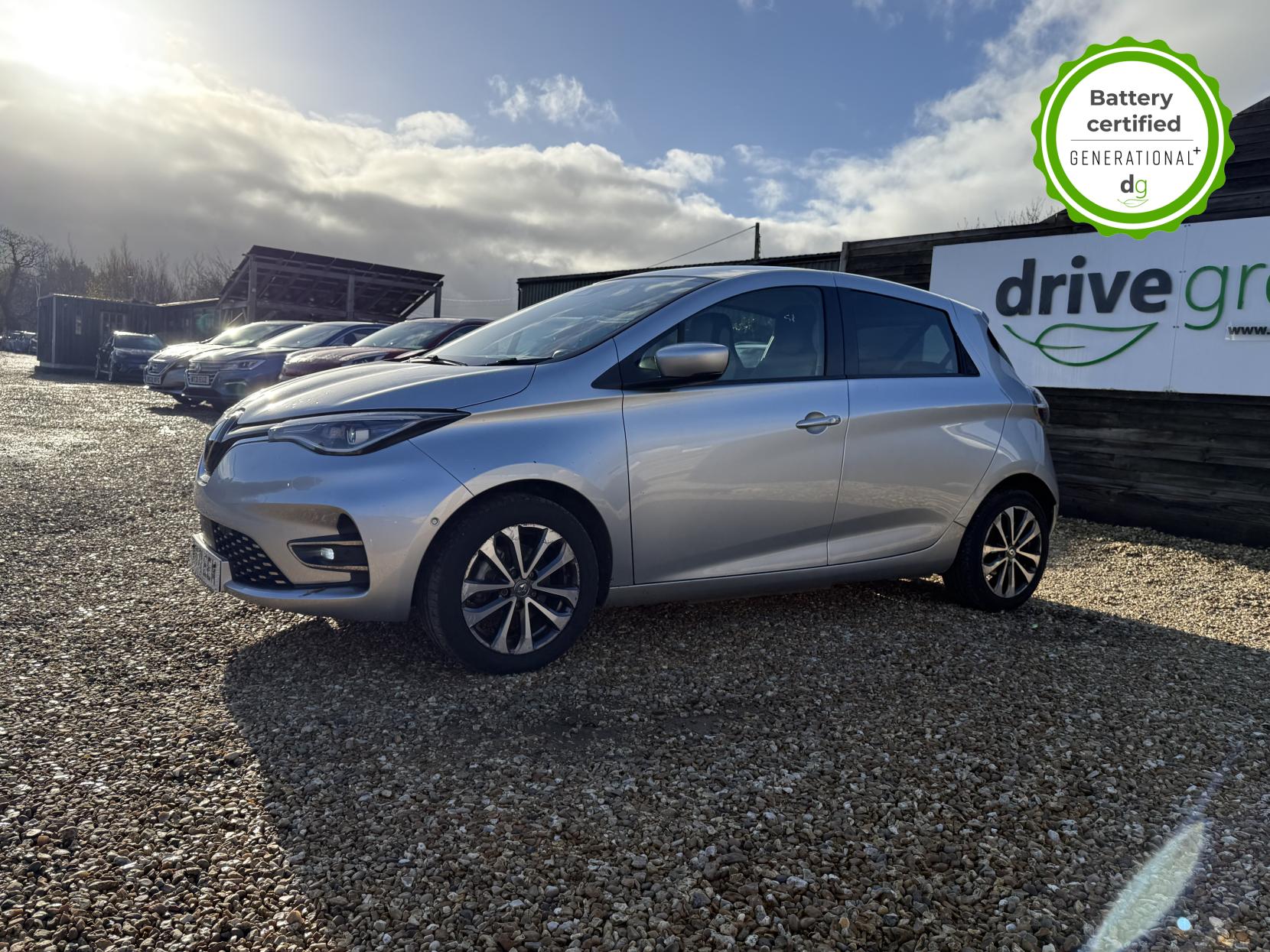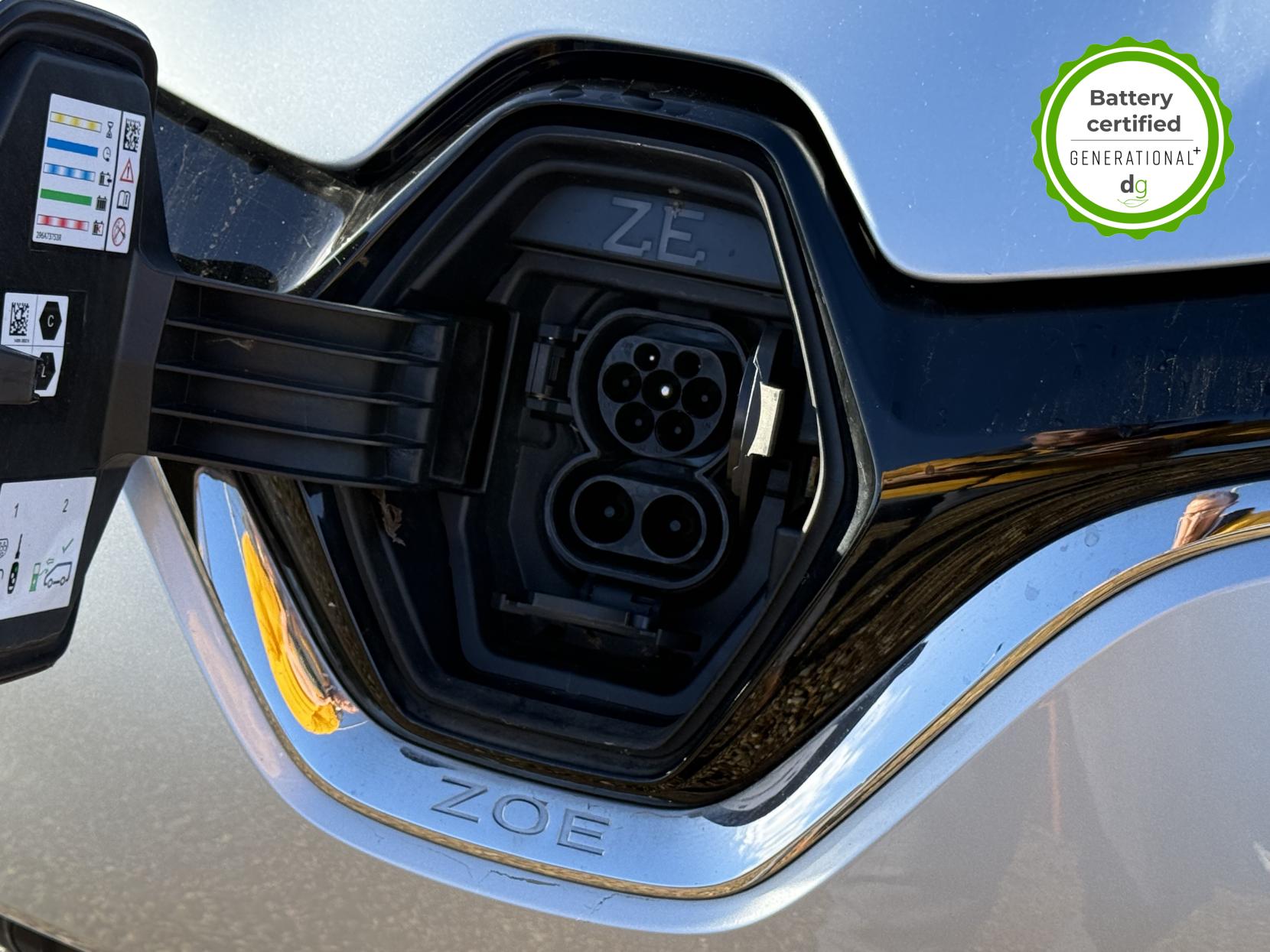 OVER £600 OF OPTIONAL EXTRAS! This particular Zoe is in excellent condition and fully prepared to our high standard, has 2 keys, 1 previous owner, 4 prior services, and it is Septemeber 2026 until its next service or MOT is due. The 50kWh Renault Zoe has approx. 200-220 miles of driving range, depending on your driving style and time of year, and comes standard with LED headlights, an electronic handbrake and rear sweeping indicators. The particular car comes with the optional rapid charge feature, which means you can charge about 100 miles of range back into the car in a 30 minute charging stop. The GT LINE trim level includes some great spec, including automatic lights and wipers, cruise control, front fog lights keyless entry, 9.3′ infotainment screen with SAT NAV, front and rear parking sensors and a reversing camera and stylish diamond cut alloys. If you are after a great value EV with 200+ miles of driving range and plenty of style and spec this could be the perfect EV for you. Unlike Car Supermarkets we have no hidden admin fees, there is no pressure selling, and we offer low finance rates. We also perform battery health checks on all our vehicles, so you can have the comfort of knowing the battery state of health of the EV you choose. Hopefully you will choose to buy your EV from Drive Green, as we are a multi award winning EV specialist and sustainable business, here to help you get the most from your switch to electric driving. Contact us to book an appointment to view and test drive this car, or to find out more about switching to electric driving, and to discuss purchase options, including buying on finance, and our remote buying and delivery service. We are also able to supply your home charge point also, making the switch to electric driving super easy for you. Drive Green is a true EV specialist and the UK’s biggest electric car only dealership, since 2017. FORECOURT VISITS AND TEST DRIVES BY APPOINTMENT ONLY.