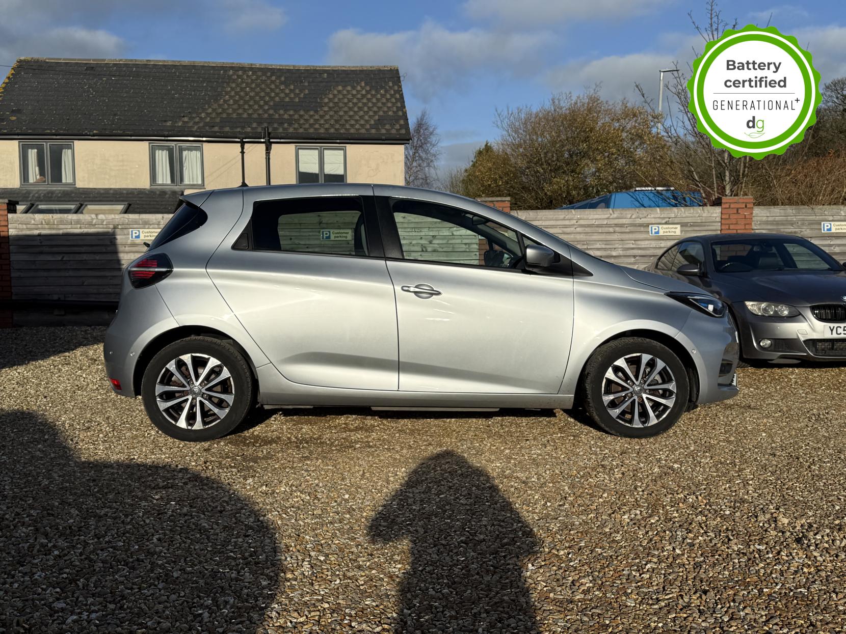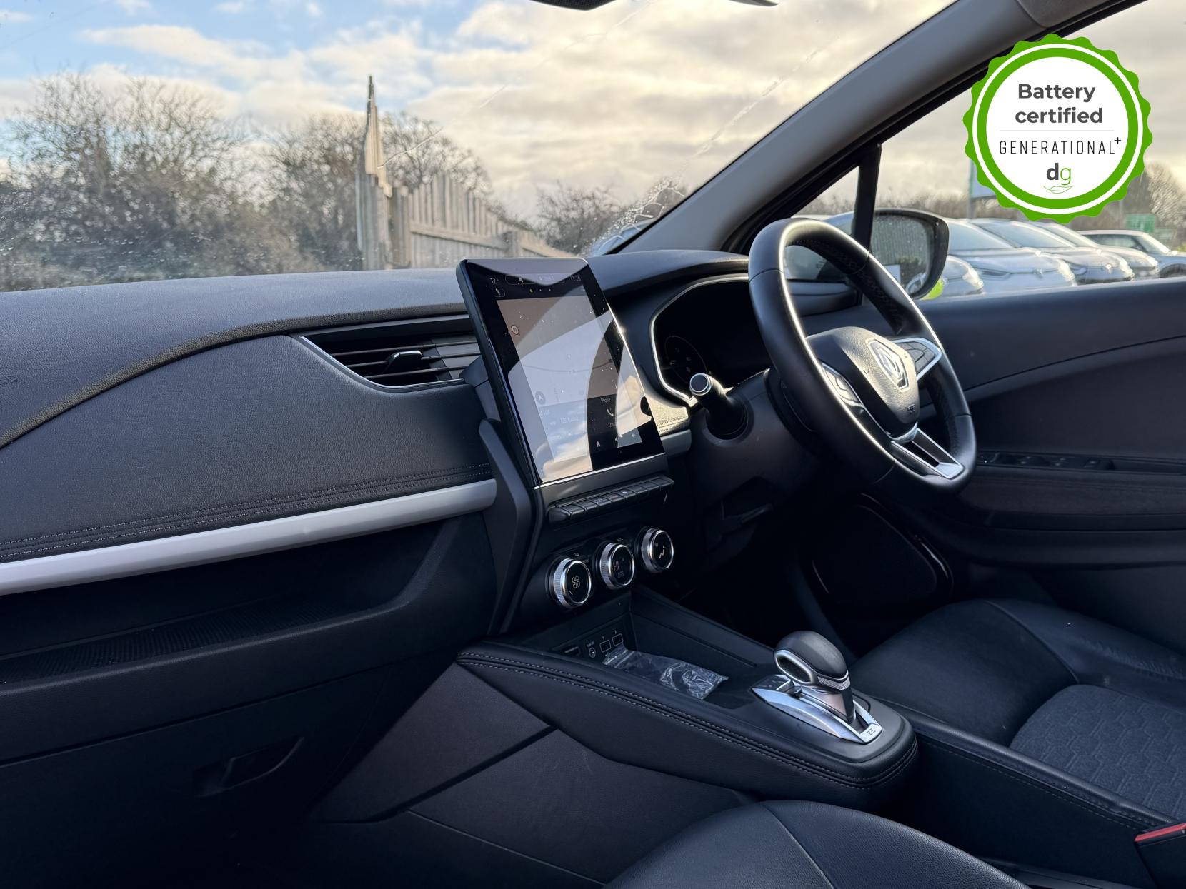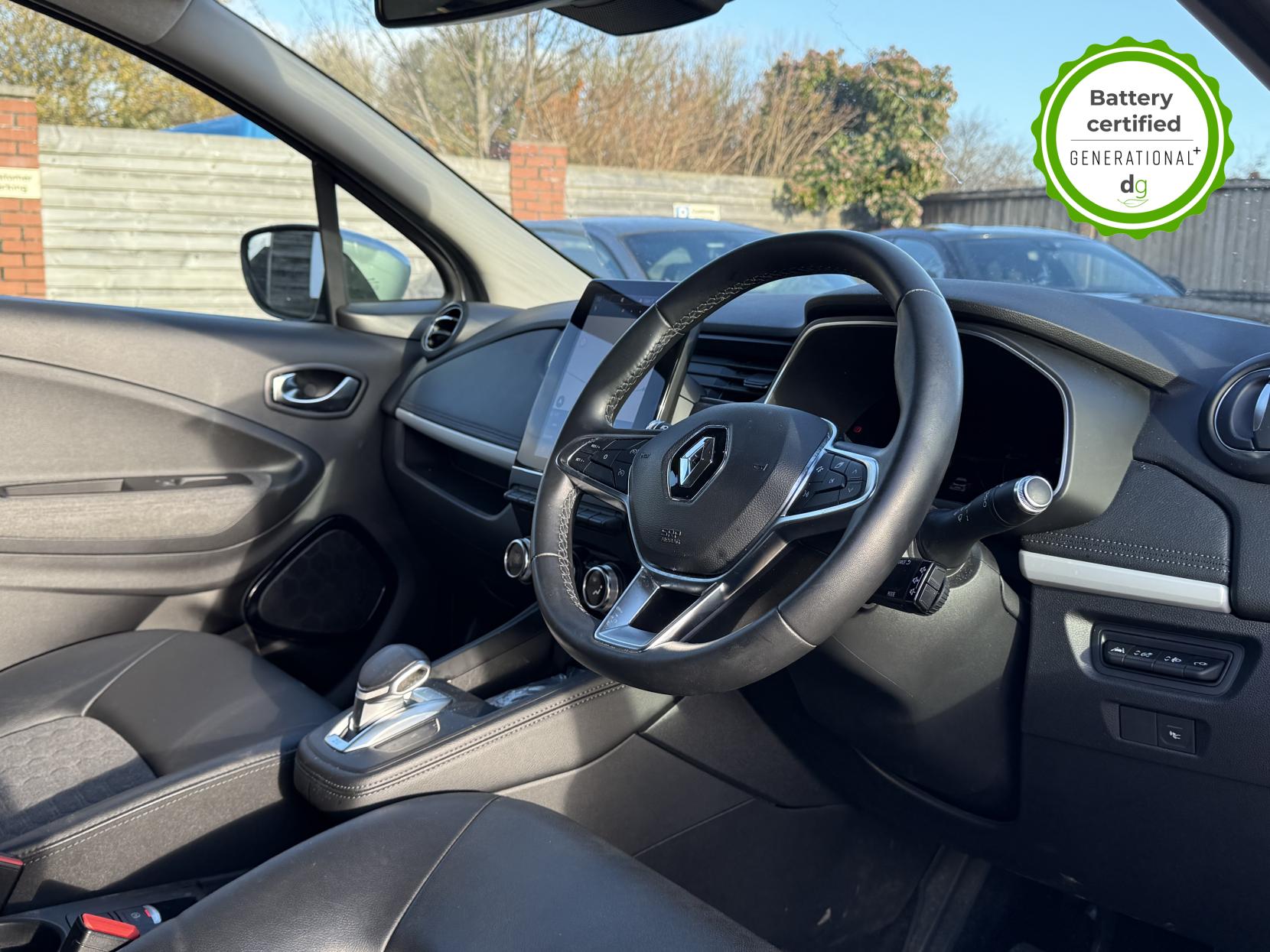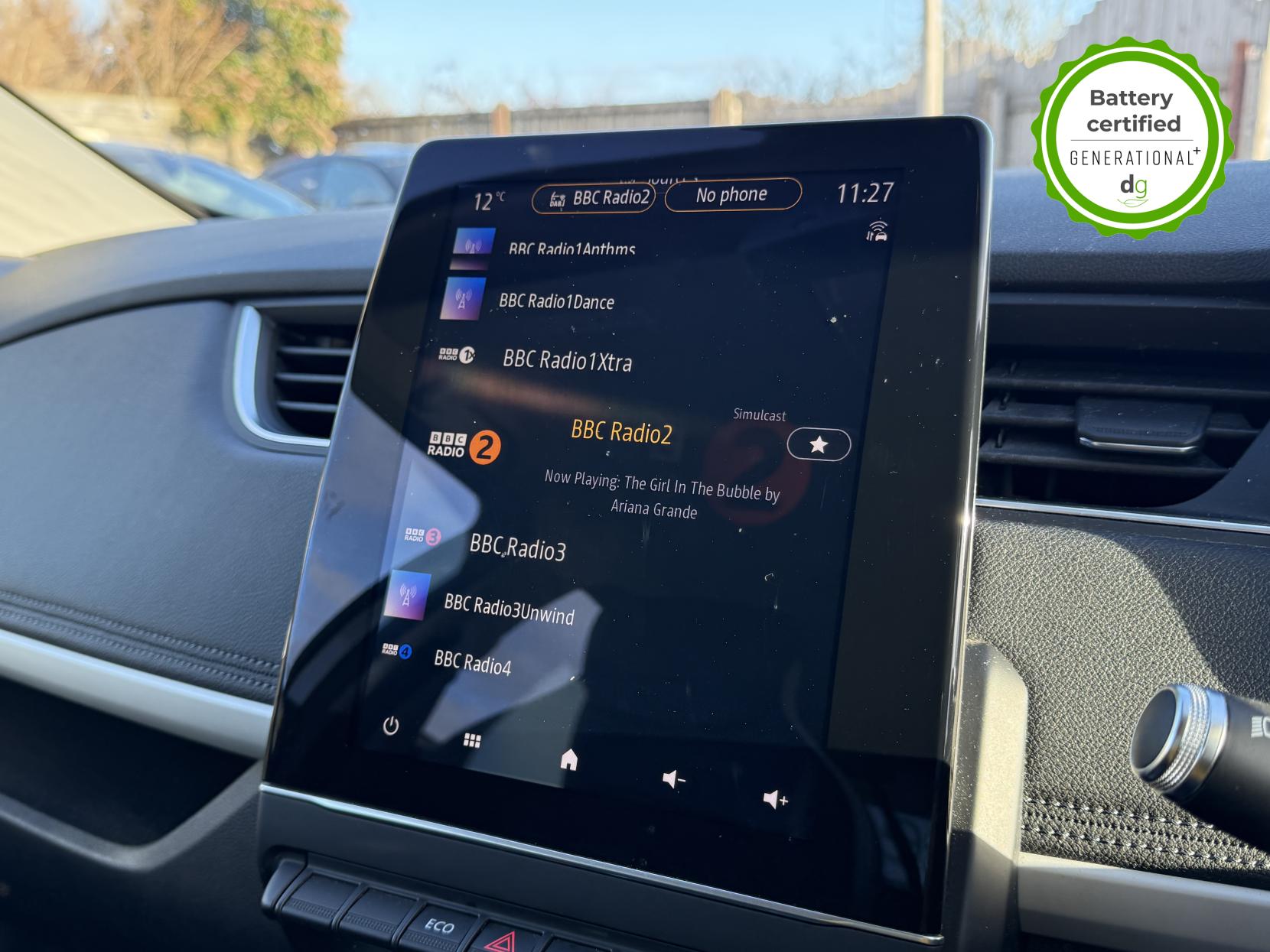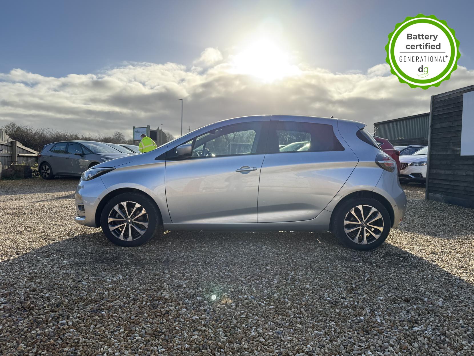 OVER £600 OF OPTIONAL EXTRAS! This particular Zoe is in excellent condition and fully prepared to our high standard, has 2 keys, 1 previous owner, 4 prior services, and it is Septemeber 2026 until its next service or MOT is due. The 50kWh Renault Zoe has approx. 200-220 miles of driving range, depending on your driving style and time of year, and comes standard with LED headlights, an electronic handbrake and rear sweeping indicators. The particular car comes with the optional rapid charge feature, which means you can charge about 100 miles of range back into the car in a 30 minute charging stop. The GT LINE trim level includes some great spec, including automatic lights and wipers, cruise control, front fog lights keyless entry, 9.3′ infotainment screen with SAT NAV, front and rear parking sensors and a reversing camera and stylish diamond cut alloys. If you are after a great value EV with 200+ miles of driving range and plenty of style and spec this could be the perfect EV for you. Unlike Car Supermarkets we have no hidden admin fees, there is no pressure selling, and we offer low finance rates. We also perform battery health checks on all our vehicles, so you can have the comfort of knowing the battery state of health of the EV you choose. Hopefully you will choose to buy your EV from Drive Green, as we are a multi award winning EV specialist and sustainable business, here to help you get the most from your switch to electric driving. Contact us to book an appointment to view and test drive this car, or to find out more about switching to electric driving, and to discuss purchase options, including buying on finance, and our remote buying and delivery service. We are also able to supply your home charge point also, making the switch to electric driving super easy for you. Drive Green is a true EV specialist and the UK’s biggest electric car only dealership, since 2017. FORECOURT VISITS AND TEST DRIVES BY APPOINTMENT ONLY.