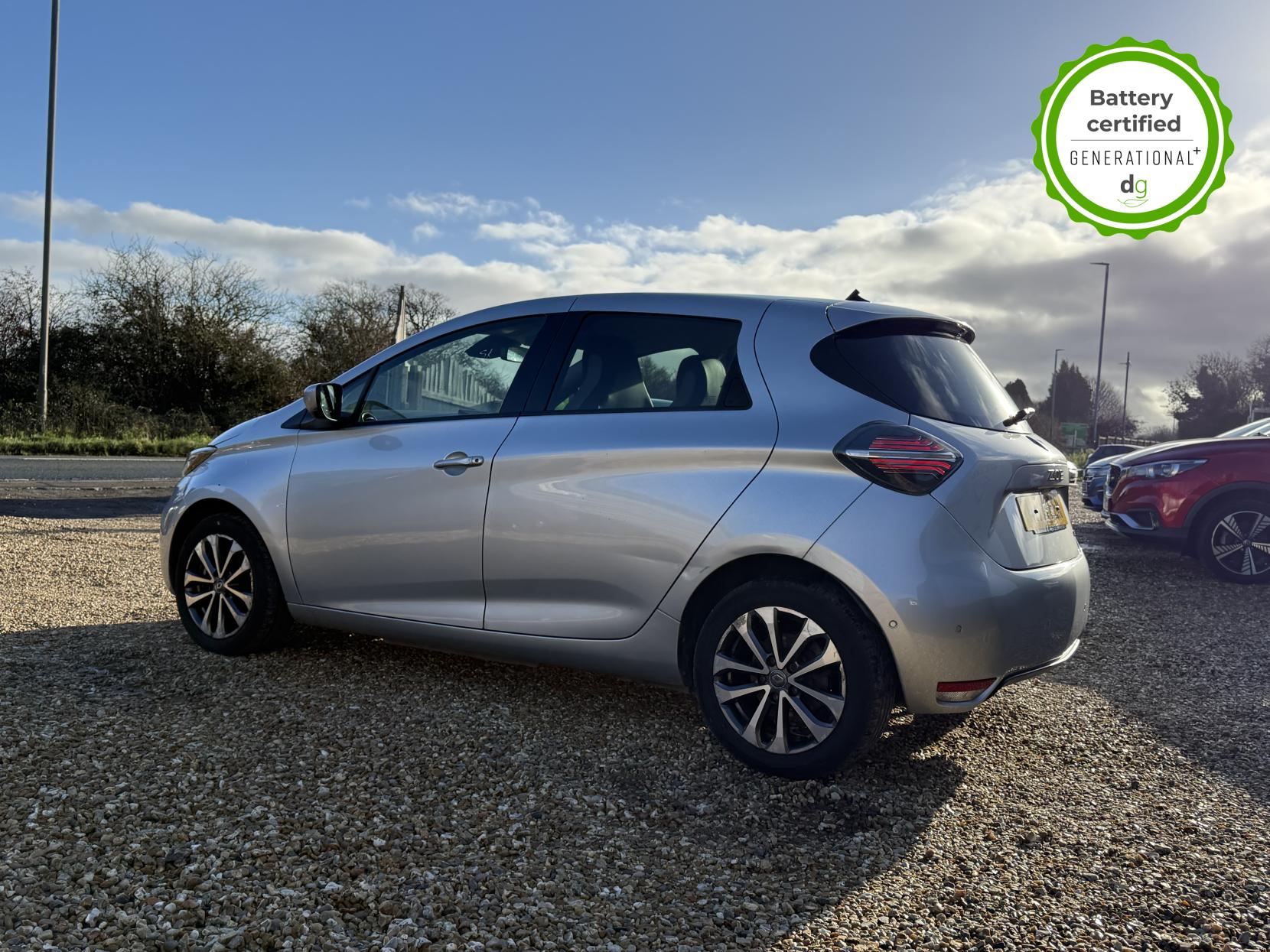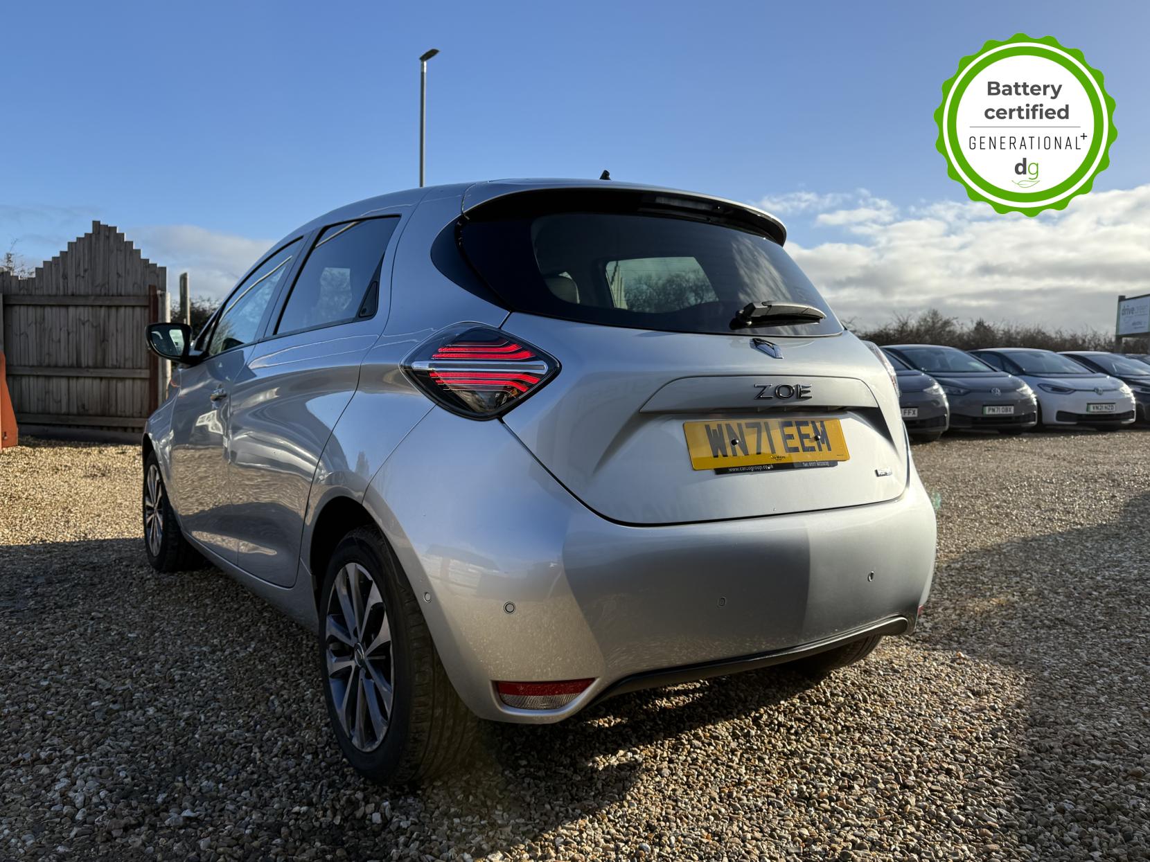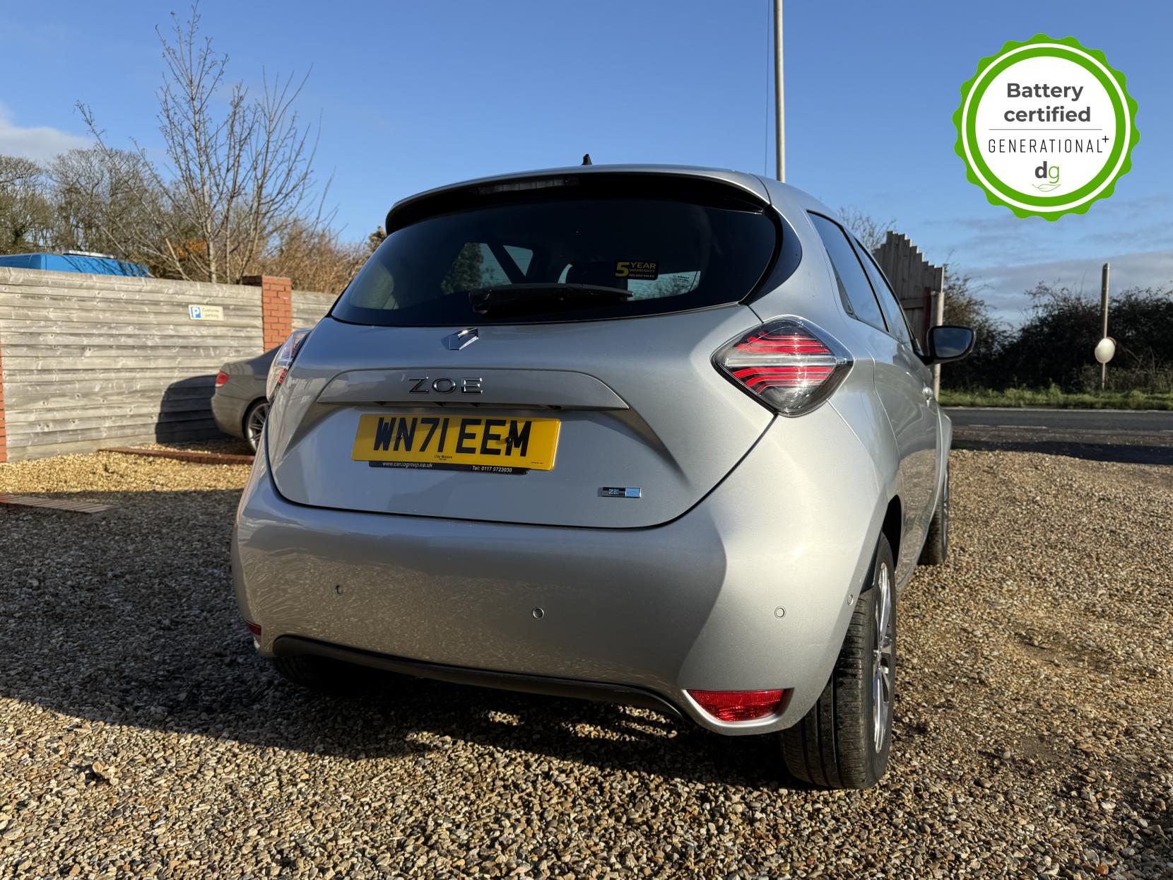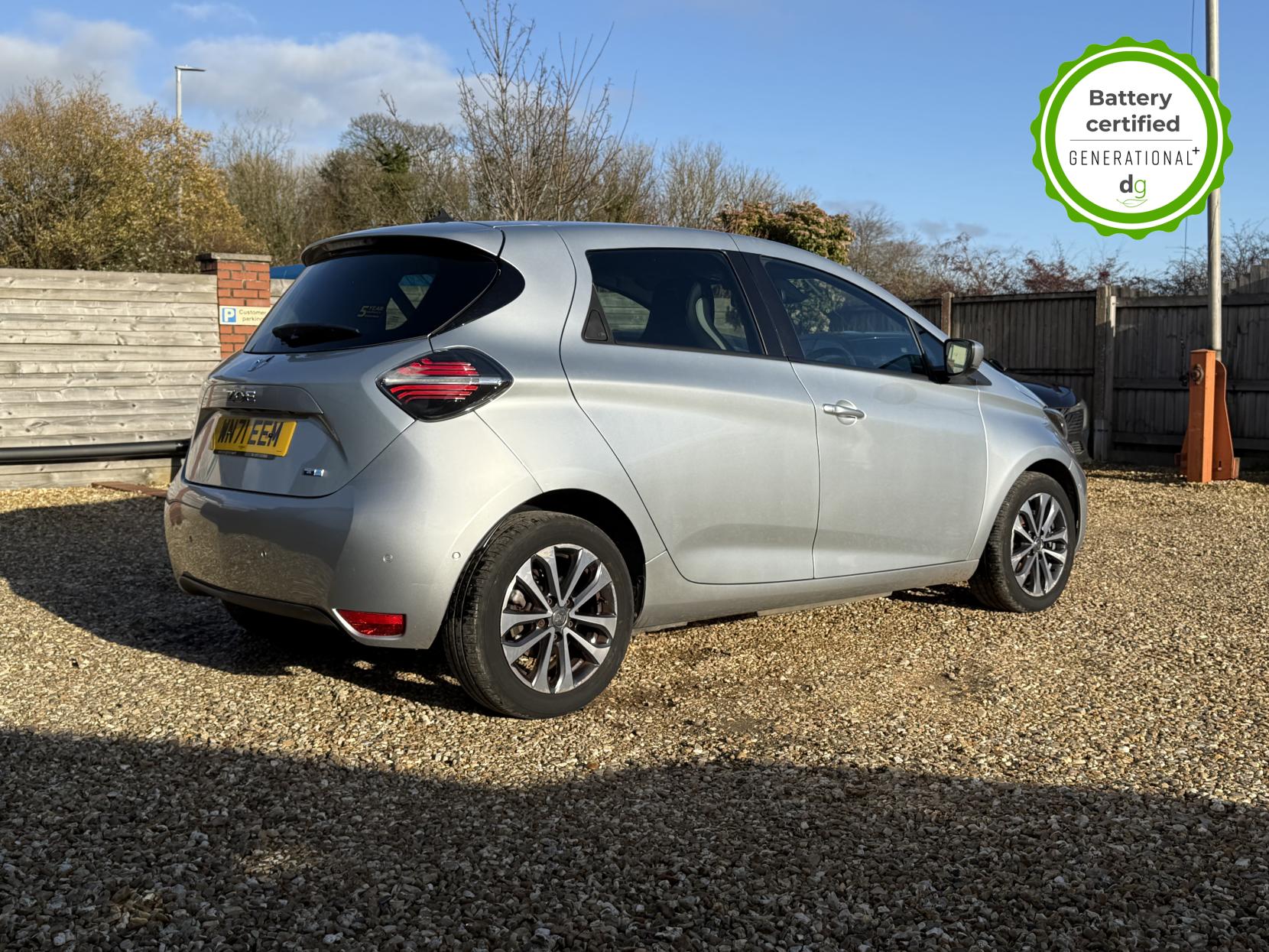 OVER £600 OF OPTIONAL EXTRAS! This particular Zoe is in excellent condition and fully prepared to our high standard, has 2 keys, 1 previous owner, 4 prior services, and it is Septemeber 2026 until its next service or MOT is due. The 50kWh Renault Zoe has approx. 200-220 miles of driving range, depending on your driving style and time of year, and comes standard with LED headlights, an electronic handbrake and rear sweeping indicators. The particular car comes with the optional rapid charge feature, which means you can charge about 100 miles of range back into the car in a 30 minute charging stop. The GT LINE trim level includes some great spec, including automatic lights and wipers, cruise control, front fog lights keyless entry, 9.3′ infotainment screen with SAT NAV, front and rear parking sensors and a reversing camera and stylish diamond cut alloys. If you are after a great value EV with 200+ miles of driving range and plenty of style and spec this could be the perfect EV for you. Unlike Car Supermarkets we have no hidden admin fees, there is no pressure selling, and we offer low finance rates. We also perform battery health checks on all our vehicles, so you can have the comfort of knowing the battery state of health of the EV you choose. Hopefully you will choose to buy your EV from Drive Green, as we are a multi award winning EV specialist and sustainable business, here to help you get the most from your switch to electric driving. Contact us to book an appointment to view and test drive this car, or to find out more about switching to electric driving, and to discuss purchase options, including buying on finance, and our remote buying and delivery service. We are also able to supply your home charge point also, making the switch to electric driving super easy for you. Drive Green is a true EV specialist and the UK’s biggest electric car only dealership, since 2017. FORECOURT VISITS AND TEST DRIVES BY APPOINTMENT ONLY.