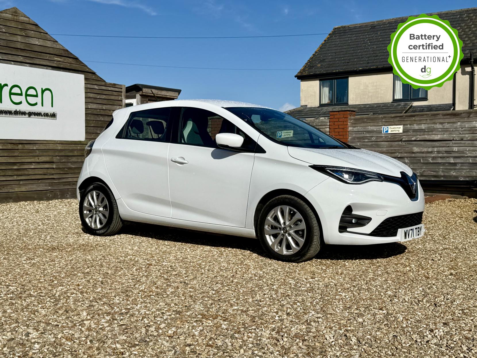 This particular Zoe is in excellent condition and fully prepared to our high standard, has 2 keys, 1 previous owner, and it will be April 2027 until its next service or MOT is due. It also has an excellent and above average 95% battery health. The 50kWh Renault Zoe has approx. 200-220 miles of driving range, depending on your driving style and time of year, and come as standard with LED headlights, an electronic handbrake, and rear sweeping indicators. This particular car comes with the optional CSS rapid charge feature, which means you can charge about 100 miles of range back into the car in about 30 minutes of charging time. The iconic trim level has some great spec, including automatic lights and wipers, cruise control, speed limiter, front fog lights and keyless entry. If you are after a great value EV with 200+ miles of driving range and plenty of style this could be the perfect EV for you. Unlike Car Supermarkets we have no hidden admin fees, there is no pressure selling, and we offer low finance rates. We also perform battery health checks on all our vehicles, so you can have the comfort of knowing the battery state of health of the EV you choose. Hopefully you will choose to buy your EV from Drive Green, as we are a multi award winning EV specialist and sustainable business, here to help you get the most from your switch to electric driving. Contact us to book an appointment to view and test drive this car, or to find out more about switching to electric driving, and to discuss purchase options, including buying on finance, and our remote buying and delivery service. We are also able to supply your home charge point also, making the switch to electric driving super easy for you. Drive Green is a true EV specialist and the UK’s biggest electric car only dealership, since 2017. FORECOURT VISITS AND TEST DRIVES BY APPOINTMENT ONLY.