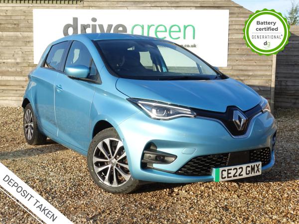 This particular Zoe is in excellent condition and fully prepared to our high standard, has 2 keys, 1 previous owner, 4 prior services, and it will be November 2026 until its next service and the end of June 2026 when its MOT is due. The 50kWh Renault Zoe has approx. 200-220 miles of driving range, depending on your driving style and time of year, and comes standard with LED headlights, an electronic handbrake and rear sweeping indicators. The particular car comes with the optional rapid charge feature, which means you can charge about 100 miles of range back into the car in a 30 minute charging stop. The GT LINE trim level includes some great spec, including automatic lights and wipers, cruise control, front fog lights keyless entry, 9.3′ infotainment screen with SAT NAV, front and rear parking sensors and a reversing camera and stylish diamond cut alloys. If you are after a great value EV with 200+ miles of driving range and plenty of style and spec this could be the perfect EV for you. Unlike Car Supermarkets we have no hidden admin fees, there is no pressure selling, and we offer low finance rates. We also perform battery health checks on all our vehicles, so you can have the comfort of knowing the battery state of health of the EV you choose. Hopefully you will choose to buy your EV from Drive Green, as we are a multi award winning EV specialist and sustainable business, here to help you get the most from your switch to electric driving. Contact us to book an appointment to view and test drive this car, or to find out more about switching to electric driving, and to discuss purchase options, including buying on finance, and our remote buying and delivery service. We are also able to supply your home charge point also, making the switch to electric driving super easy for you. Drive Green is a true EV specialist and the UK’s biggest electric car only dealership, since 2017. FORECOURT VISITS AND TEST DRIVES BY APPOINTMENT ONLY.