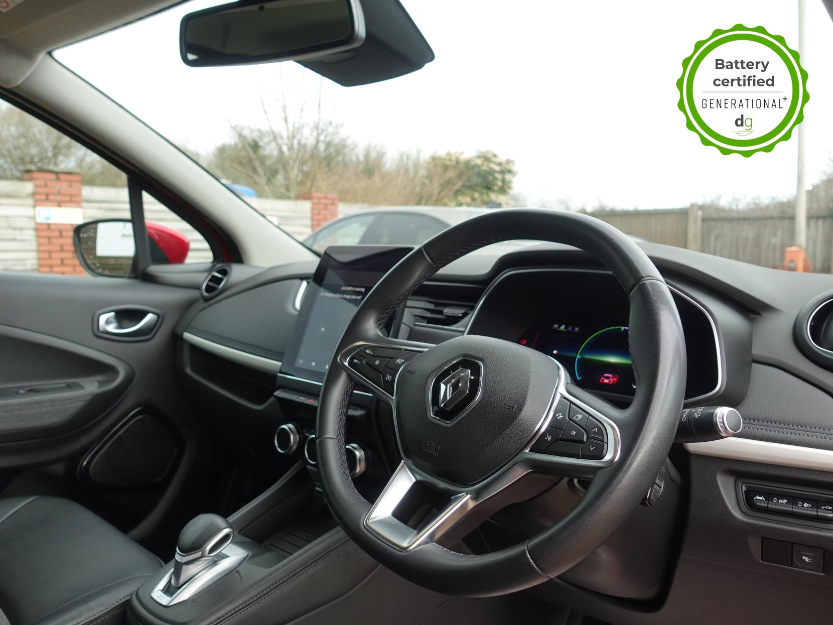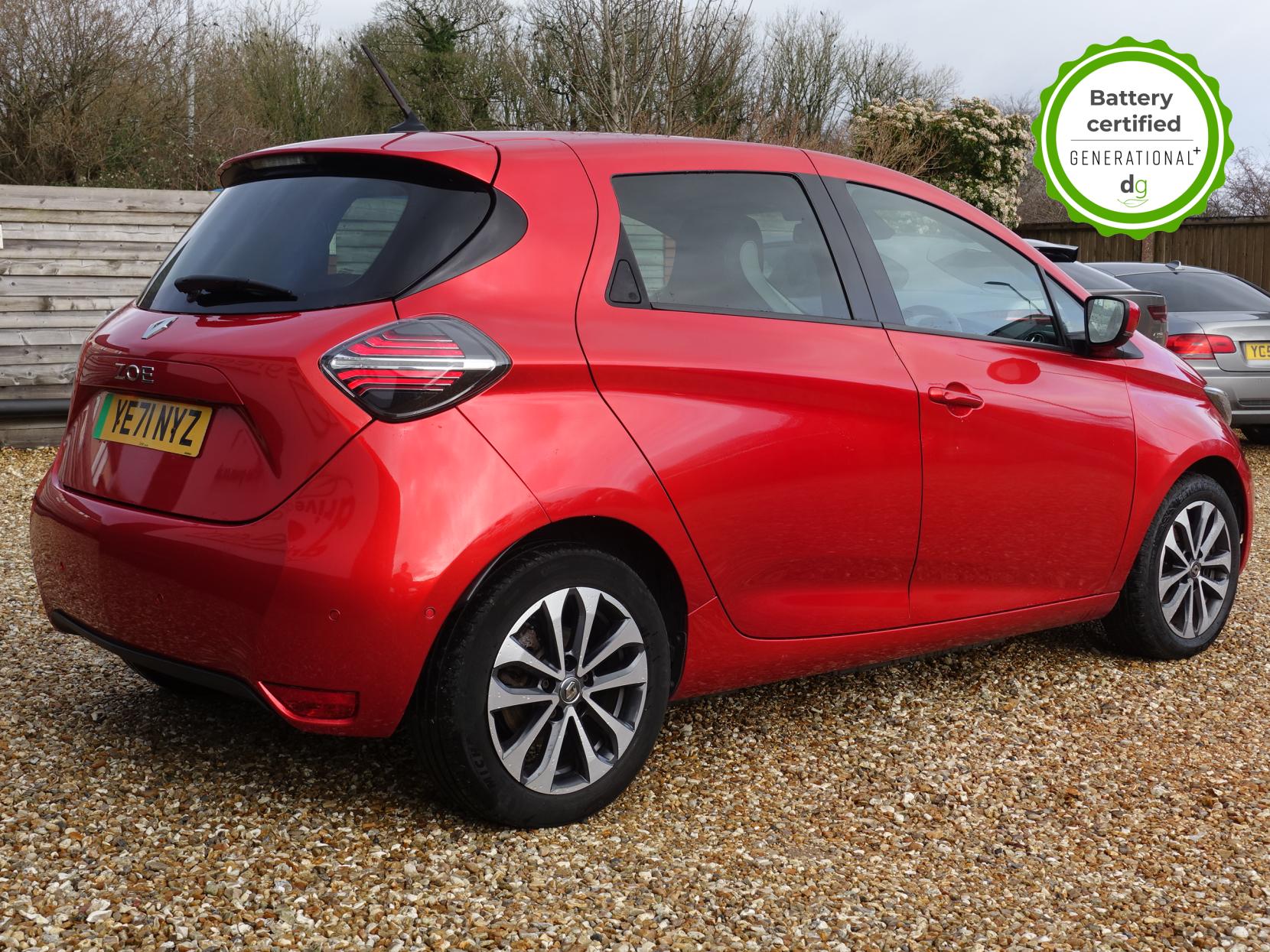 This particular Zoe is in excellent condition and fully prepared to our high standard, has 2 keys, 1 previous owner, and it will be February 2027 until its next service and the end of October 2026 when its MOT is due. The 50kWh Renault Zoe has approx. 200-220 miles of driving range, depending on your driving style and time of year, and comes standard with LED headlights, an electronic handbrake and rear sweeping indicators. The particular car comes with the optional rapid charge feature, which means you can charge about 100 miles of range back into the car in a 30 minute charging stop. The GT LINE trim level includes some great spec, including automatic lights and wipers, cruise control, front fog lights keyless entry, 9.3′ infotainment screen with SAT NAV, front and rear parking sensors and a reversing camera and stylish diamond cut alloys. If you are after a great value EV with 200+ miles of driving range and plenty of style and spec this could be the perfect EV for you. Unlike Car Supermarkets we have no hidden admin fees, there is no pressure selling, and we offer low finance rates. We also perform battery health checks on all our vehicles, so you can have the comfort of knowing the battery state of health of the EV you choose. Hopefully you will choose to buy your EV from Drive Green, as we are a multi award winning EV specialist and sustainable business, here to help you get the most from your switch to electric driving. Contact us to book an appointment to view and test drive this car, or to find out more about switching to electric driving, and to discuss purchase options, including buying on finance, and our remote buying and delivery service. We are also able to supply your home charge point also, making the switch to electric driving super easy for you. Drive Green is a true EV specialist and the UK’s biggest electric car only dealership, since 2017. FORECOURT VISITS AND TEST DRIVES BY APPOINTMENT ONLY.