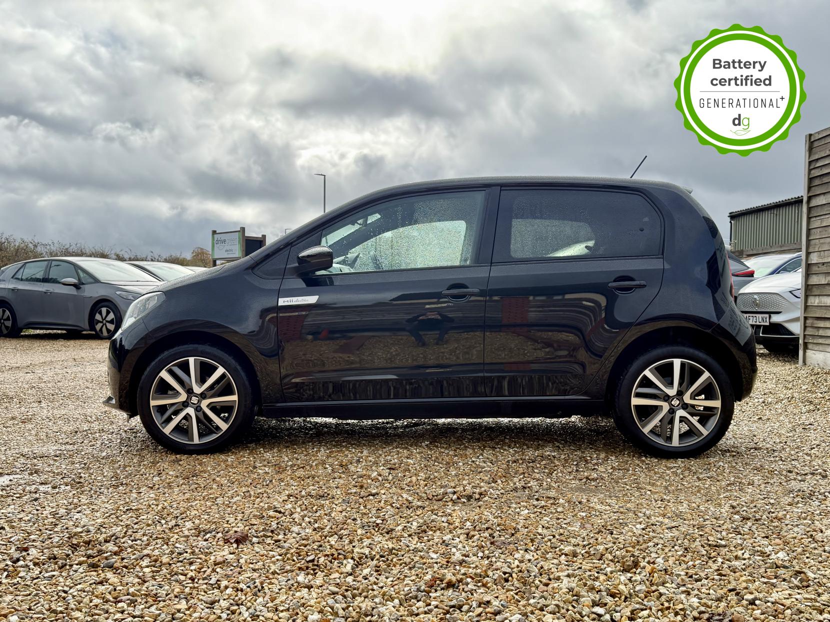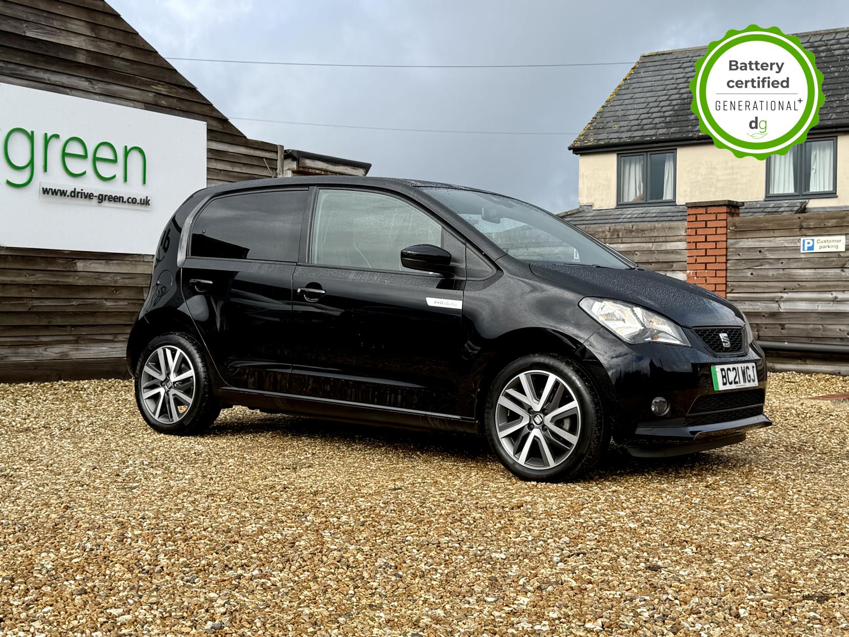 This particular car is in excellent condition and fully prepared to our high standard, has 2 keys, 5 previous services, and it will be October 2026 until its next service and the end of July 2026 when its MOT is due. The fully electric Mii has a real-world range of around 140 miles depending on the time of year and your driving style, and can be rapid charged to 80% full in about 40 minutes. It’s small, compact design is excellent for city driving and parking. The boot is small but adequate, thanks to the adjustable boot floor. The Mii comes with an app which effectively becomes the infotainment system (using the in-built phone holder on the dash). If you are looking for a super small EV, but with the practicality of 4 doors, and usable rear seating, this could be the perfect urban electric car for you. Unlike Car Supermarkets we have no hidden admin fees, there is no pressure selling, and we offer low finance rates. We also perform battery health checks on all our vehicles, so you can have the comfort of knowing the battery state of health of the EV you choose. Hopefully you will choose to buy your EV from Drive Green, as we are a multi award winning EV specialist and sustainable business, here to help you get the most from your switch to electric driving. Contact us to book an appointment to view and test drive this car, or to find out more about switching to electric driving, and to discuss purchase options, including buying on finance, and our remote buying and delivery service. We are also able to supply your home charge point also, making the switch to electric driving super easy for you. Drive Green is a true EV specialist and the UK’s biggest electric car only dealership, since 2017. FORECOURT VISITS AND TEST DRIVES BY APPOINTMENT ONLY.