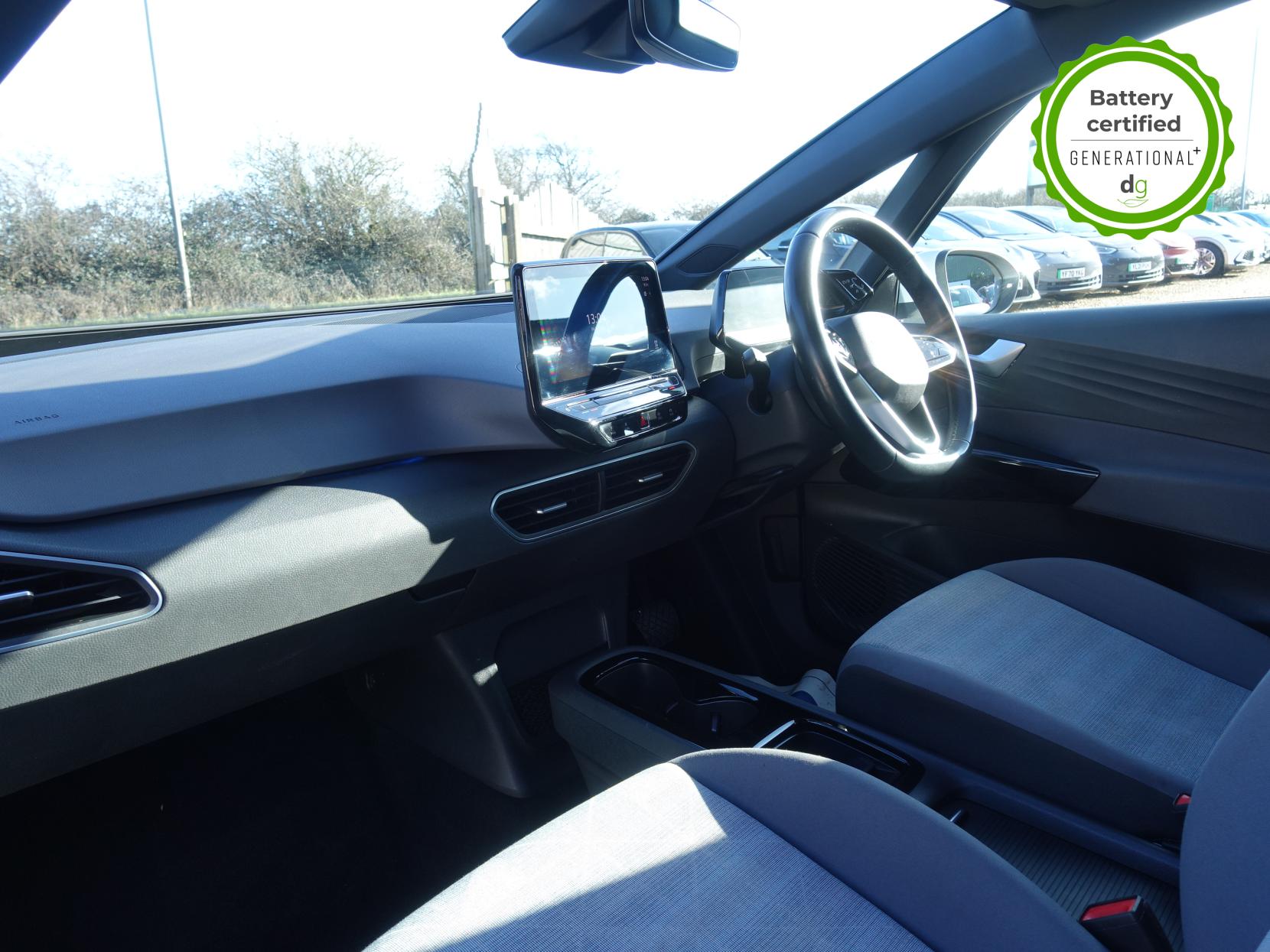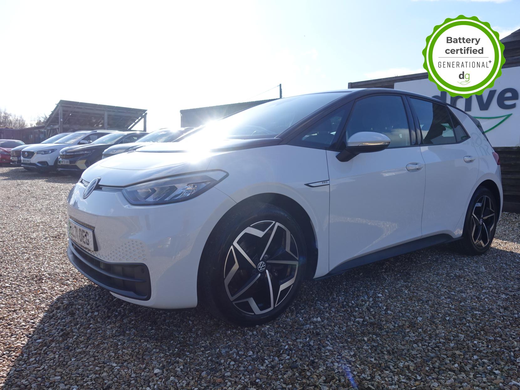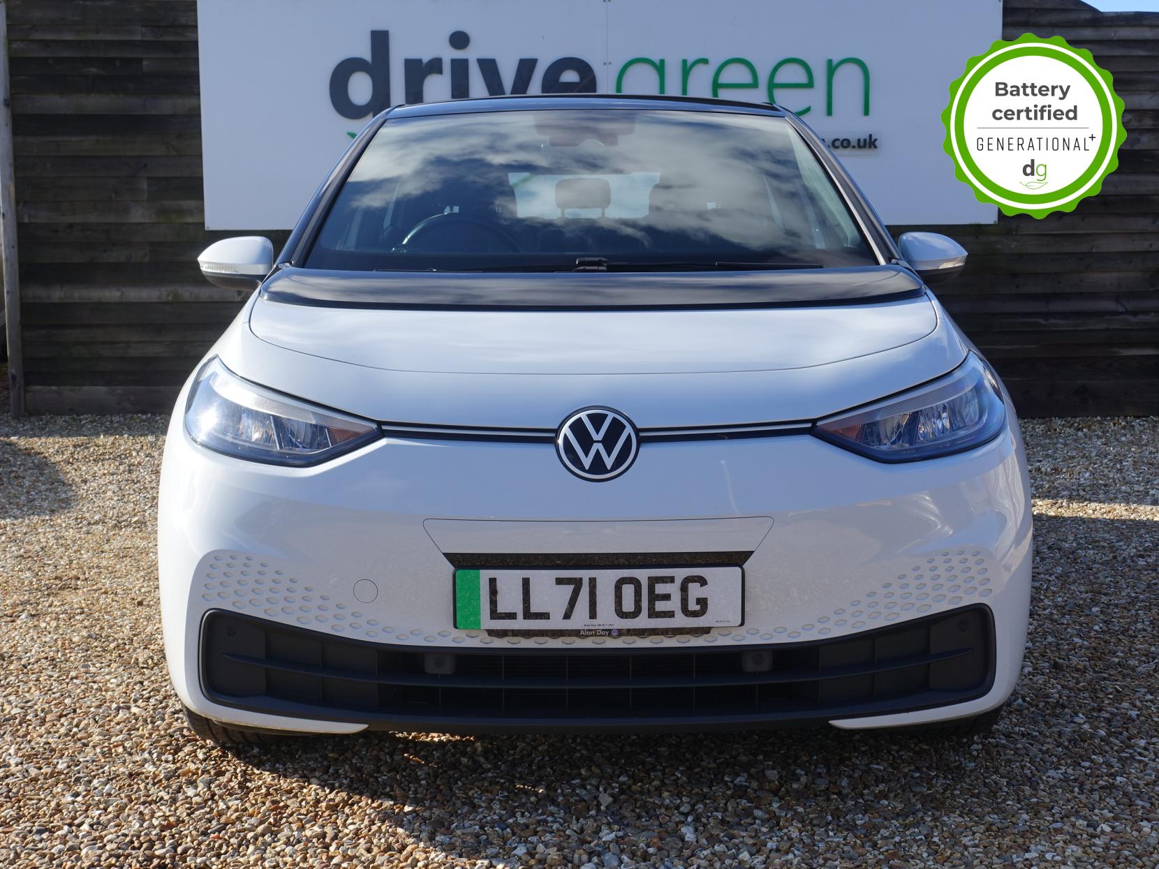This particular iD3 is in excellent condition and fully prepared to our high standard, has 2 keys, 1 previous owner, and it will be February 2028 until its next service and December 2026 when its MOT is due. This VW ID 3 LIFE model comes with 19” alloy wheels, 10” infotainment system with SAT Nav and the comfort pack. Lots of safety equipment comes as standard including, adaptive cruise control incl. front assist, front and rear sensors, and forward collision warning. Led exterior lighting is included and so is wireless Apple CarPlay and Android Auto. As with all ID 3s a clear and well-designed digital dash is standard, and it has an excellent easy to use infotainment system. The ID3 is has a real-world range of around 250 miles from its 58kWh battery. If you are looking for a stylish, practical and well spec’d iD3 in great condition this could be the perfect EV for you. Unlike Car Supermarkets we have no hidden admin fees, there is no pressure selling, and we offer low finance rates. We also perform battery health checks on all our vehicles, so you can have the comfort of knowing the battery state of health of the EV you choose. Hopefully you will choose to buy your EV from Drive Green, as we are a multi award winning EV specialist and sustainable business, here to help you get the most from your switch to electric driving. Contact us to book an appointment to view and test drive this car, or to find out more about switching to electric driving, and to discuss purchase options, including buying on finance, and our remote buying and delivery service. We are also able to supply your home charge point also, making the switch to electric driving super easy for you. Drive Green is a true EV specialist and the UK’s biggest electric car only dealership, since 2017. FORECOURT VISITS AND TEST DRIVES BY APPOINTMENT ONLY.
