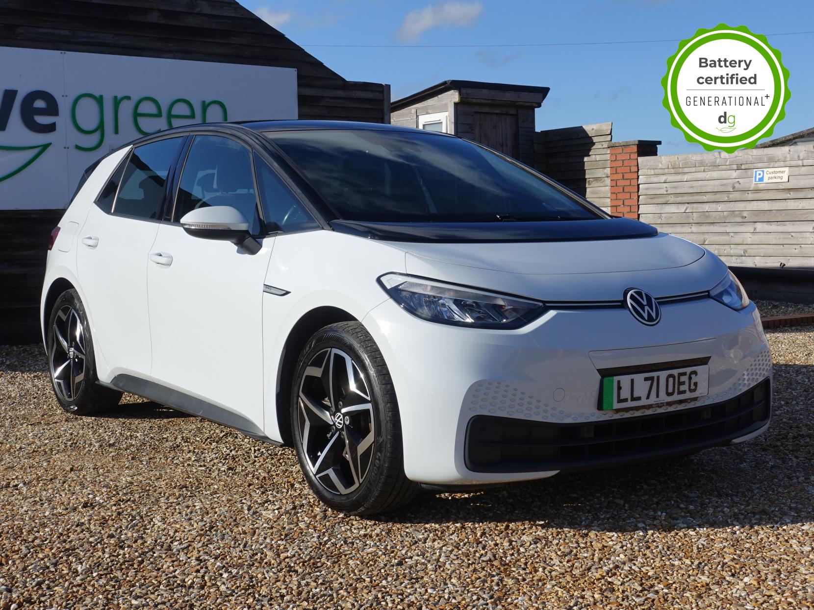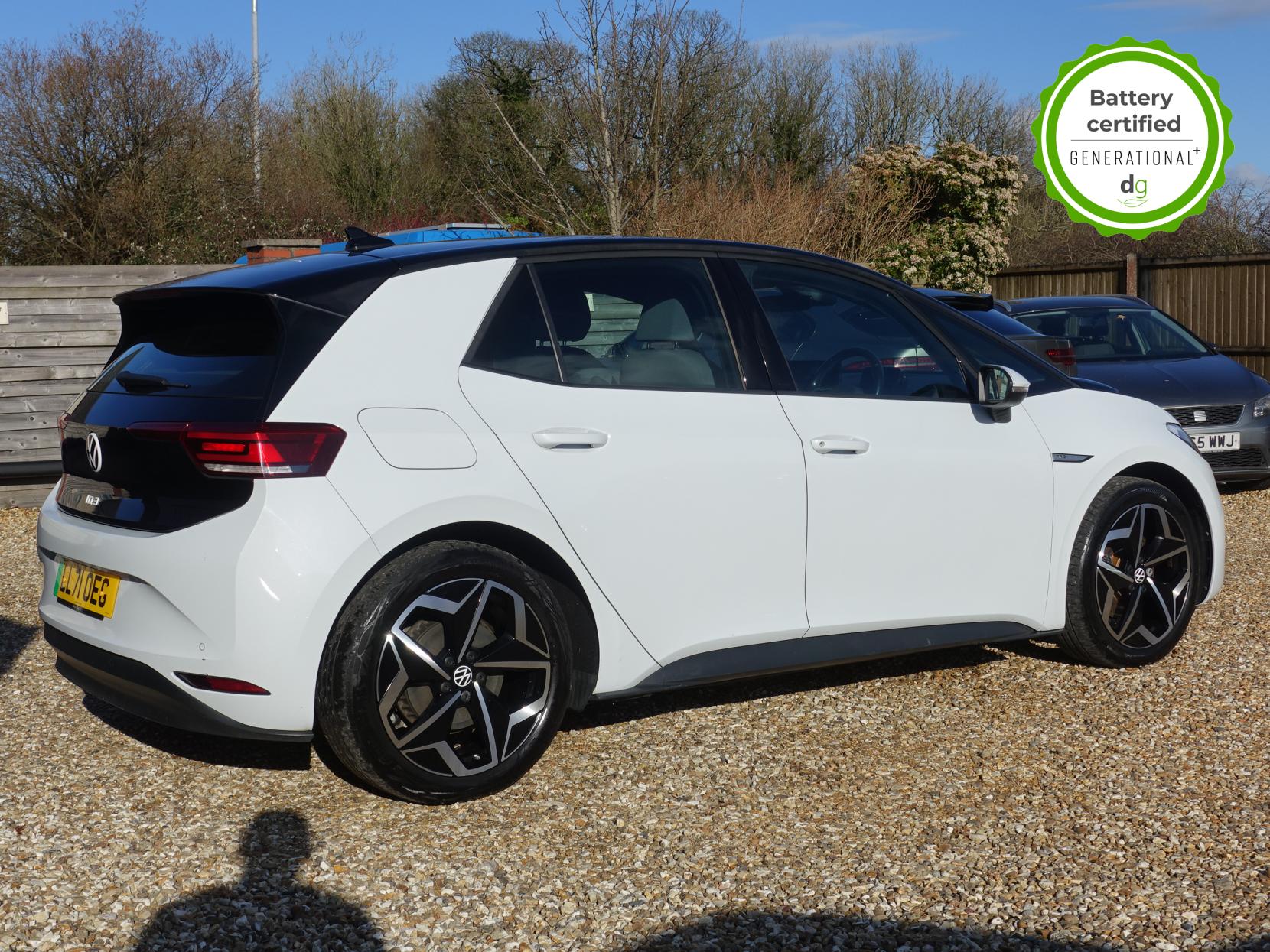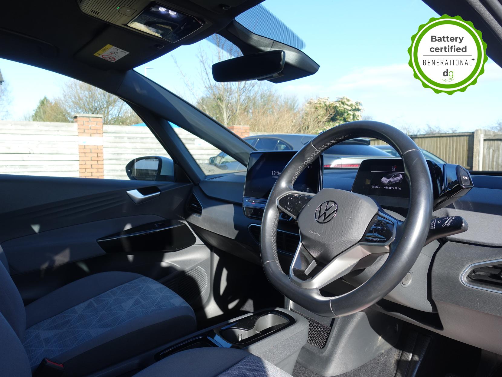 This particular iD3 is in excellent condition and fully prepared to our high standard, has 2 keys, 1 previous owner, and it will be February 2028 until its next service and December 2026 when its MOT is due. This VW ID 3 LIFE model comes with 19” alloy wheels, 10” infotainment system with SAT Nav and the comfort pack. Lots of safety equipment comes as standard including, adaptive cruise control incl. front assist, front and rear sensors, and forward collision warning. Led exterior lighting is included and so is wireless Apple CarPlay and Android Auto. As with all ID 3s a clear and well-designed digital dash is standard, and it has an excellent easy to use infotainment system. The ID3 is has a real-world range of around 250 miles from its 58kWh battery. If you are looking for a stylish, practical and well spec’d iD3 in great condition this could be the perfect EV for you. Unlike Car Supermarkets we have no hidden admin fees, there is no pressure selling, and we offer low finance rates. We also perform battery health checks on all our vehicles, so you can have the comfort of knowing the battery state of health of the EV you choose. Hopefully you will choose to buy your EV from Drive Green, as we are a multi award winning EV specialist and sustainable business, here to help you get the most from your switch to electric driving. Contact us to book an appointment to view and test drive this car, or to find out more about switching to electric driving, and to discuss purchase options, including buying on finance, and our remote buying and delivery service. We are also able to supply your home charge point also, making the switch to electric driving super easy for you. Drive Green is a true EV specialist and the UK’s biggest electric car only dealership, since 2017. FORECOURT VISITS AND TEST DRIVES BY APPOINTMENT ONLY.