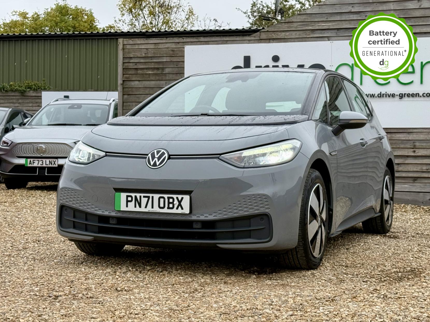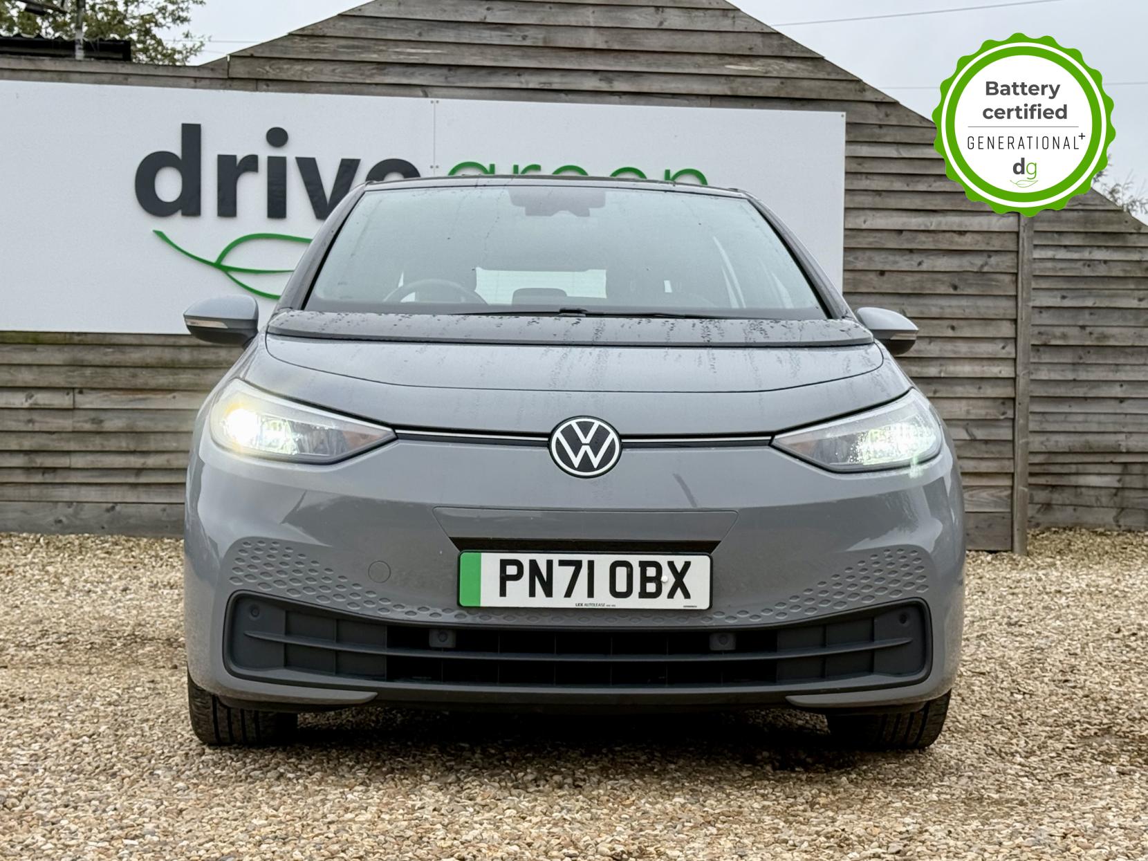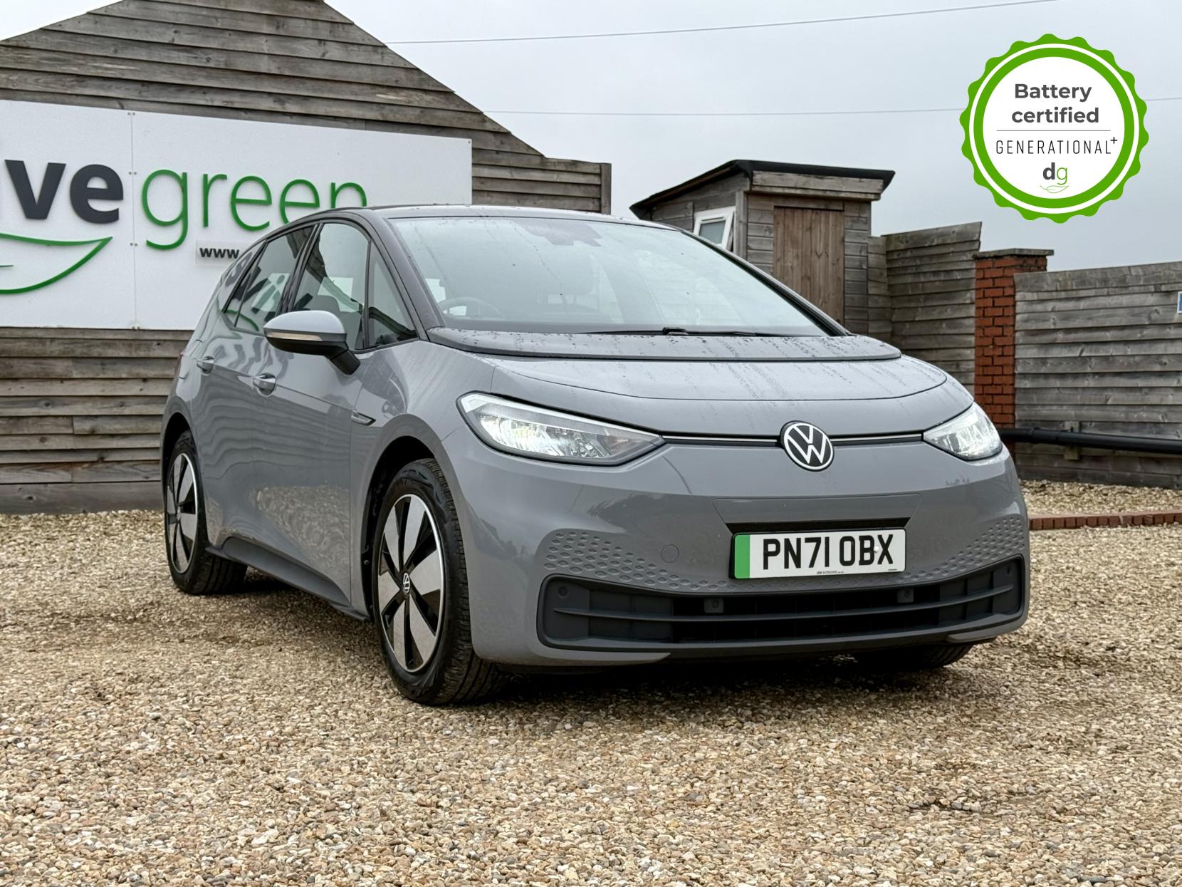 This particular iD3 is in excellent condition and fully prepared to our high standard, has 2 keys, 1 previous owner, and it will October 2026 until its next service and September 2026 when its MOT is due. This VW ID 3 LIFE model comes with 18” alloy wheels, 10” infotainment system with SAT Nav and the comfort pack. Lots of safety equipment comes as standard including, adaptive cruise control incl. front assist, front and rear sensors, and forward collision warning. Led exterior lighting is included and so is wireless Apple CarPlay and Android Auto. As with all ID 3s a clear and well-designed digital dash is standard, and it has an excellent easy to use infotainment system. The ID3 is has a real-world range of around 250 miles from its 58kWh battery. If you are looking for a stylish, practical and well spec’d iD3 in great condition this could be the perfect EV for you. Unlike Car Supermarkets we have no hidden admin fees, there is no pressure selling, and we offer low finance rates. We also perform battery health checks on all our vehicles, so you can have the comfort of knowing the battery state of health of the EV you choose. Hopefully you will choose to buy your EV from Drive Green, as we are a multi award winning EV specialist and sustainable business, here to help you get the most from your switch to electric driving. Contact us to book an appointment to view and test drive this car, or to find out more about switching to electric driving, and to discuss purchase options, including buying on finance, and our remote buying and delivery service. We are also able to supply your home charge point also, making the switch to electric driving super easy for you. Drive Green is a true EV specialist and the UK’s biggest electric car only dealership, since 2017. FORECOURT VISITS AND TEST DRIVES BY APPOINTMENT ONLY.