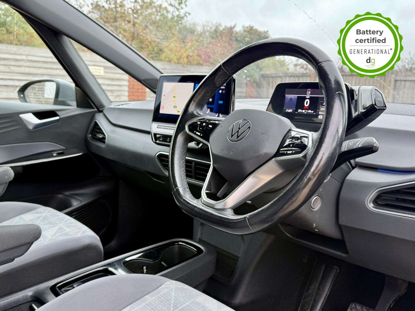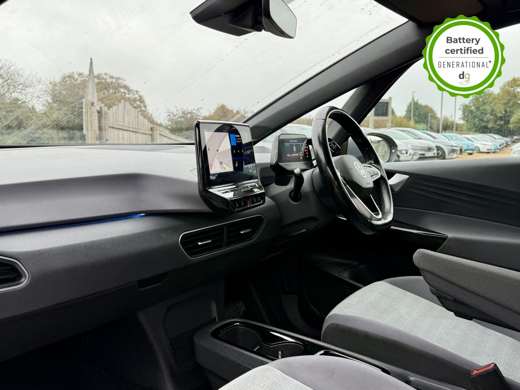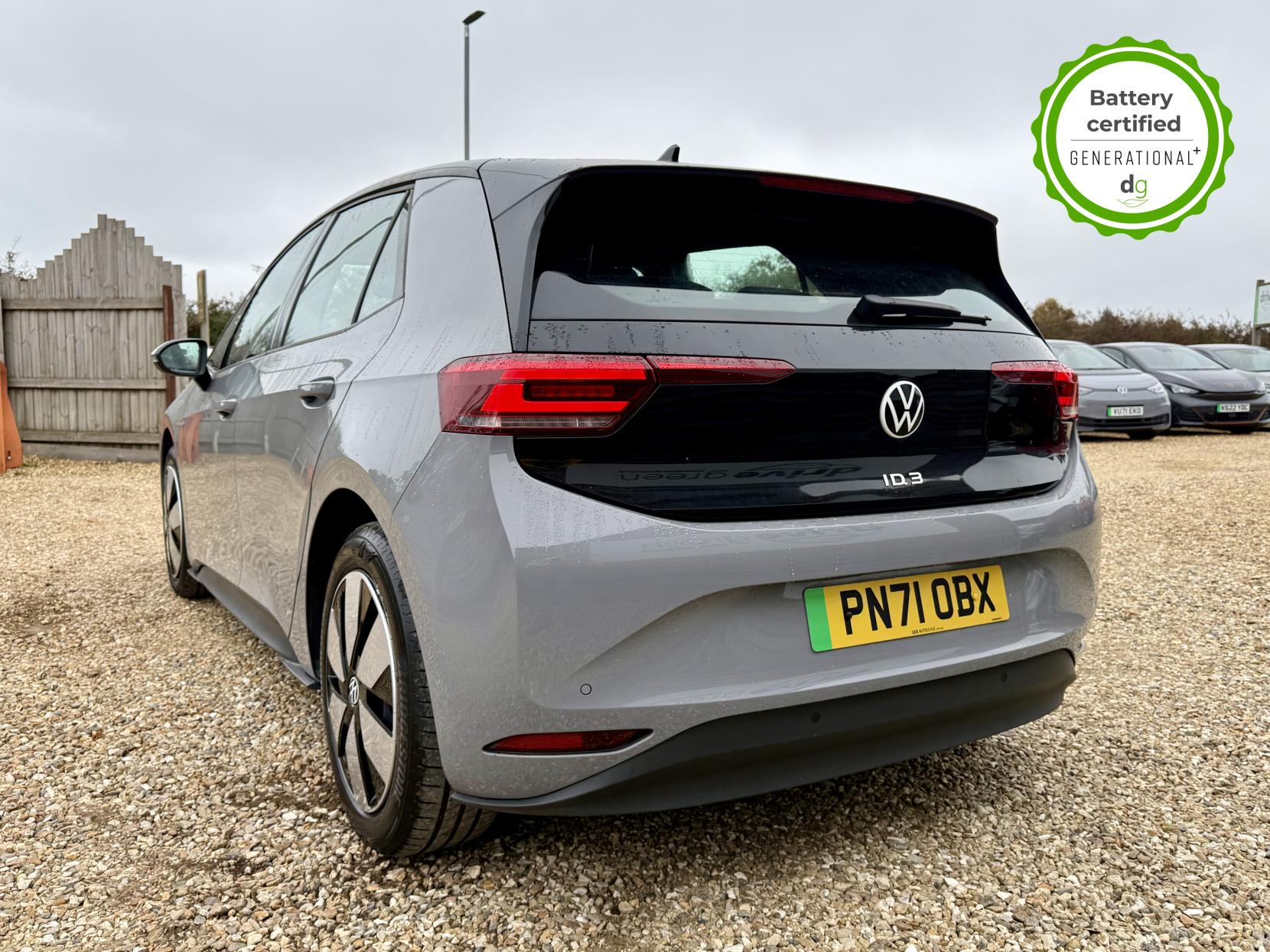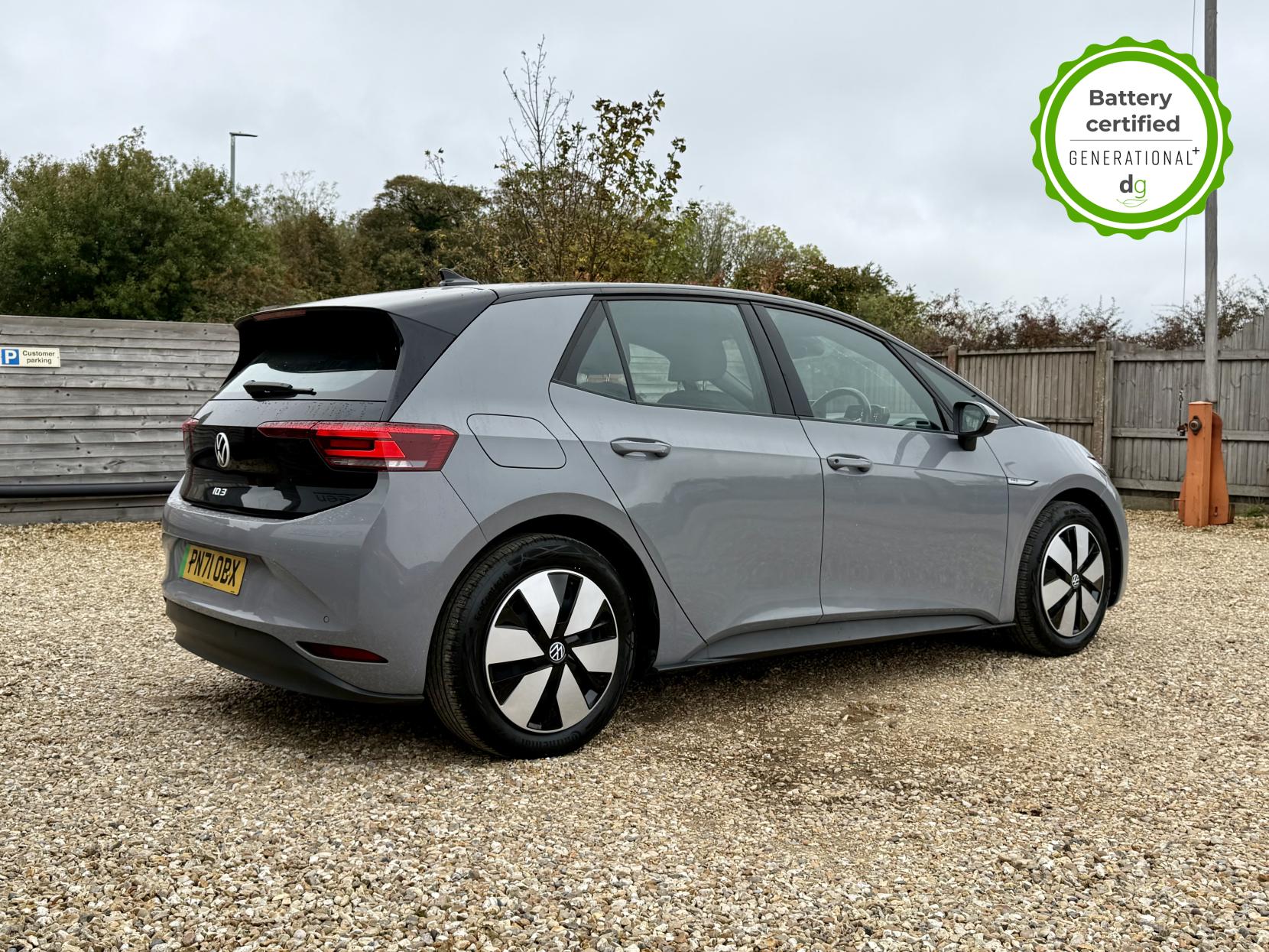 This particular iD3 is in excellent condition and fully prepared to our high standard, has 2 keys, 1 previous owner, and it will October 2026 until its next service and September 2026 when its MOT is due. This VW ID 3 LIFE model comes with 18” alloy wheels, 10” infotainment system with SAT Nav and the comfort pack. Lots of safety equipment comes as standard including, adaptive cruise control incl. front assist, front and rear sensors, and forward collision warning. Led exterior lighting is included and so is wireless Apple CarPlay and Android Auto. As with all ID 3s a clear and well-designed digital dash is standard, and it has an excellent easy to use infotainment system. The ID3 is has a real-world range of around 250 miles from its 58kWh battery. If you are looking for a stylish, practical and well spec’d iD3 in great condition this could be the perfect EV for you. Unlike Car Supermarkets we have no hidden admin fees, there is no pressure selling, and we offer low finance rates. We also perform battery health checks on all our vehicles, so you can have the comfort of knowing the battery state of health of the EV you choose. Hopefully you will choose to buy your EV from Drive Green, as we are a multi award winning EV specialist and sustainable business, here to help you get the most from your switch to electric driving. Contact us to book an appointment to view and test drive this car, or to find out more about switching to electric driving, and to discuss purchase options, including buying on finance, and our remote buying and delivery service. We are also able to supply your home charge point also, making the switch to electric driving super easy for you. Drive Green is a true EV specialist and the UK’s biggest electric car only dealership, since 2017. FORECOURT VISITS AND TEST DRIVES BY APPOINTMENT ONLY.