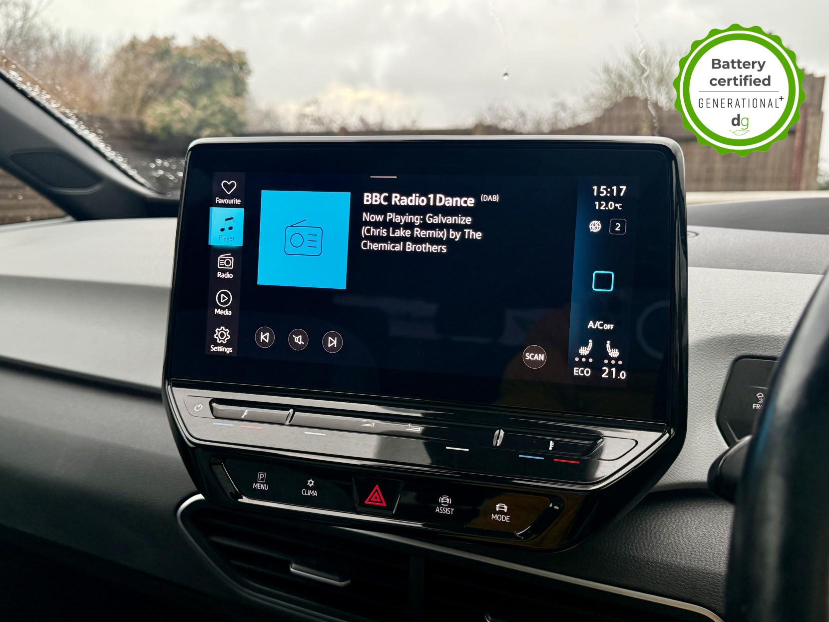 OVER £600 OF OPTIONAL EXTRAS! This particular iD3 is in excellent condition and fully prepared to our high standard, has 2 keys, 1 previous owner, and truly excellent and well above average 94% battery state of health, and it will be December 2027 until its next service and June 2026 when its next MOT is due. This top spec ID3 MAX comes with a pan roof, silver styling pack, illuminated smartphone storage compartment, and microfleece upholstery are the limited-edition upgrades that come with this car. As with all ID 3s a clear and well-designed digital dash is standard, and it has an excellent easy to use infotainment system. The ID3 is has a real-world range of around 250 miles from its 58kWh battery. If you are looking for a stylish, practical and high-tech iD3 in great condition this could be the perfect iD3 for you. Unlike Car Supermarkets we have no hidden admin fees, there is no pressure selling, and we offer low finance rates. We also perform battery health checks on all our vehicles, so you can have the comfort of knowing the battery state of health of the EV you choose. Hopefully you will choose to buy your EV from Drive Green, as we are a multi award winning EV specialist and sustainable business, here to help you get the most from your switch to electric driving. Contact us to book an appointment to view and test drive this car, or to find out more about switching to electric driving, and to discuss purchase options, including buying on finance, and our remote buying and delivery service. We are also able to supply your home charge point also, making the switch to electric driving super easy for you. Drive Green is a true EV specialist and the UK’s biggest electric car only dealership, since 2017. FORECOURT VISITS AND TEST DRIVES BY APPOINTMENT ONLY.