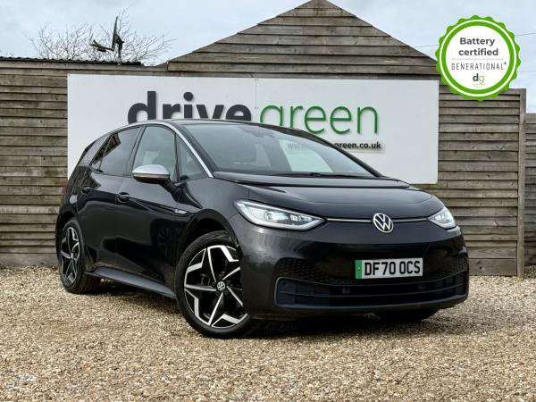 This particular iD3 is in excellent condition and fully prepared to our high standard, has 2 keys, 1 previous owner, it will November 2027 until its next service and July 2026 when its MOT is due. This VW ID3 TOUR model comes with a bigger battery and bigger range, 18” alloy wheels, 10” infotainment system with SAT Nav and the comfort pack. Lots of safety equipment comes as standard including, adaptive cruise control incl. front assist, front and rear sensors, and forward collision warning. Led exterior lighting is included and so is wireless Apple CarPlay and Android Auto. As with all ID 3s a clear and well-designed digital dash is standard, and it has an excellent easy to use infotainment system. The ID3 is has a real-world range of around 300 miles from its 77kWh battery. If you are looking for a stylish, practical, long range, and well spec’d iD3 in great condition this could be the perfect iD3 for you. Unlike Car Supermarkets we have no hidden admin fees, there is no pressure selling, and we offer low finance rates. We also perform battery health checks on all our vehicles, so you can have the comfort of knowing the battery state of health of the EV you choose. Hopefully you will choose to buy your EV from Drive Green, as we are a multi award winning EV specialist and sustainable business, here to help you get the most from your switch to electric driving. Contact us to book an appointment to view and test drive this car, or to find out more about switching to electric driving, and to discuss purchase options, including buying on finance, and our remote buying and delivery service. We are also able to supply your home charge point also, making the switch to electric driving super easy for you. Drive Green is a true EV specialist and the UK’s biggest electric car only dealership, since 2017. FORECOURT VISITS AND TEST DRIVES BY APPOINTMENT ONLY.